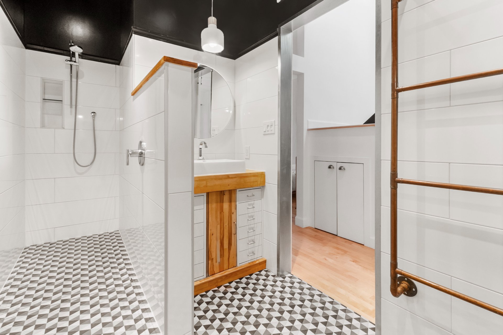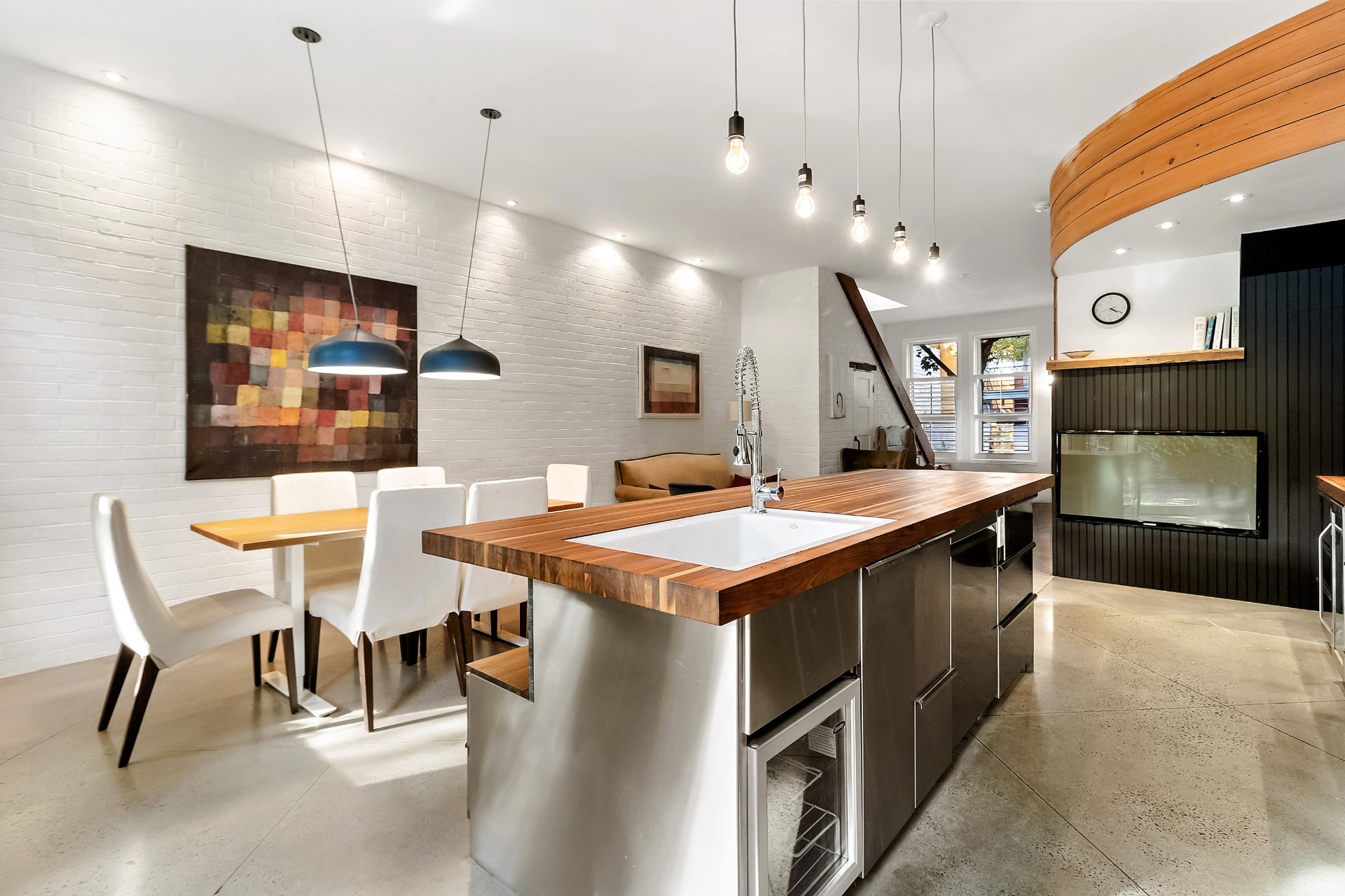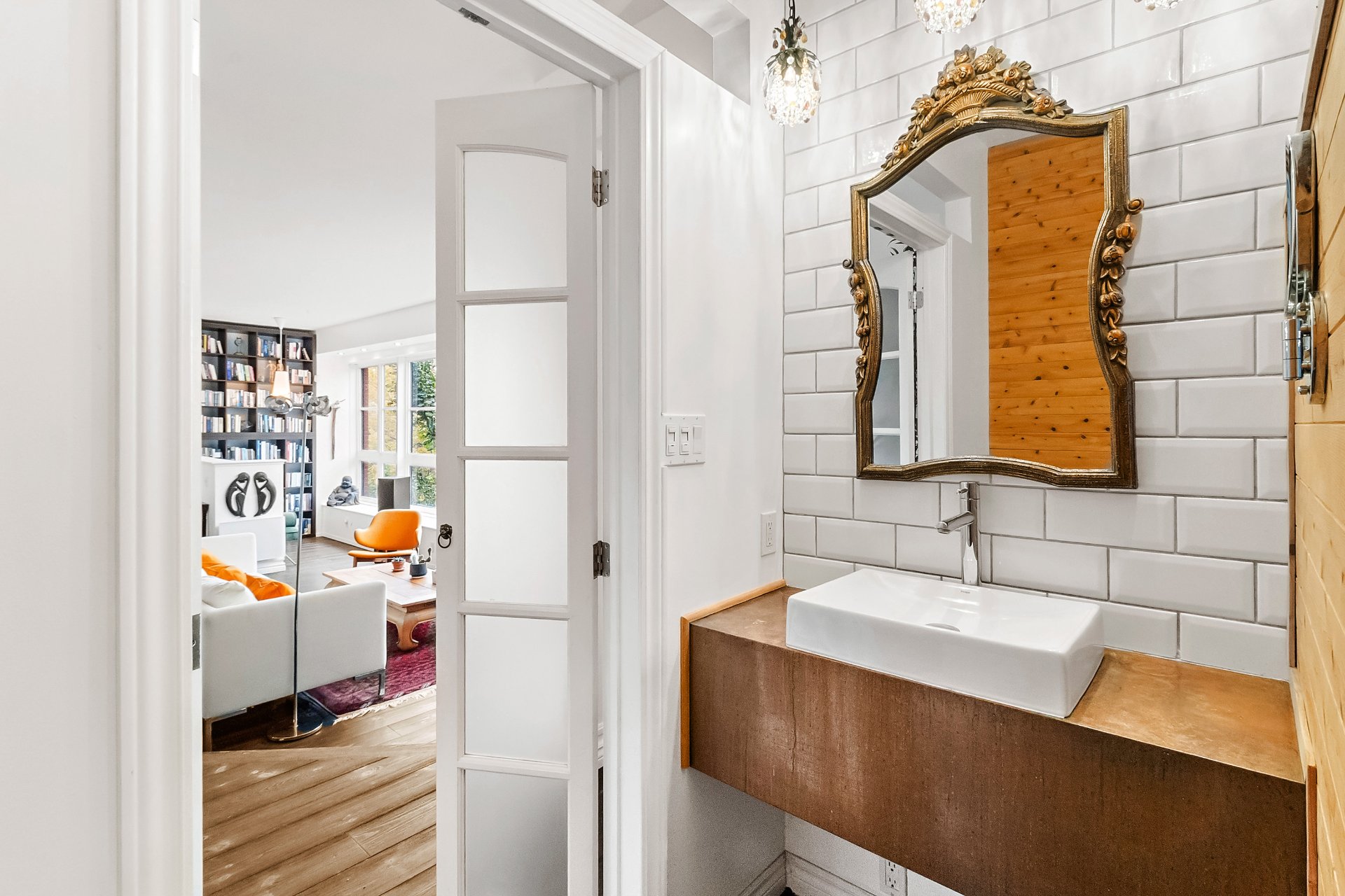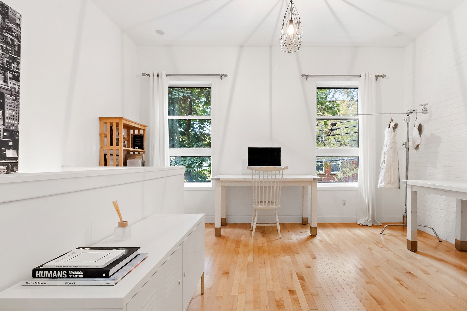 UNIQUE | Three-level townhouse with a large private courtyard and garden studio. Bright open-plan main floor with den, dining area, and a chef's kitchen with an island. Three bedrooms plus an office, two full bathrooms and one powder room. The top floor is a true great room with a secondary kitchen and direct access to an expansive private rooftop-style terrace. The private courtyard is fully landscaped with a wood deck and a charming outbuilding with mezzanine--ideal as a studio or playroom. Prime Saint-Henri location, steps to Atwater Market, the Lachine Canal, bike paths, parks, cafés/restaurants, and the metro.