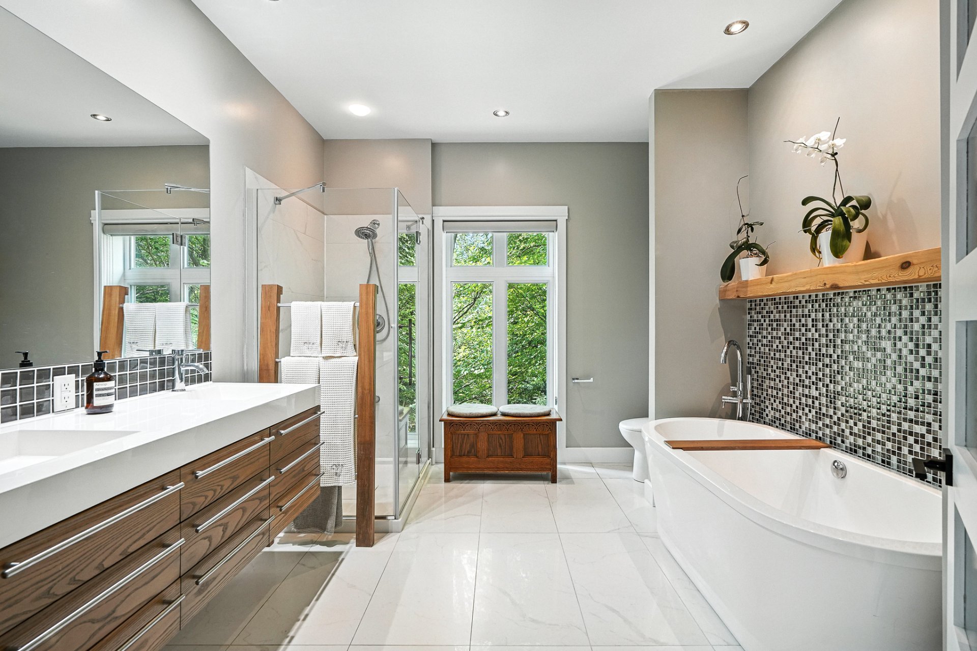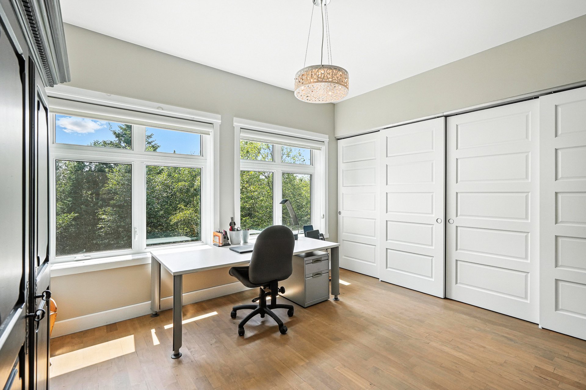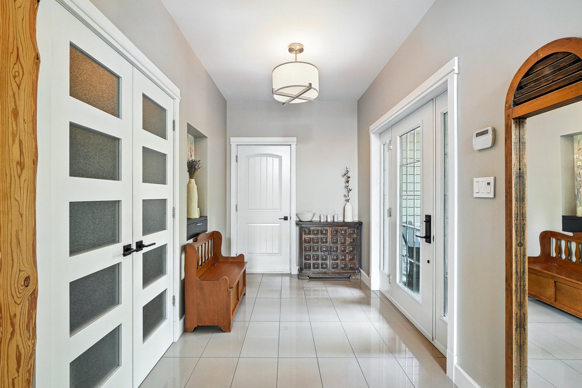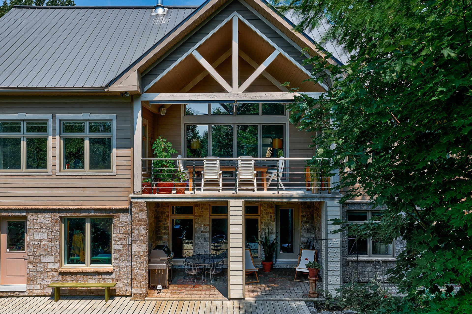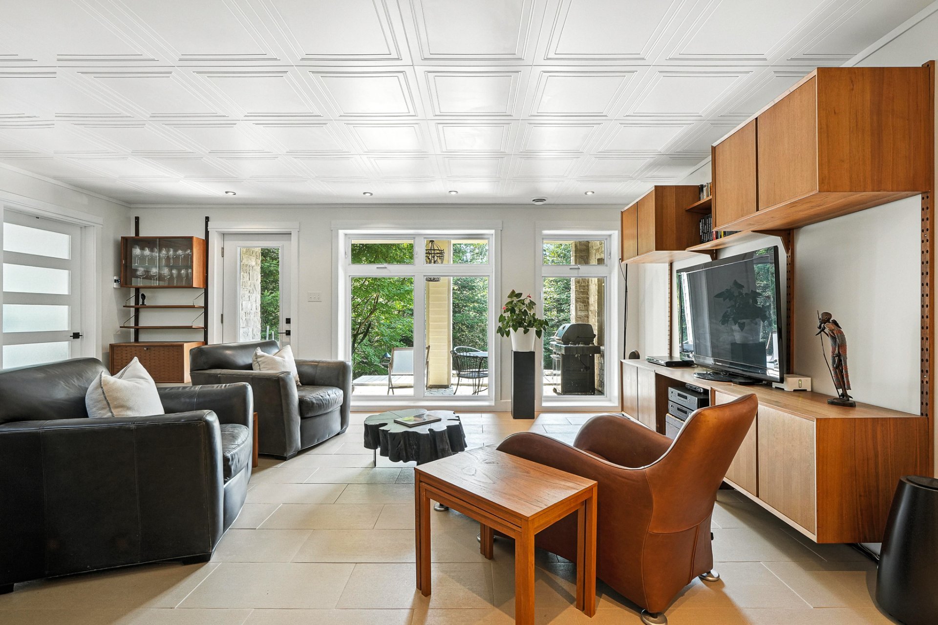 Architecture seamlessly integrated into its natural surroundings on 4.32 wooded acres with private trails. Light-filled volumes and clean contemporary lines, 16-foot cathedral ceilings, waxed maple floors with radiant heating on the main level and ceramic flooring on the garden level, living room with a wood-burning fireplace. Heated triple garage with a versatile room above, a spacious workshop offering the potential for an additional bedroom, and two covered terraces oriented toward sunset views. Fiber cement and stone cladding, steel roof, and superior insulation, located near Lake Memphrémagog, +- 7 km from Magog and 1.5 hours from MTL.