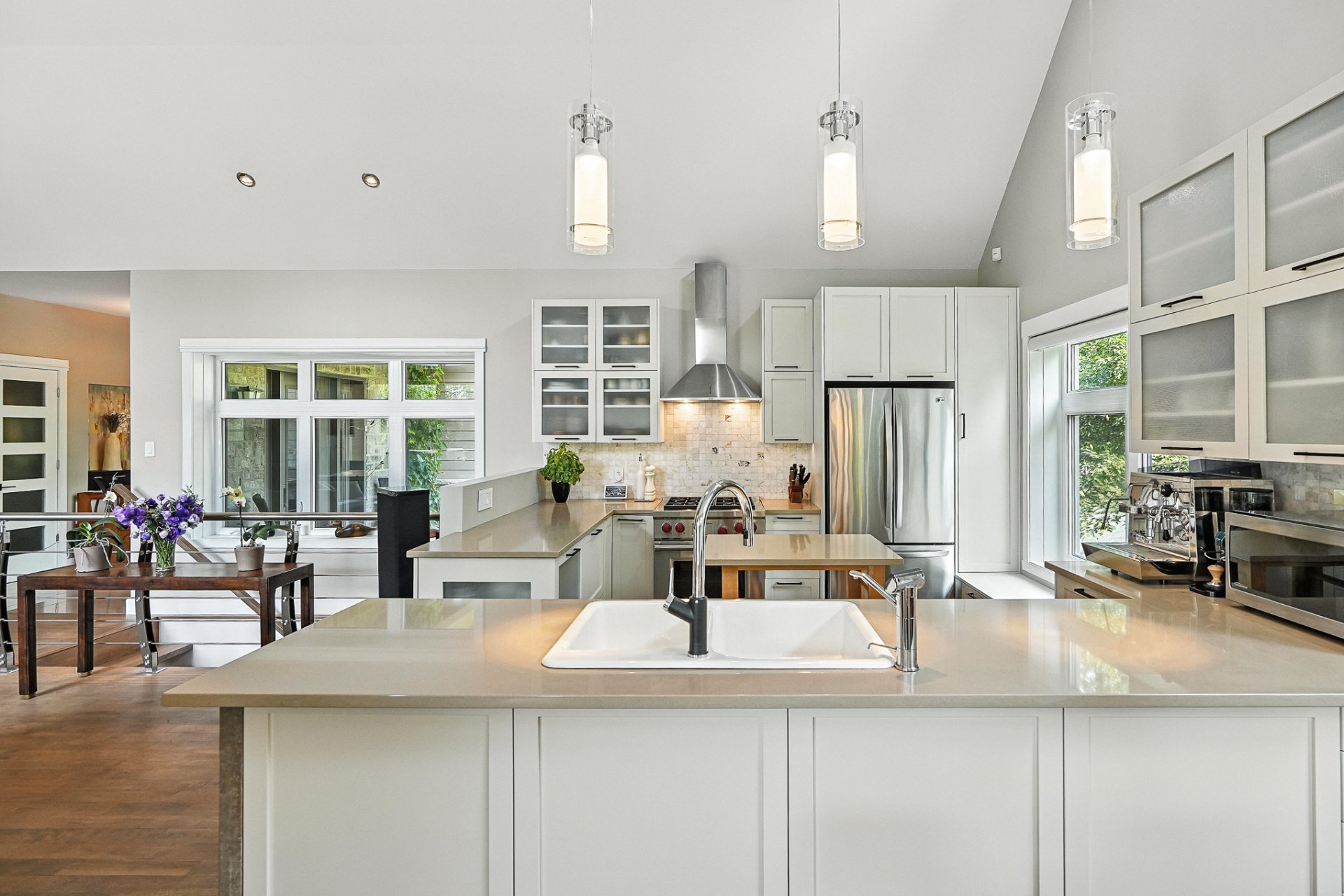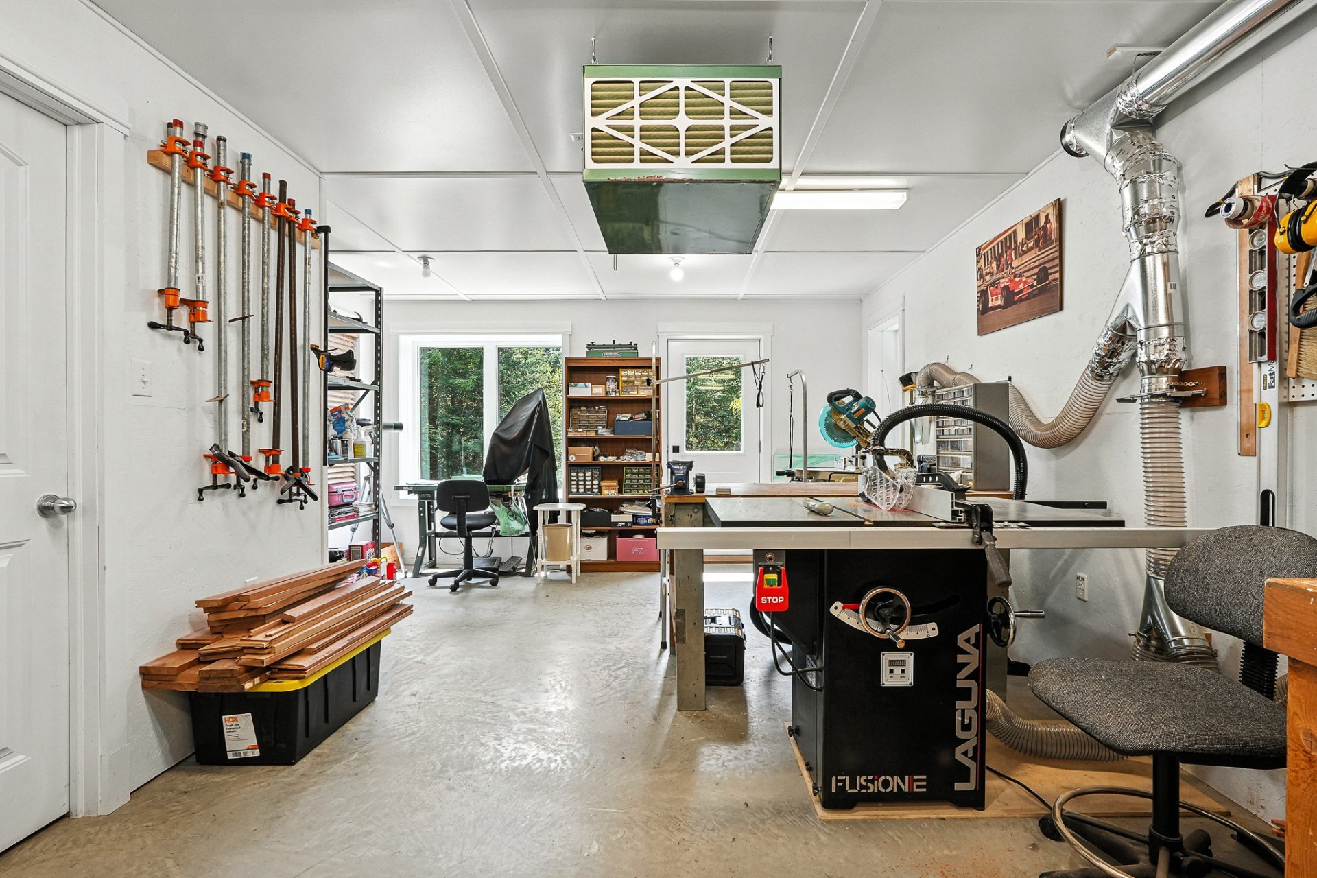 - Entrance light fixture, hallway wall light, curtain rods and drapes (living room, primary bedroom), Asko washer/dryer, tools, equipment, wall/ceiling ventilation systems, wall shelves, cedar planter (balcony), garage shelves/bike racks, firewood, wall art, all furniture/personal items, surveillance cameras, living room TV mount, irrigation for pots/beds, solar lights, microwave, coffee machine, cold room fridge, living room speakers, tractor.