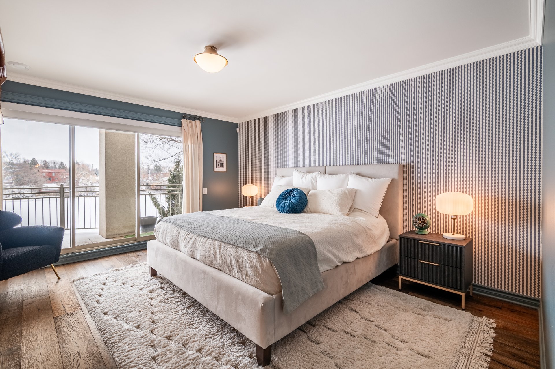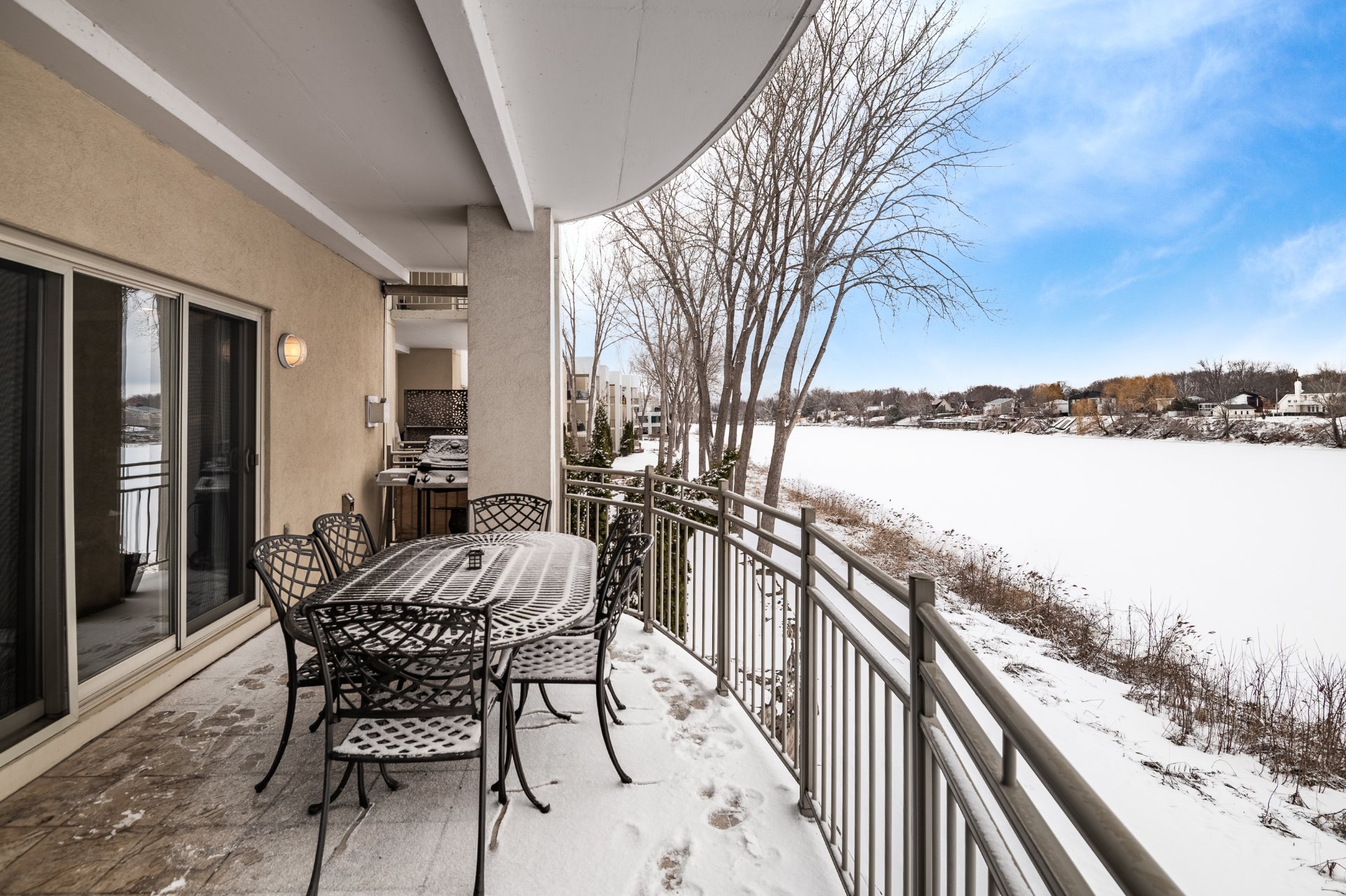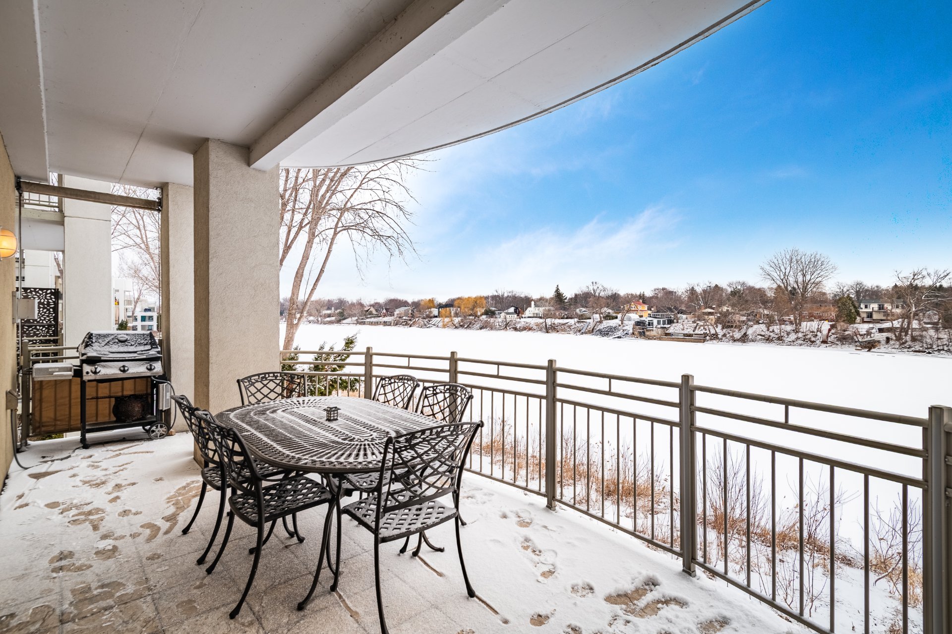 An exceptional condo where luxury and the good life come together on the waterfront. Flooded with light, the living area captivates with its elegance and gas fireplace, flowing seamlessly into a contemporary kitchen featuring high-end finishes. The master suite invites you to unwind with a walk-in closet and a refined bathroom. A spacious balcony, accessible from both the living room and the master bedroom, offers a perfect spot to enjoy the view. A second bedroom and stylish bathroom. Three parking spaces, two of which are indoor. A unique, peaceful, and inspiring home.