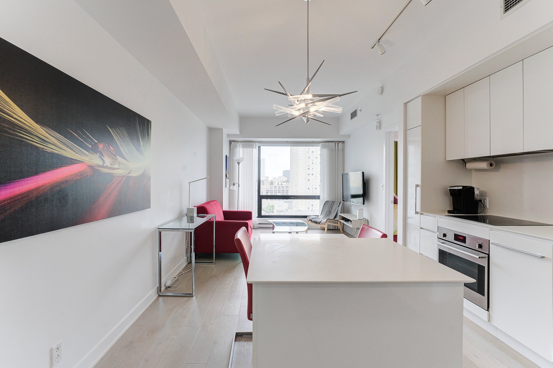 Magnificent condo located on the 18h floor of the iconic Tour des Canadiens, in the heart of Downtown Montreal, offering 1 Bedroom, 1 Bathroom, plus an indoor parking space and a locker. An illuminated contemporary living space featuring high-end finishes and breathtaking unobstructed views. World-class amenities are at your fingertips!