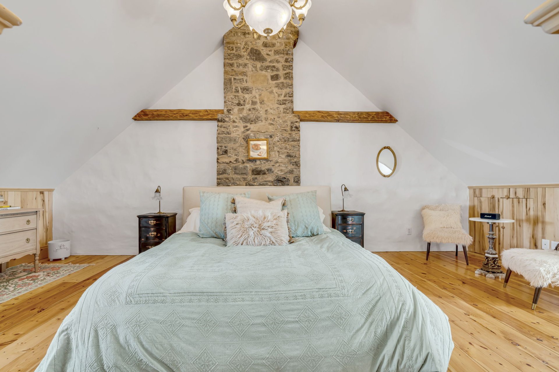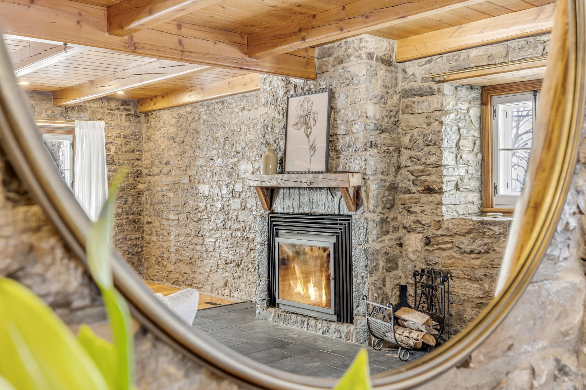 - Wood fireplace