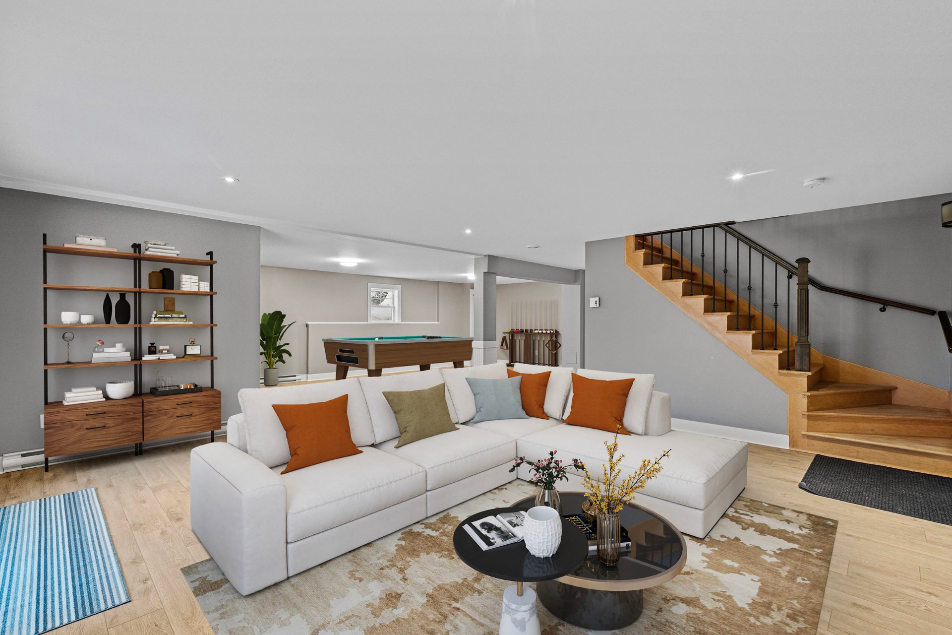 On the garden level, a large family room awaits you, perfect for accommodating a pool table or setting up a second comfortable living area. This level also includes a storage room, a bathroom, and a double garage offering the possibility of integrating a walk-in cooler. An additional separate exterior entrance provides the option to create a home office, perfect for those who work from home.