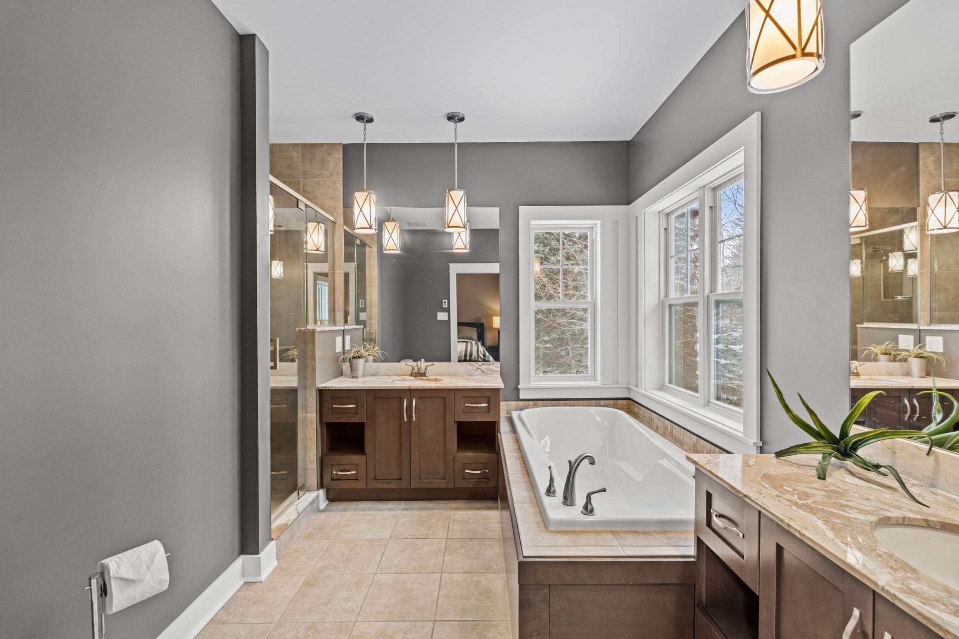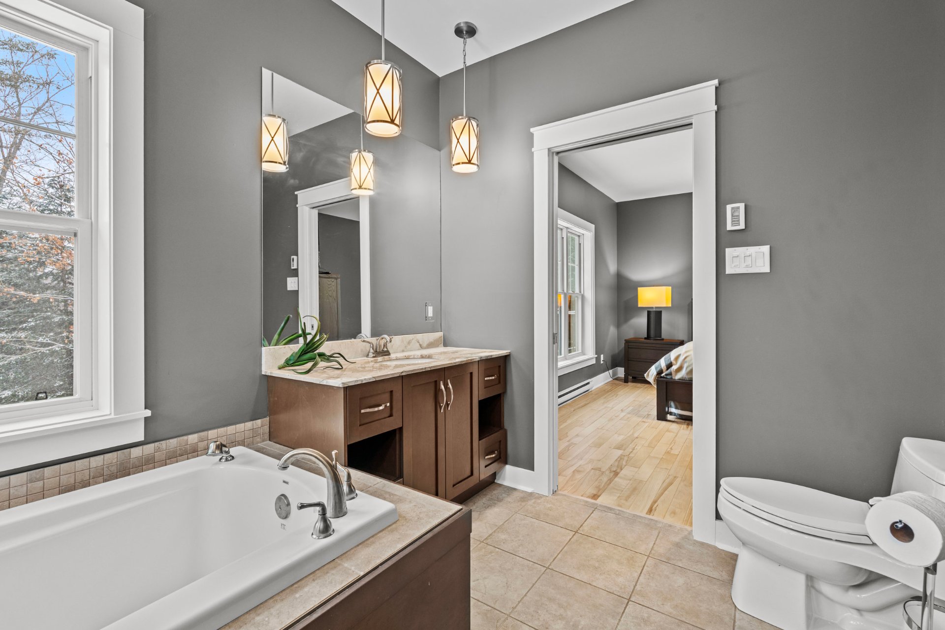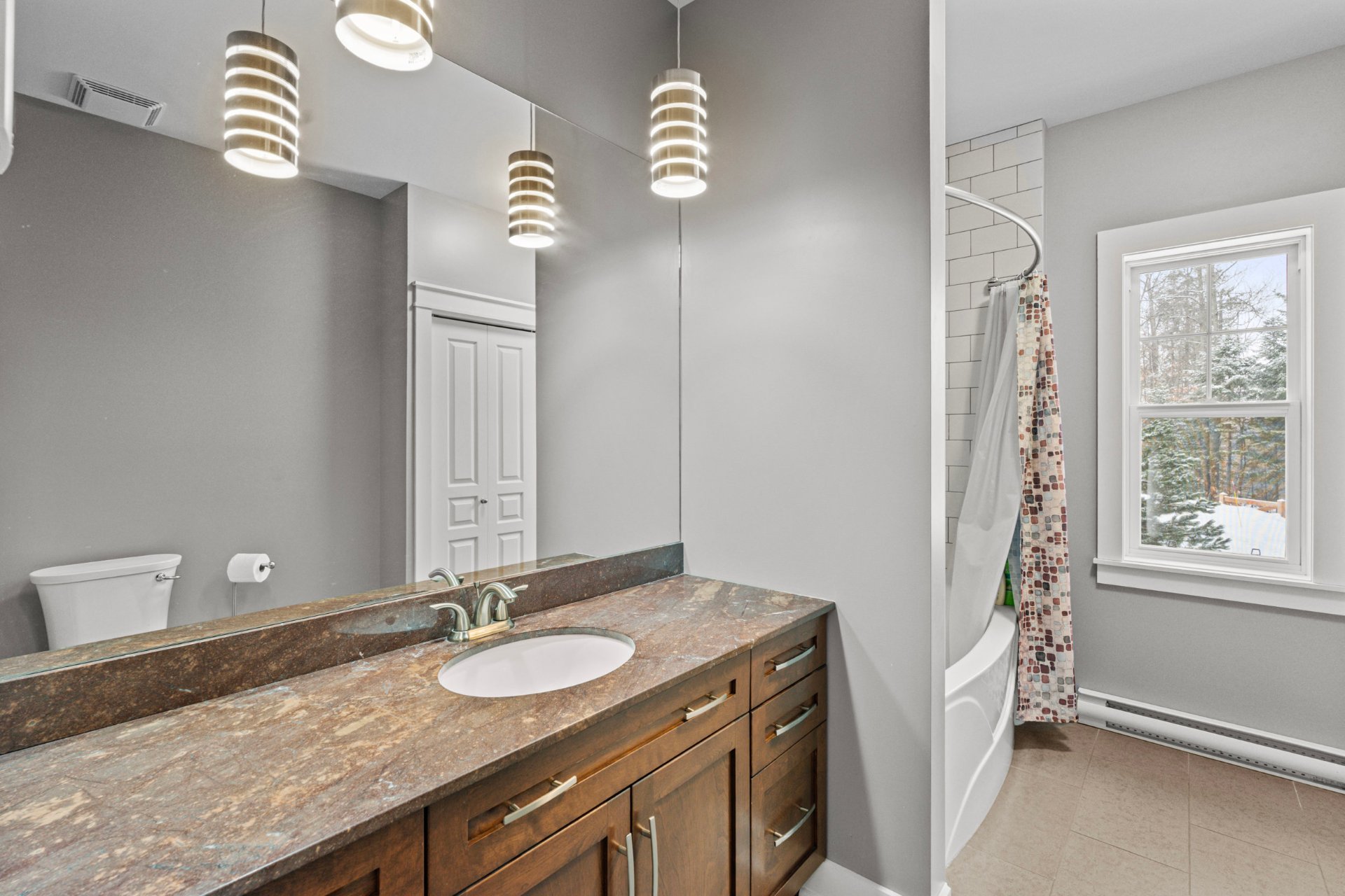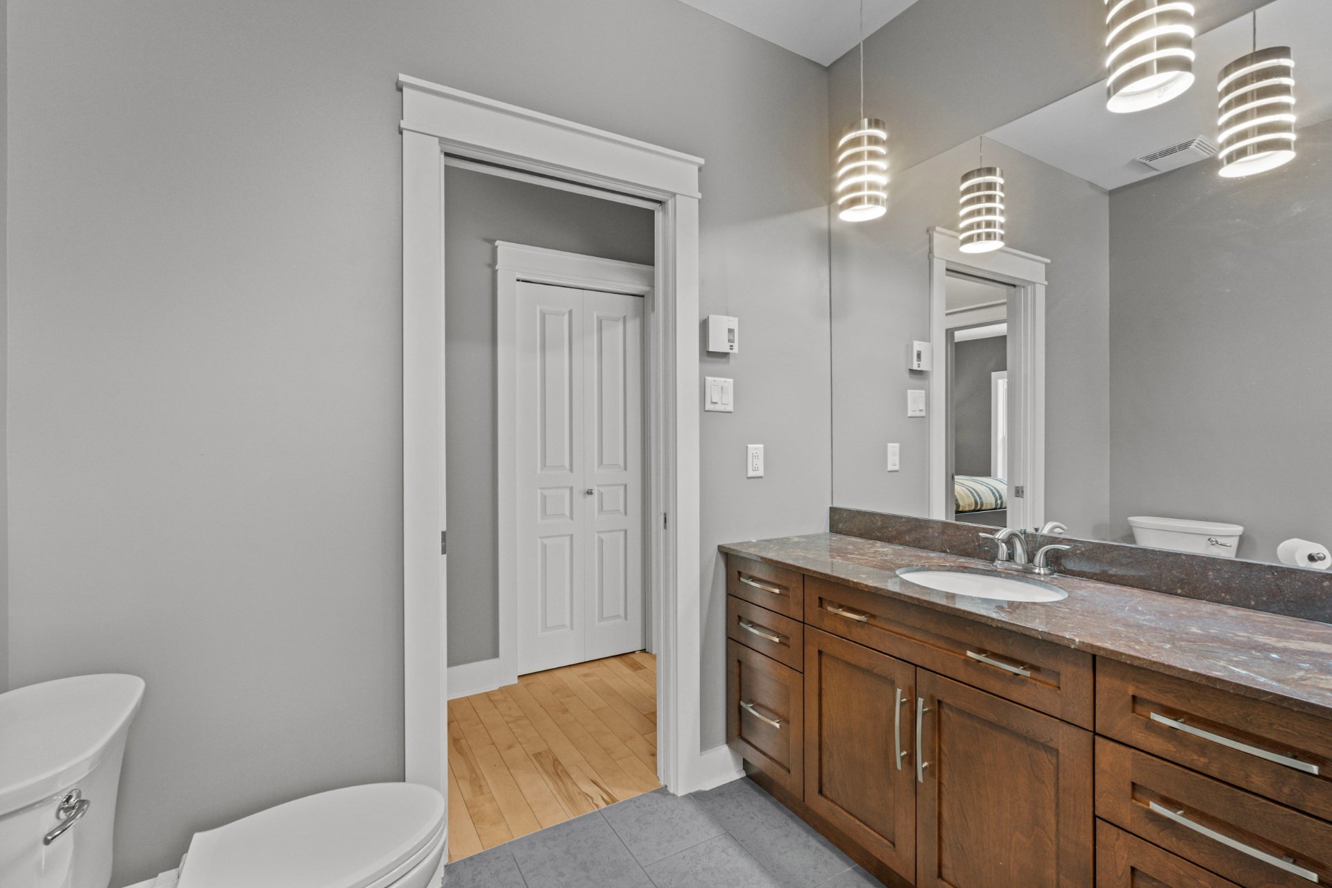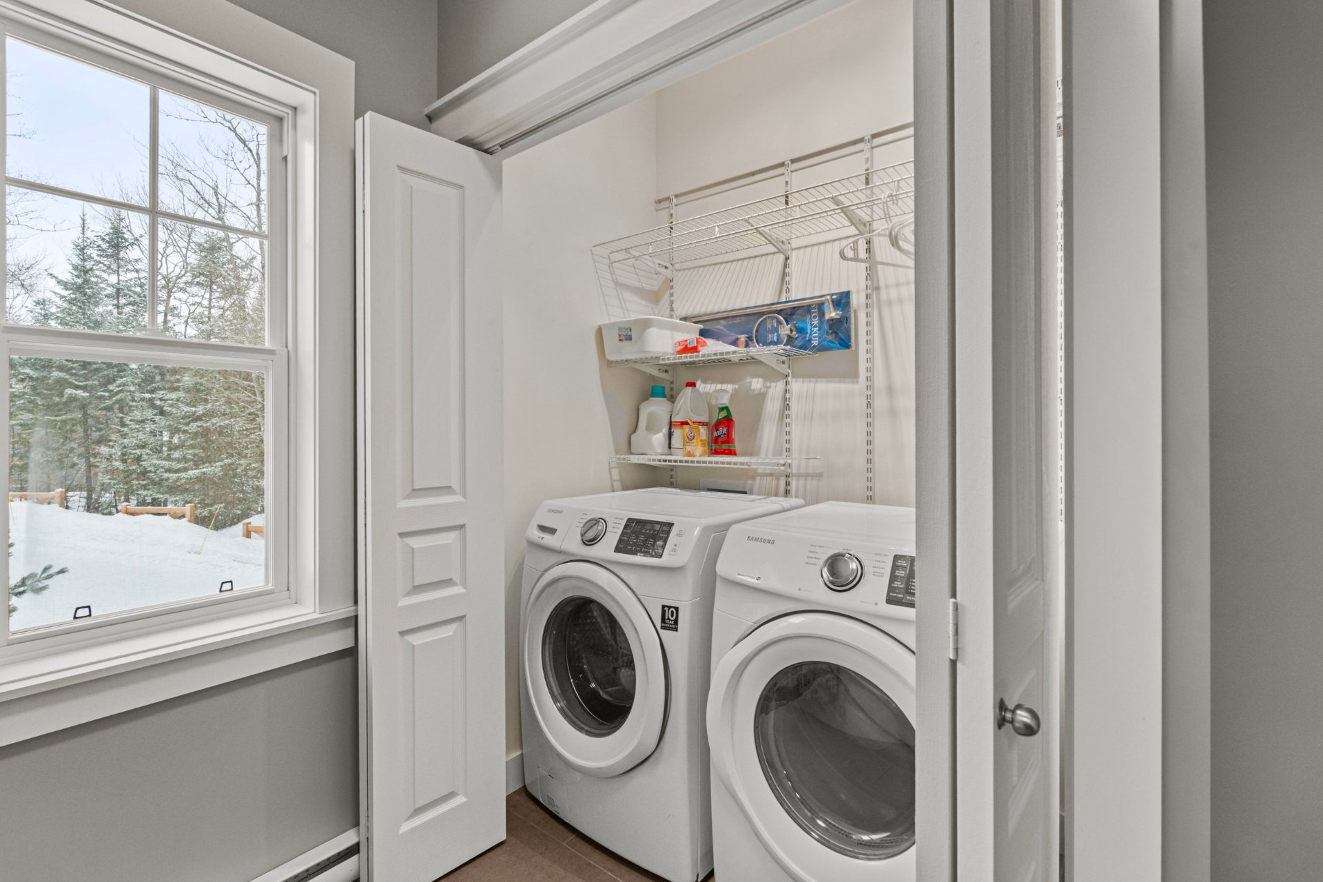 On the main floor, you will discover an elegant suite, complete with a spacious walk-in closet and a luxurious bathroom adorned with a marble countertop. You will also find two additional comfortable bedrooms, a full bathroom, and a practical space dedicated to the installation of the washer and dryer.
