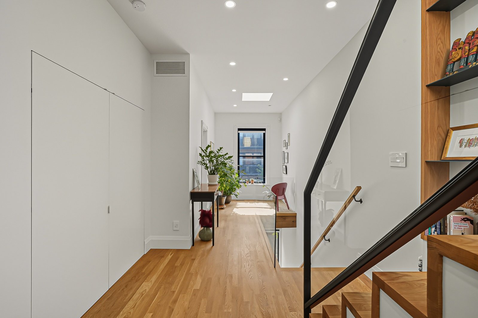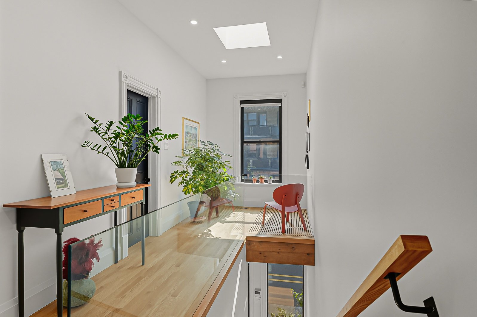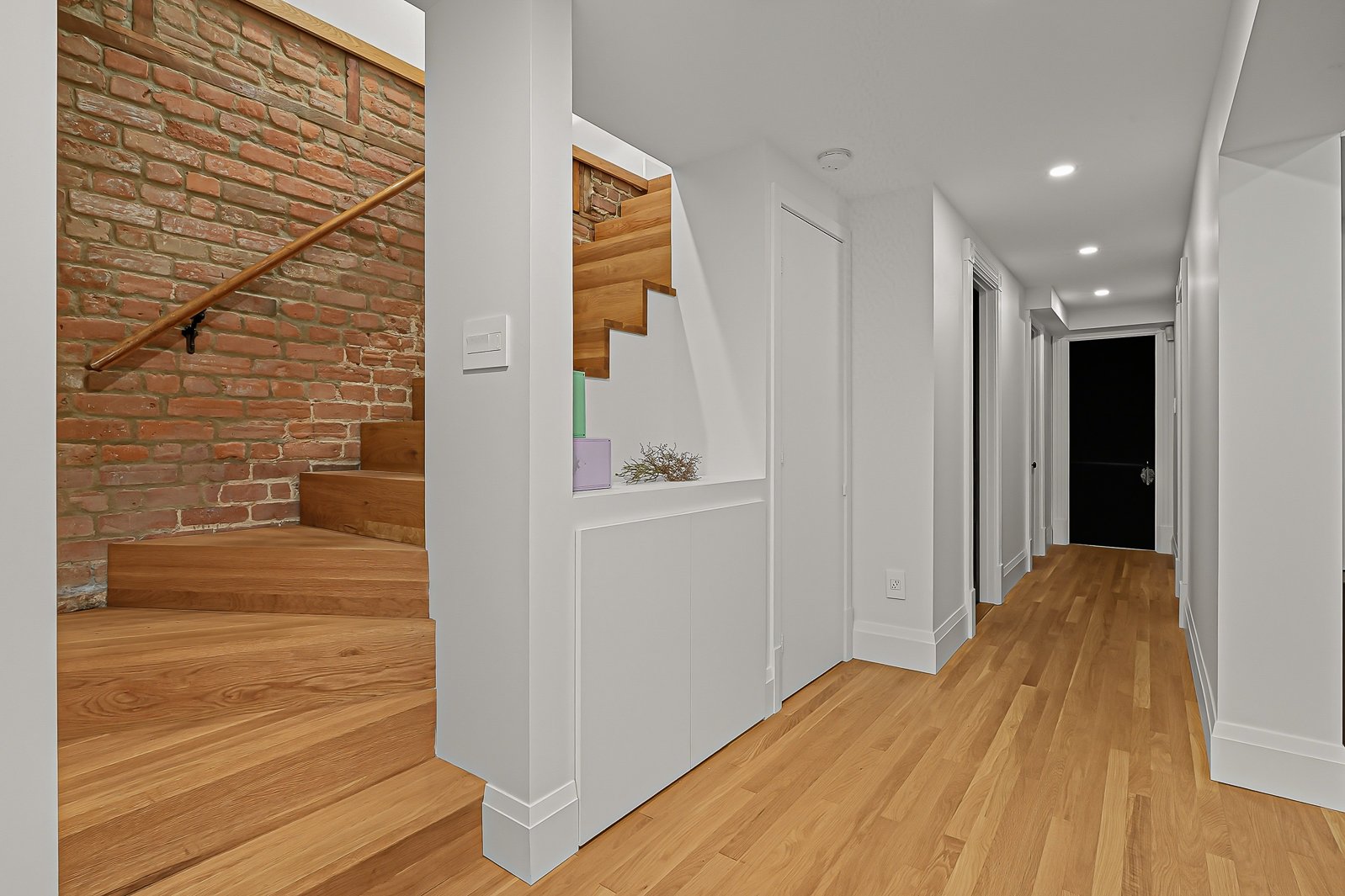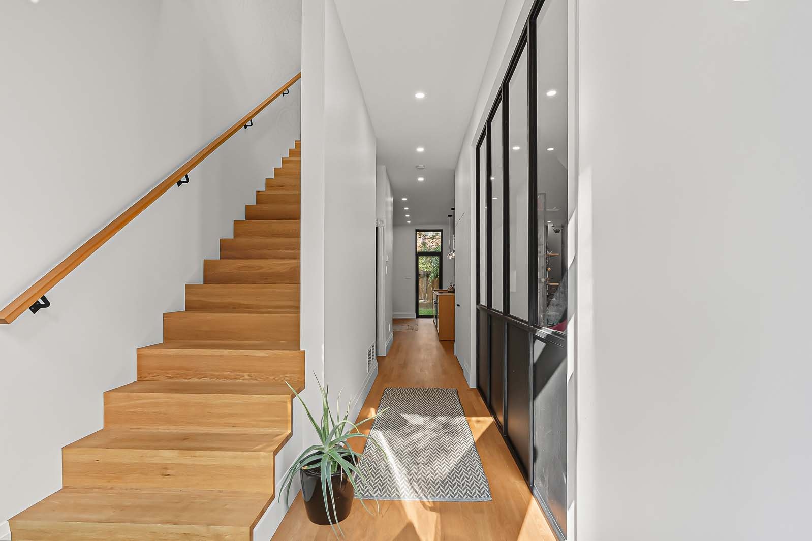 Behind this classic red brick façade stands a house renovated by detail-oriented owners. The 4-storey layout is surprisingly spacious, with ceilings of up to 10 feet and a continuous staircase on 2 landings, promising generous spaces bathed in light. Brick walls, interior doors and exposed beams have been preserved, providing a welcome contrast with the contemporary, high-end European-style interior. An intimate, leafy courtyard for parking a car, and a large terrace opening onto the mezzanine on the 3rd floor complete this unique property.