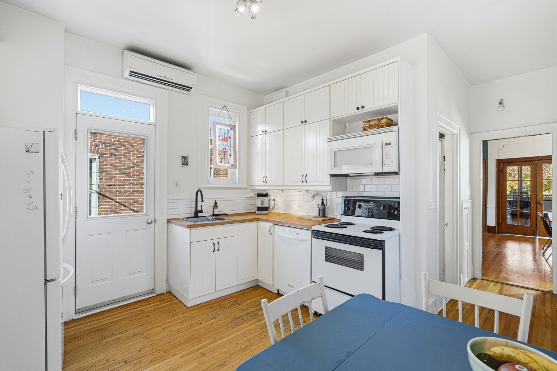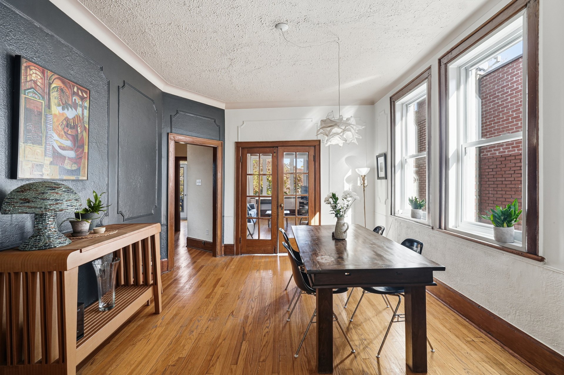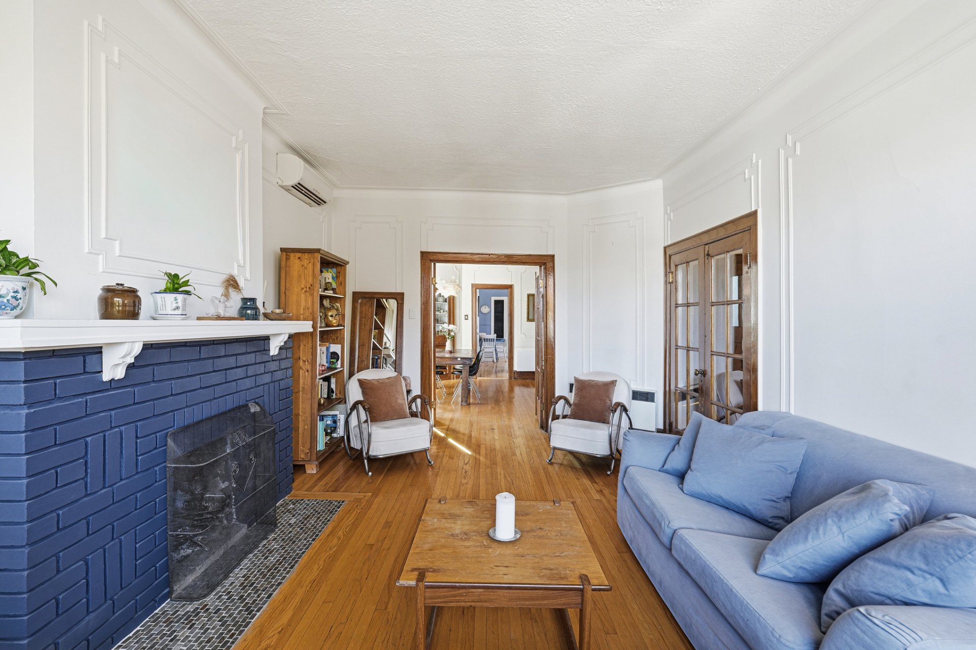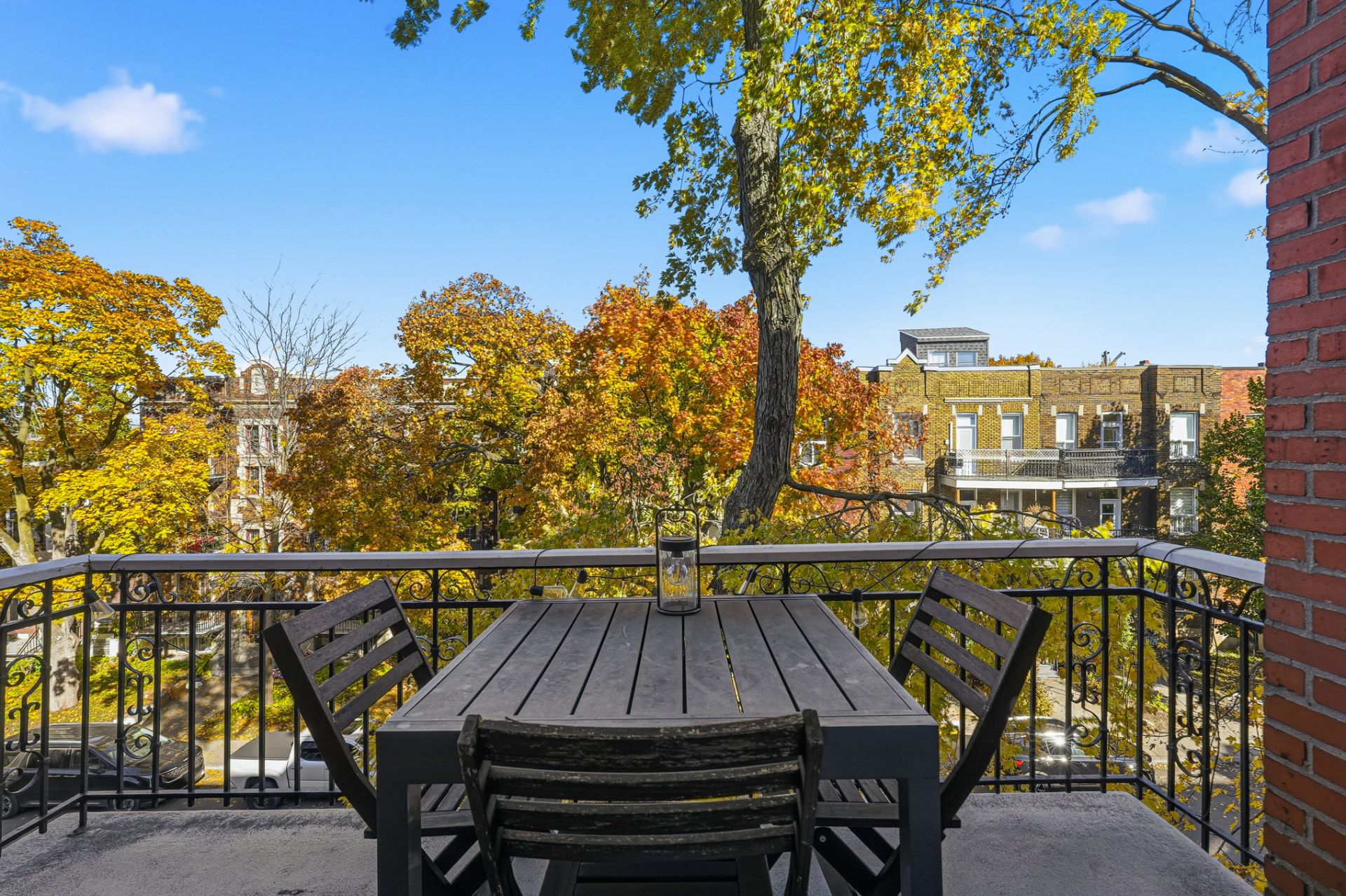 Bright and Outremont charm take center stage in this charming upper triplex near Bernard Avenue. Large living room with decorative fireplace and oversized windows overlooking the treetops, central dining room with built-in cabinet, high ceilings, stunning moldings and plasterwork, & access to the rooftop to build a terrace. Three bedrooms - one with direct access to the bathroom, one with a private, ensuite powder room - large front balcony, and private storage. Steps away from the shopps and restaurants of Van Horne Avenue and Bernard Avenue, close to the cafés and bistros of Mile End, renowned schools, and transportation.