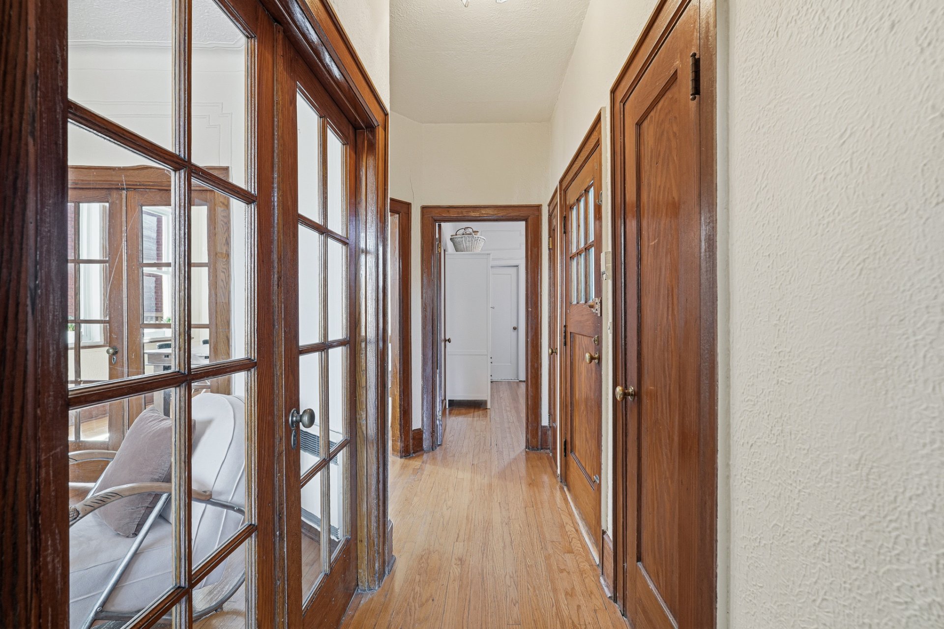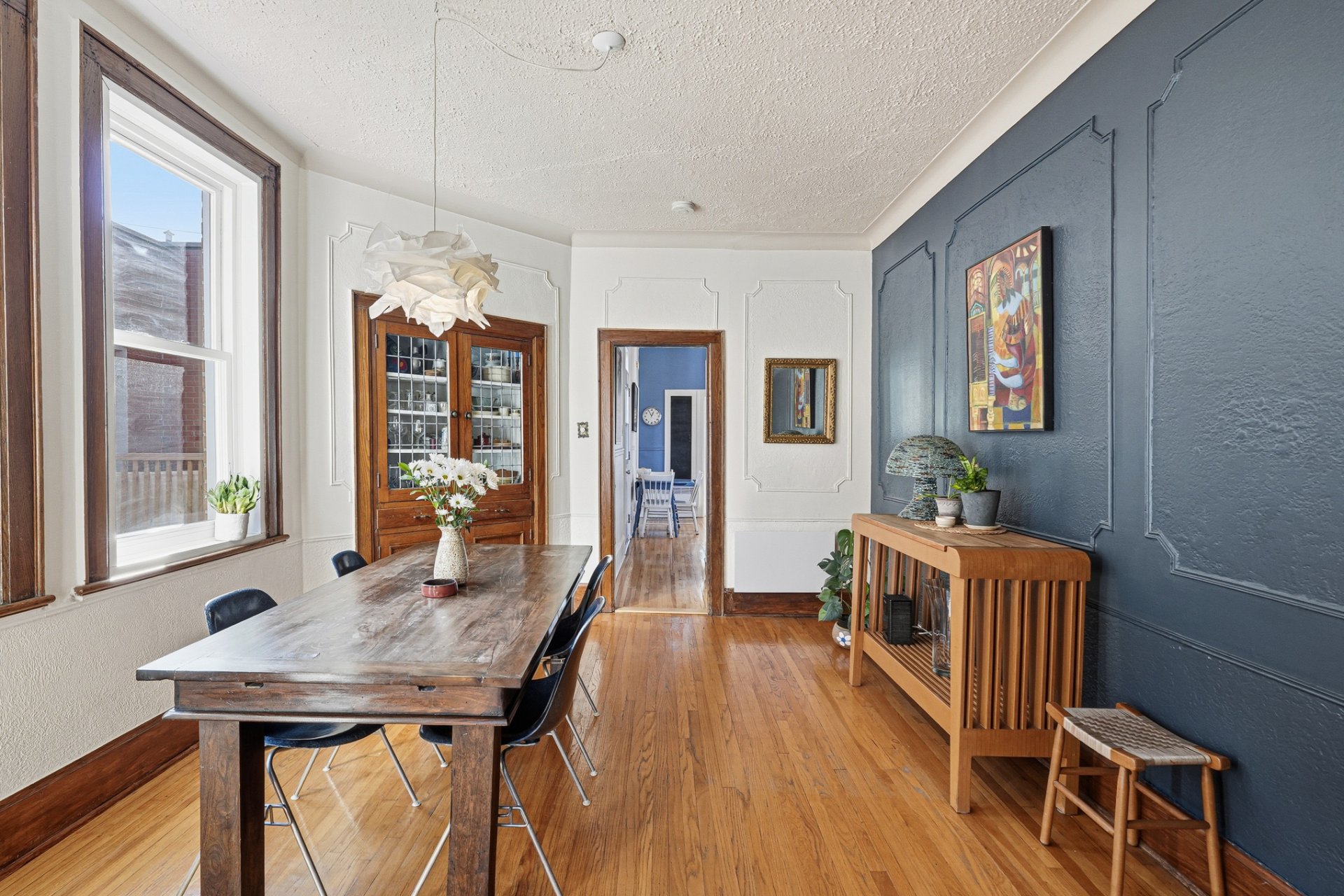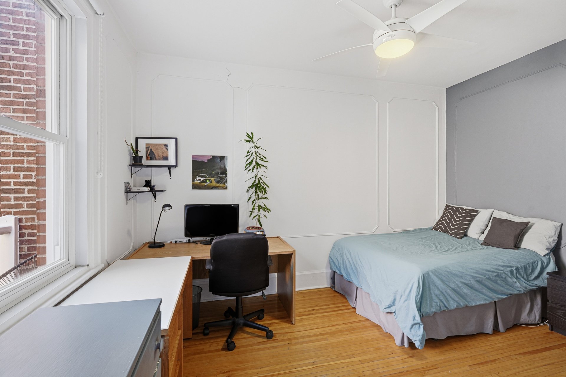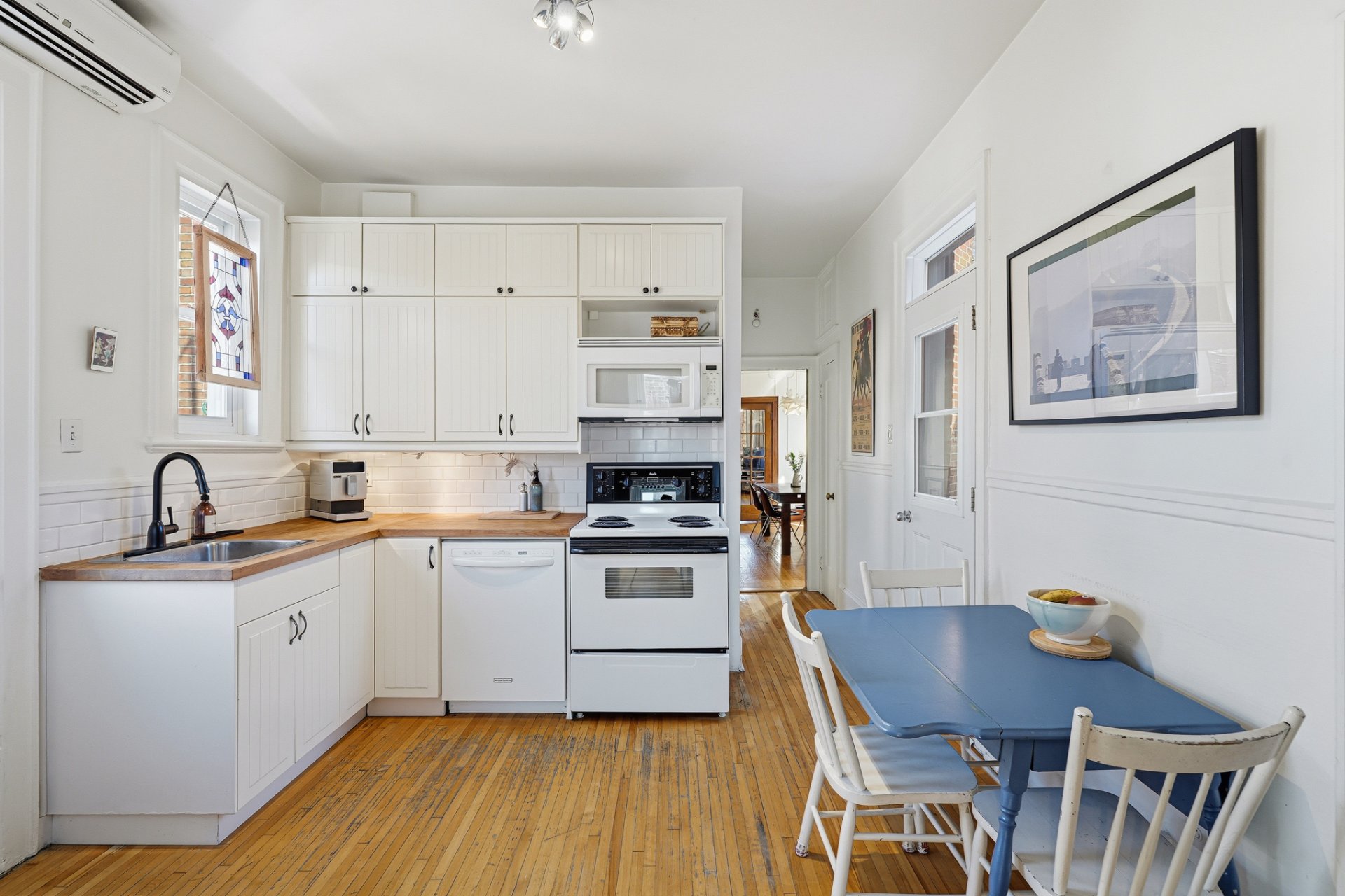 Bright and Outremont charm take center stage in this charming upper triplex near Bernard Avenue. Large living room with decorative fireplace and oversized windows overlooking the treetops, central dining room with built-in cabinet, high ceilings, stunning moldings and plasterwork, & access to the rooftop to build a terrace. Three bedrooms - one with direct access to the bathroom, one with a private, ensuite powder room - large front balcony, and private storage. Steps away from the shopps and restaurants of Van Horne Avenue and Bernard Avenue, close to the cafés and bistros of Mile End, renowned schools, and transportation.