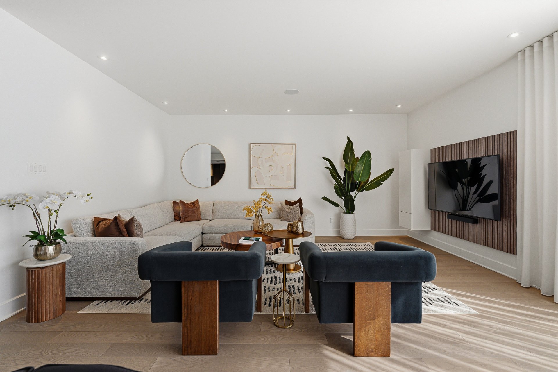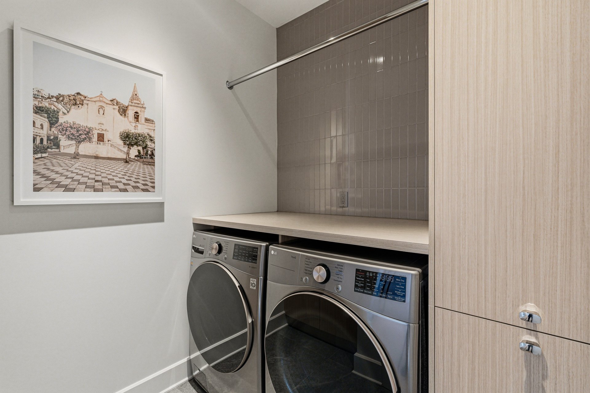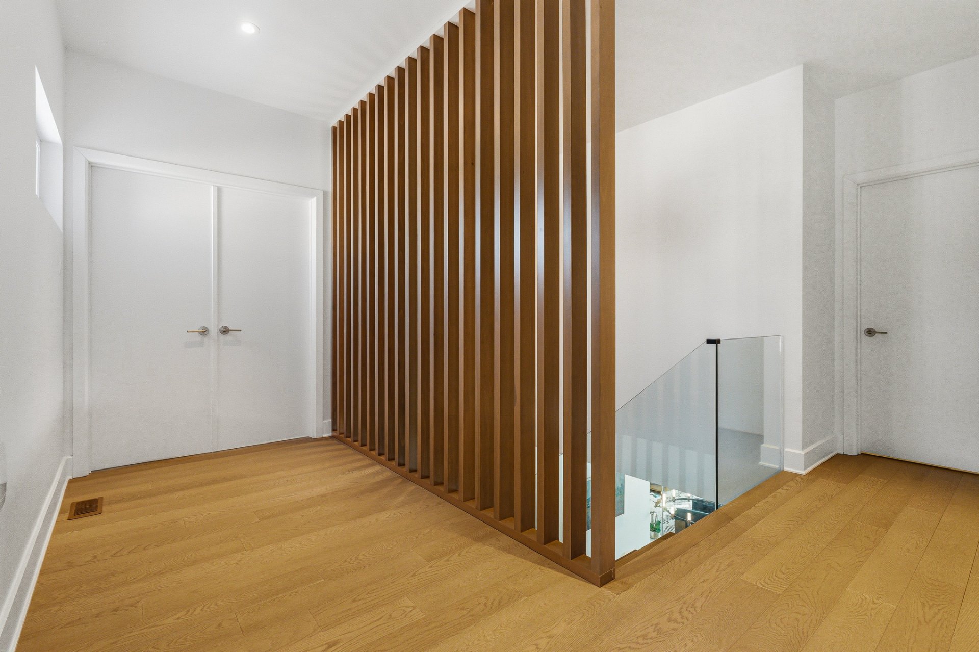 From the moment you step inside, a spacious foyer with 11-foot ceilings impresses with its volume and natural light. The integrated vestibule with built-in storage offers both functionality and elegance, while showcasing the striking central-stringer staircase with glass railings -- a true architectural statement piece.