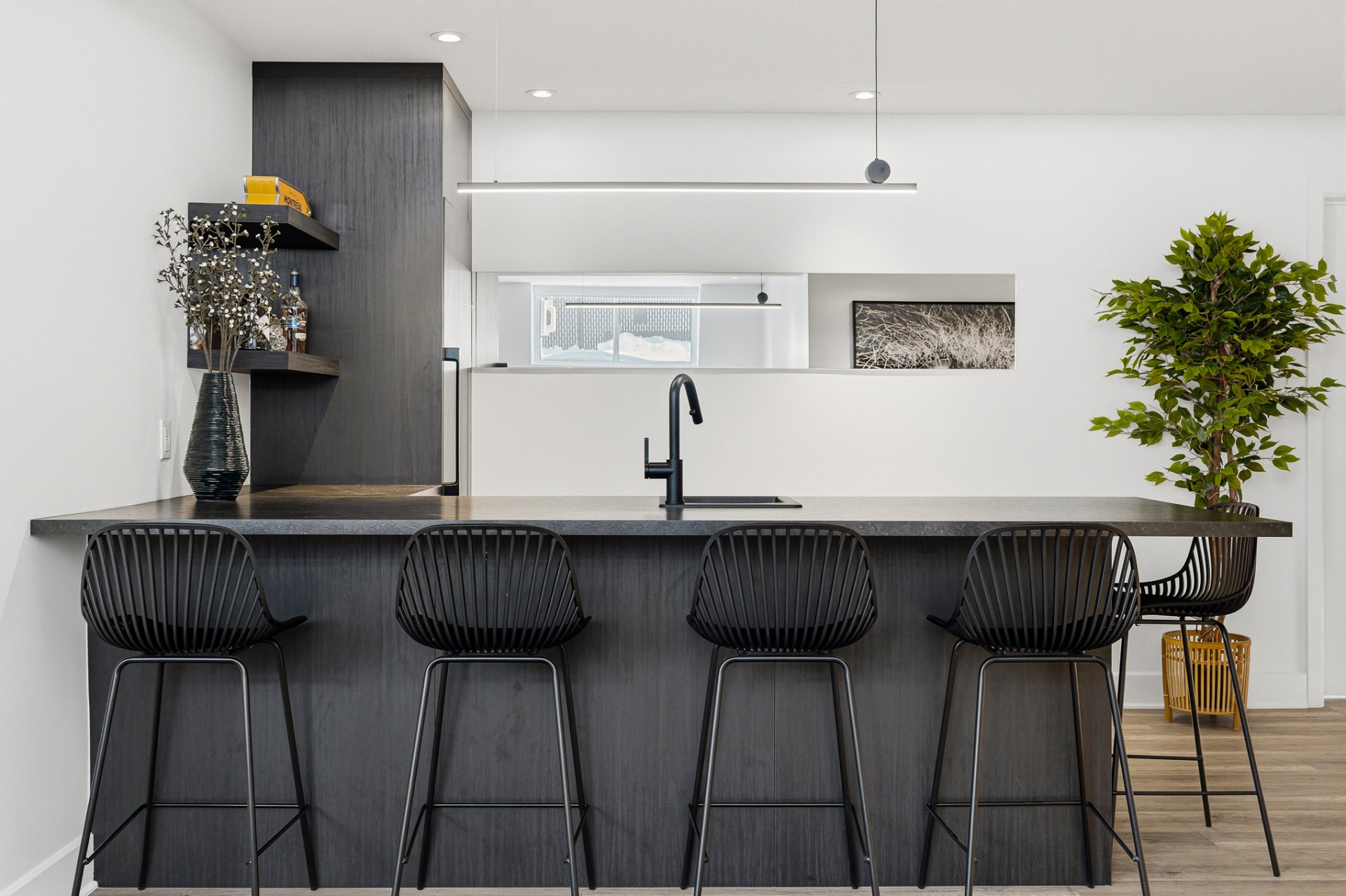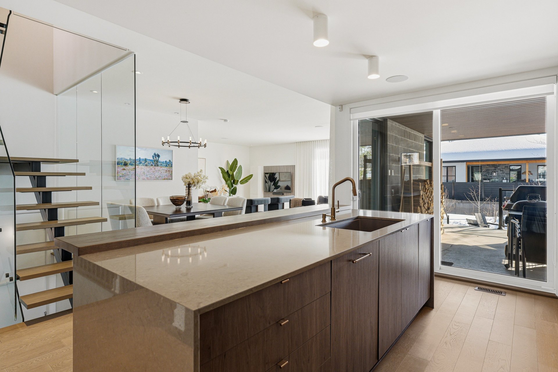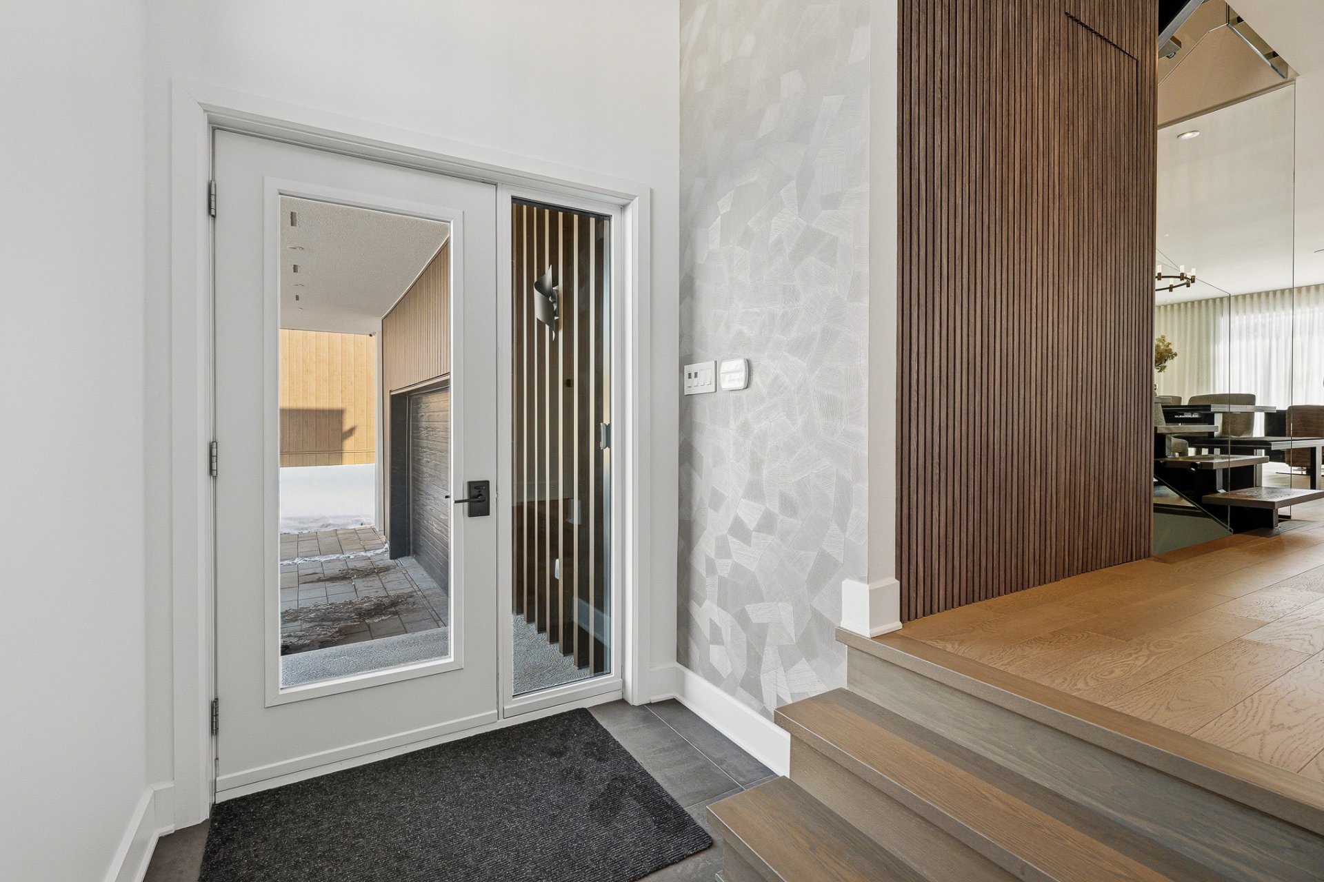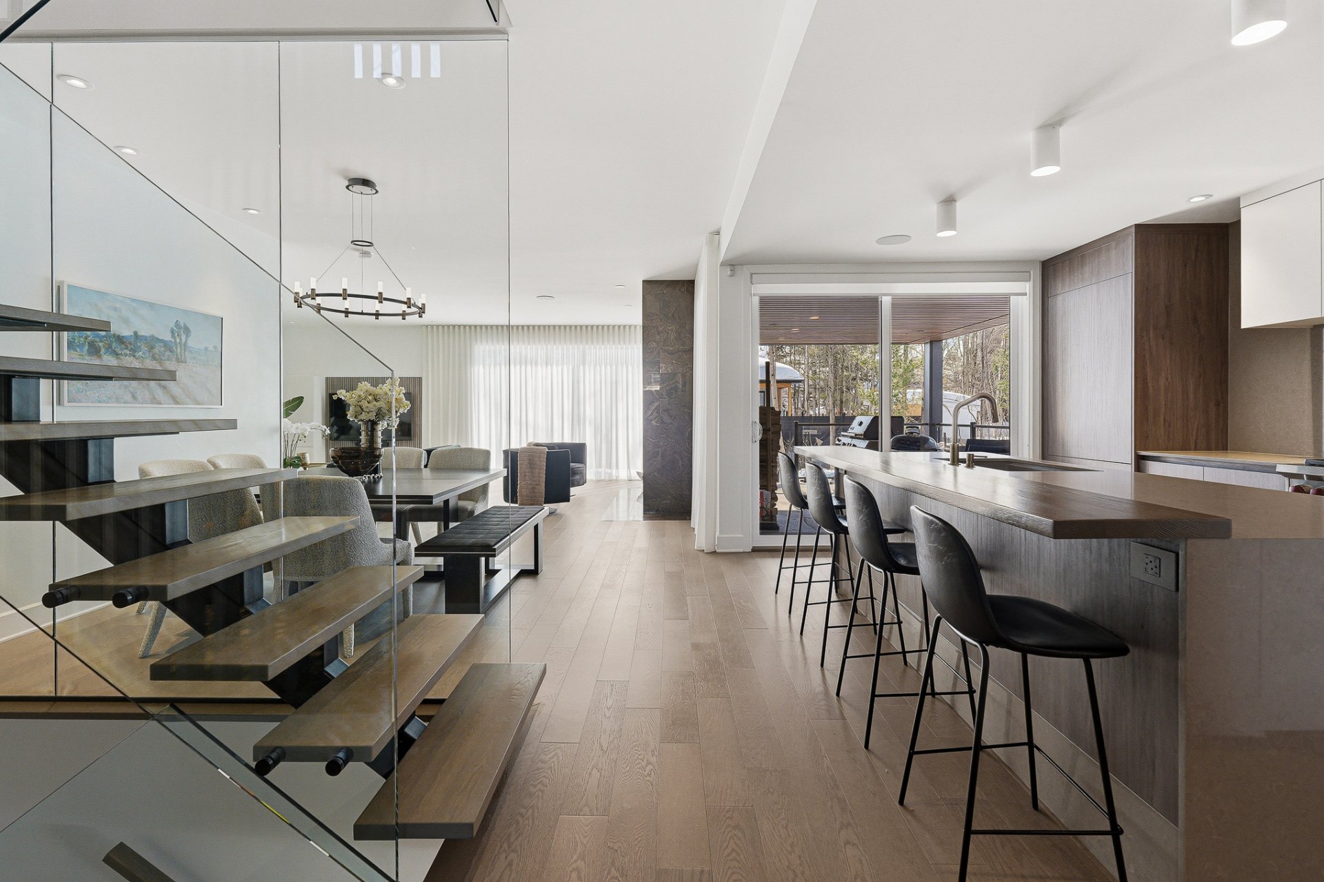 Located in the sought-after Chambéry area of Blainville, this exceptional contemporary residence stands out for its remarkable materials and refined design. A grand 11-foot ceiling foyer, central staircase with glass railings, and bright open-concept living space set the tone. The high-end kitchen features granite countertops, hidden appliances and a gas range. With 5 bedrooms, a luxurious primary suite, finished basement, heated pool and double garage, this home blends elegance, comfort and sophistication.