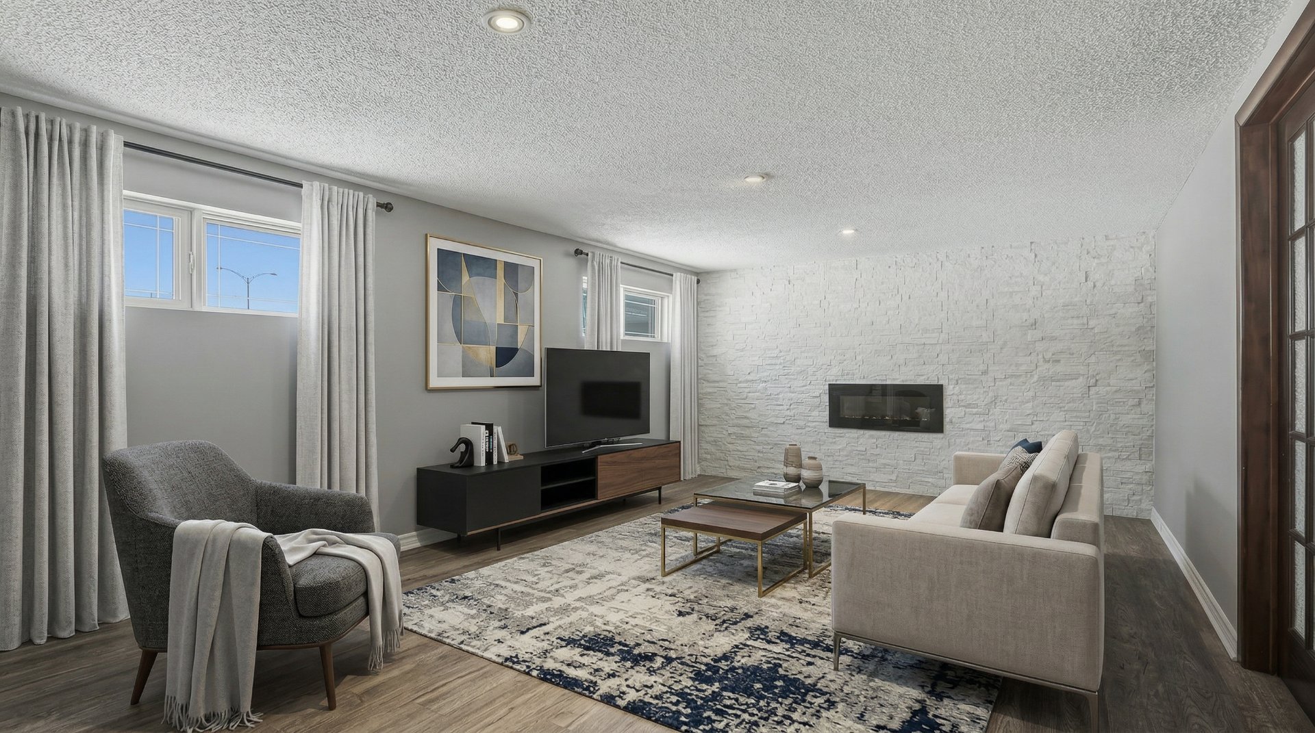 - Lighting fixtures; curtains and window coverings where installed; the main-floor dishwasher; one electric vehicle charging station; the electric fireplace in the basement; the connected alarm system; the two wall-mounted heat pumps (one on the main floor and one on the second floor); the main-floor kitchen refrigerator and the basement kitchen refrigerator; a second dishwasher in the basement kitchen, as well as the induction cooktop and built-in oven; the range hood; the basement TV and wall mo