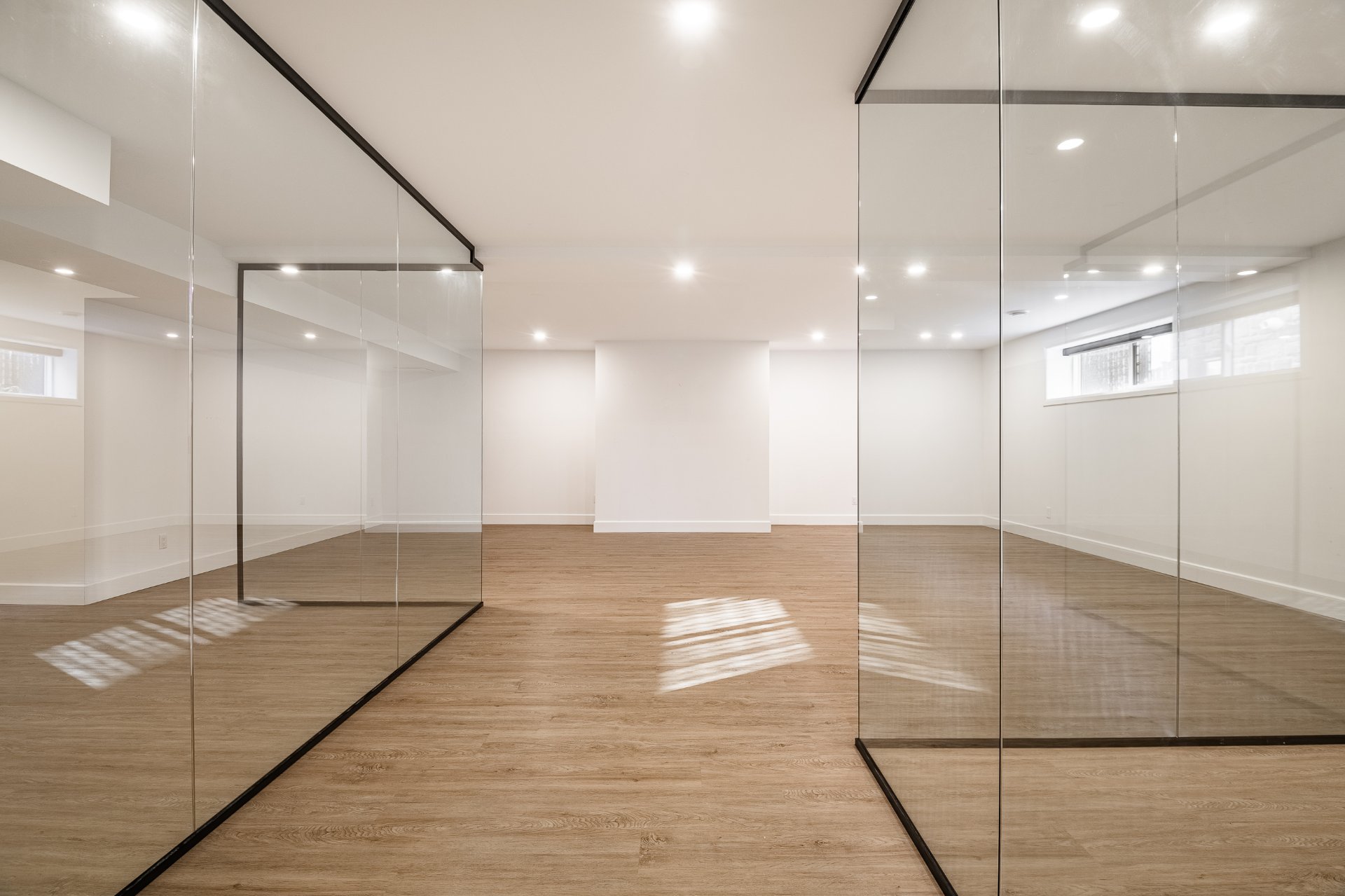 * Multifunctional glazed area with a panoramic view of the first floor.