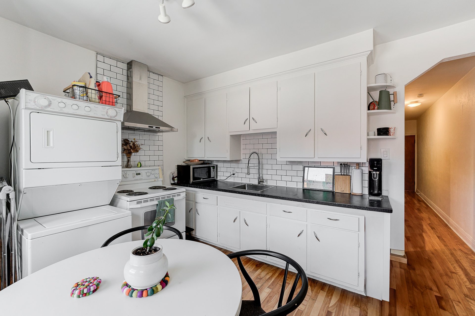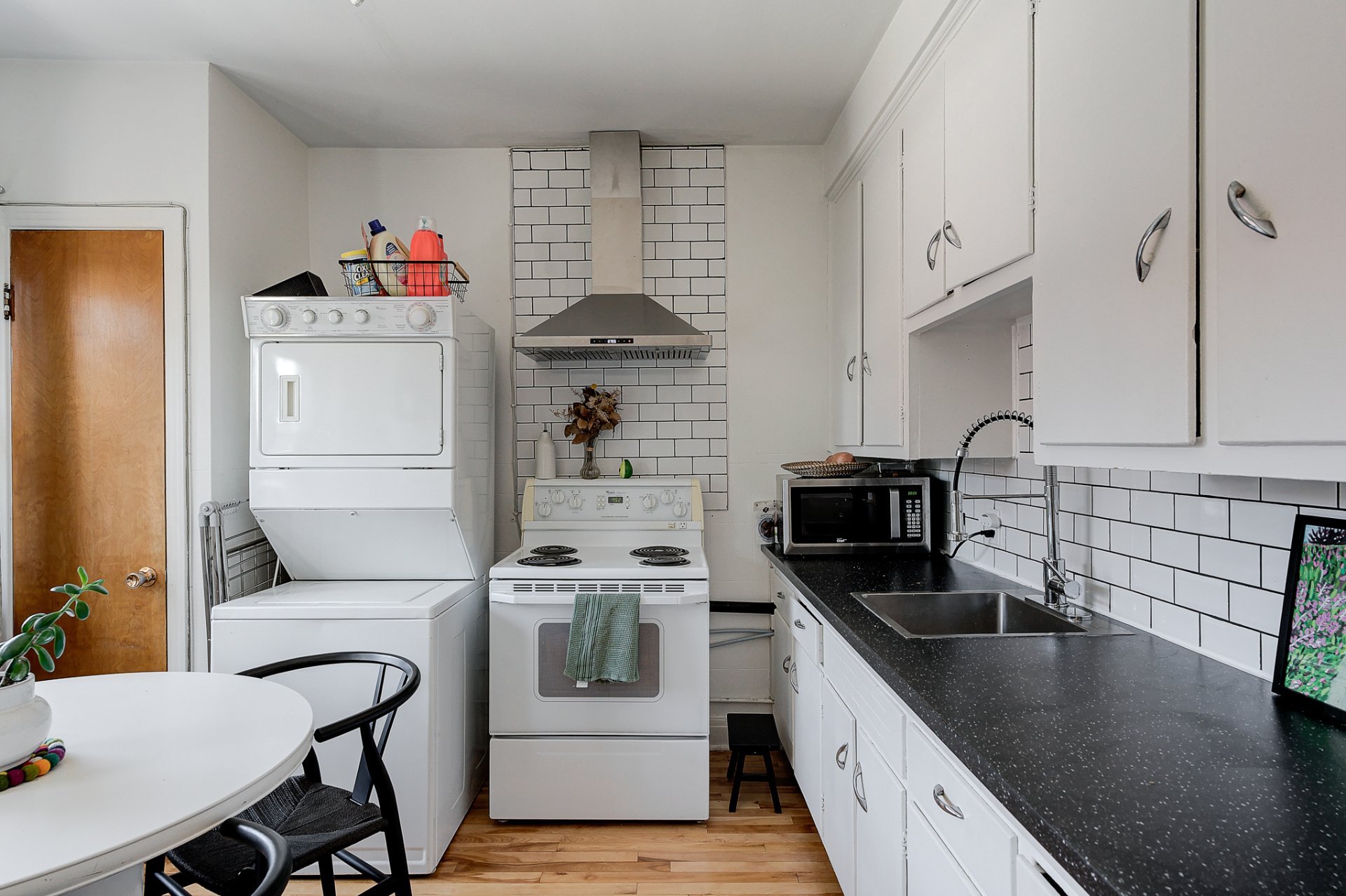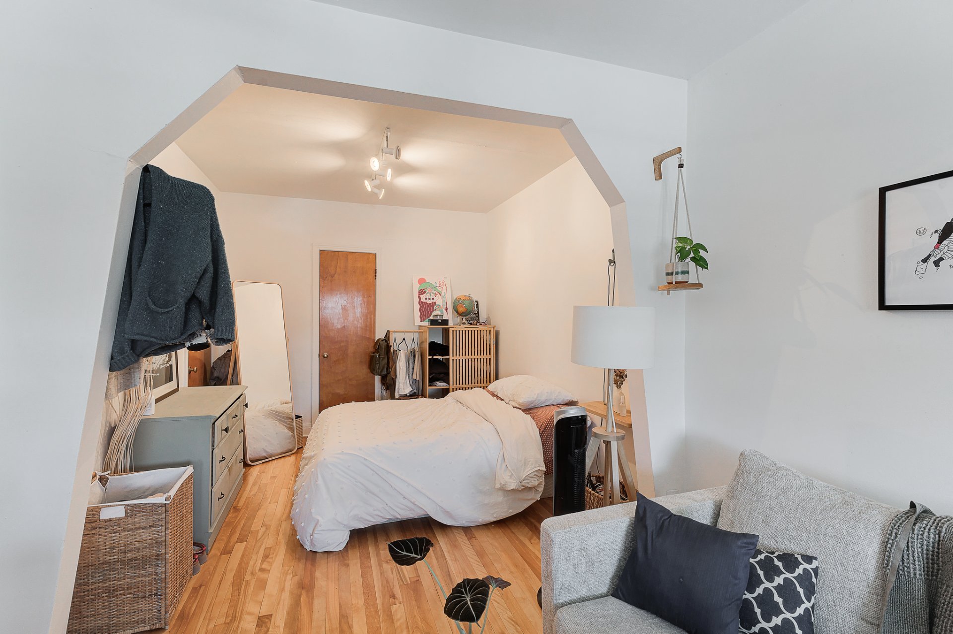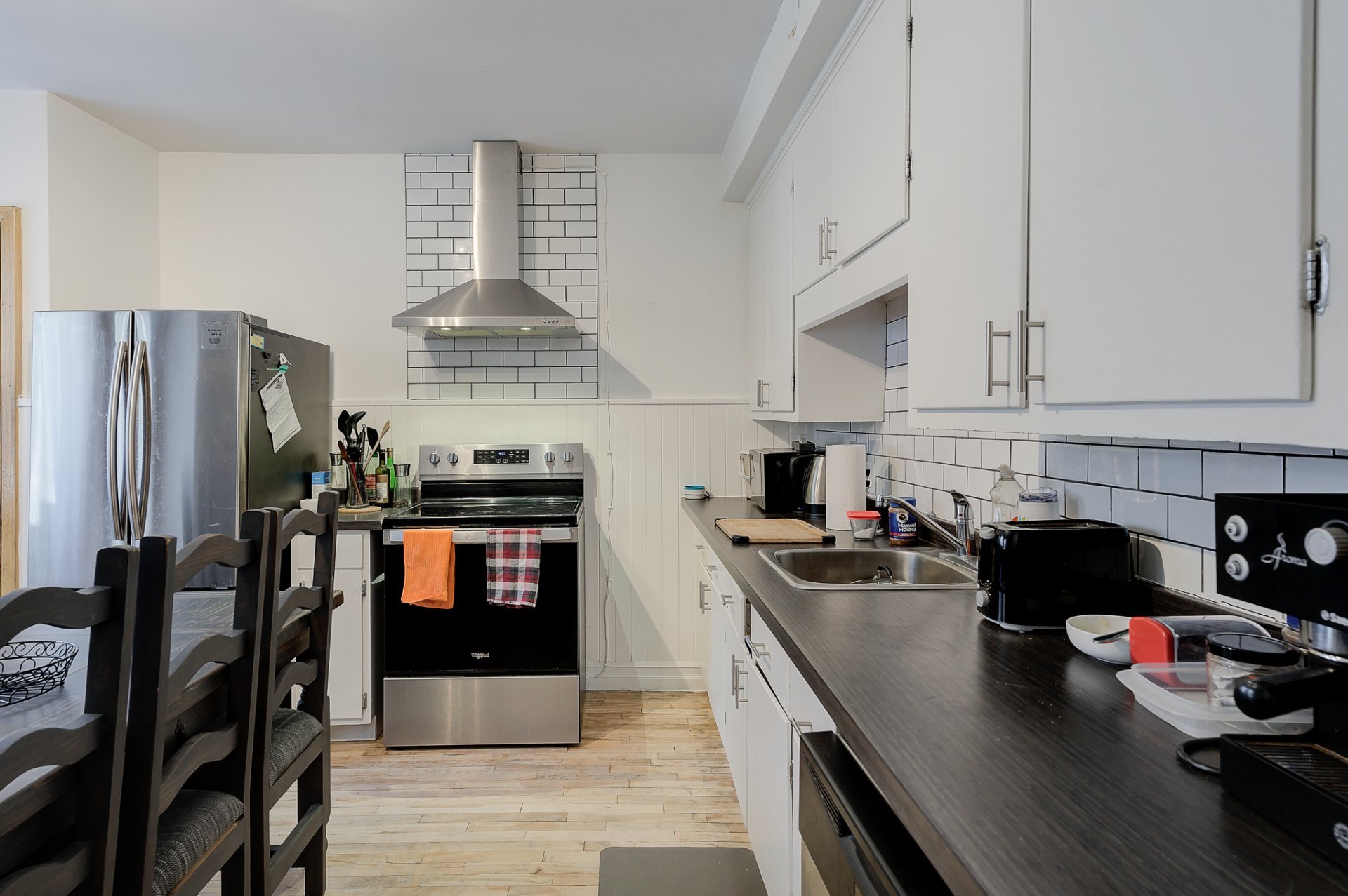 The ground floor unit (#1) offers a spacious and bright 4 ½ with a renovated bathroom featuring a skylight, and a modernized kitchen that opens onto a charming west-facing backyard.
