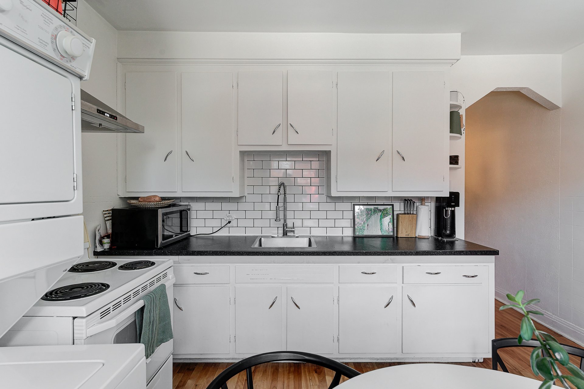 On the second floor, two updated 3 ½ units each include in-unit washer/dryer hookups, a private front balcony, and access to a shared rear balcony.