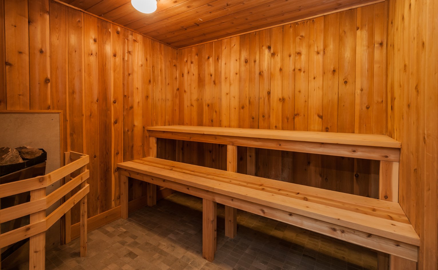 -- Features excellent amenities including a heated indoor pool and sauna, perfect for year-round comfort.