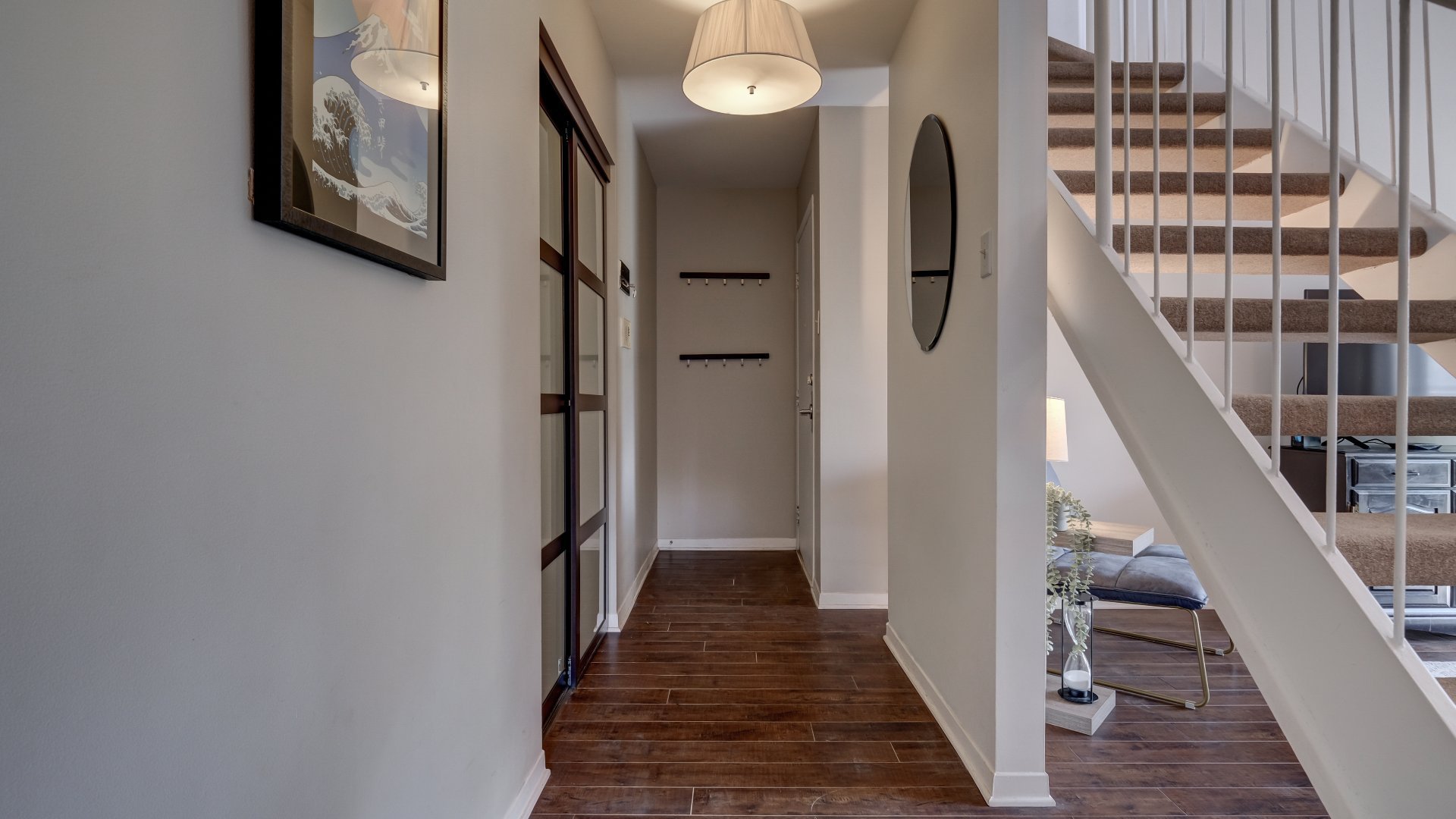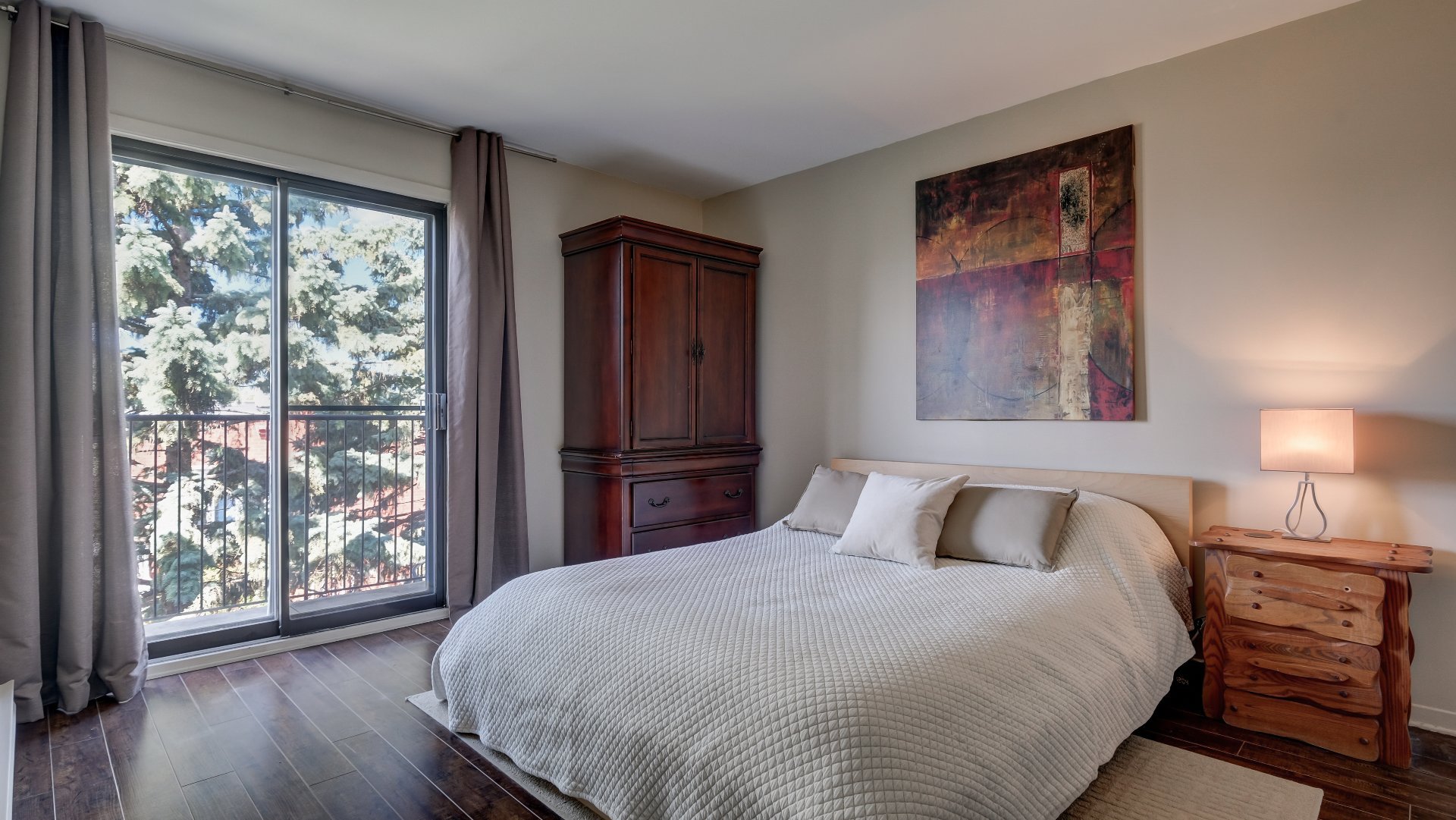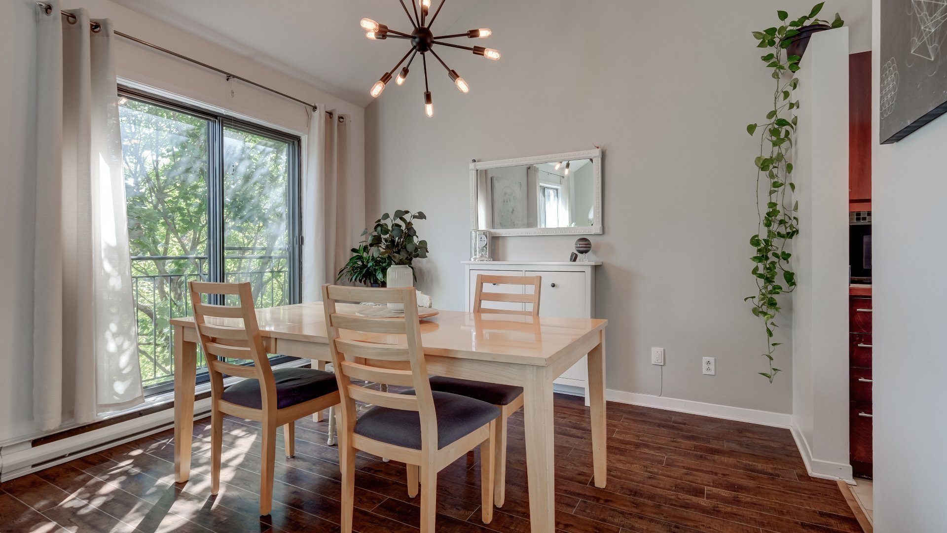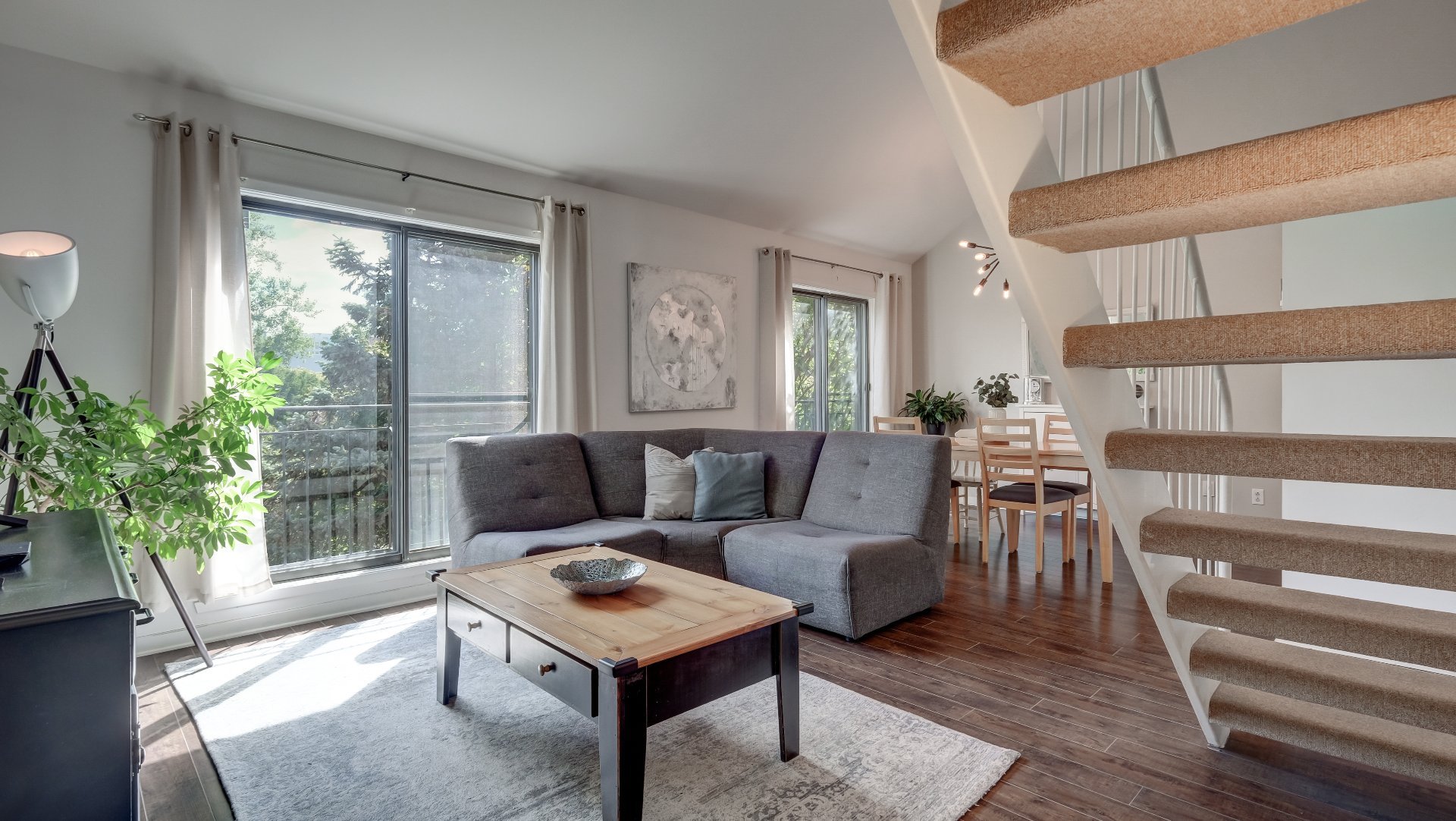 Beautiful two-story condominium located in a peaceful complex with a central park. The property offers two good-sized bedrooms, including a master bedroom with a walk-in closet, as well as a versatile mezzanine that can be used as an office, family room, or playroom. Abundant natural light on all levels. You will enjoy a separate laundry room, plenty of storage space, including storage in the garage, and an indoor garage. The mezzanine provides access to a pleasant private terrace with an unobstructed view of Montreal. Strategic location.