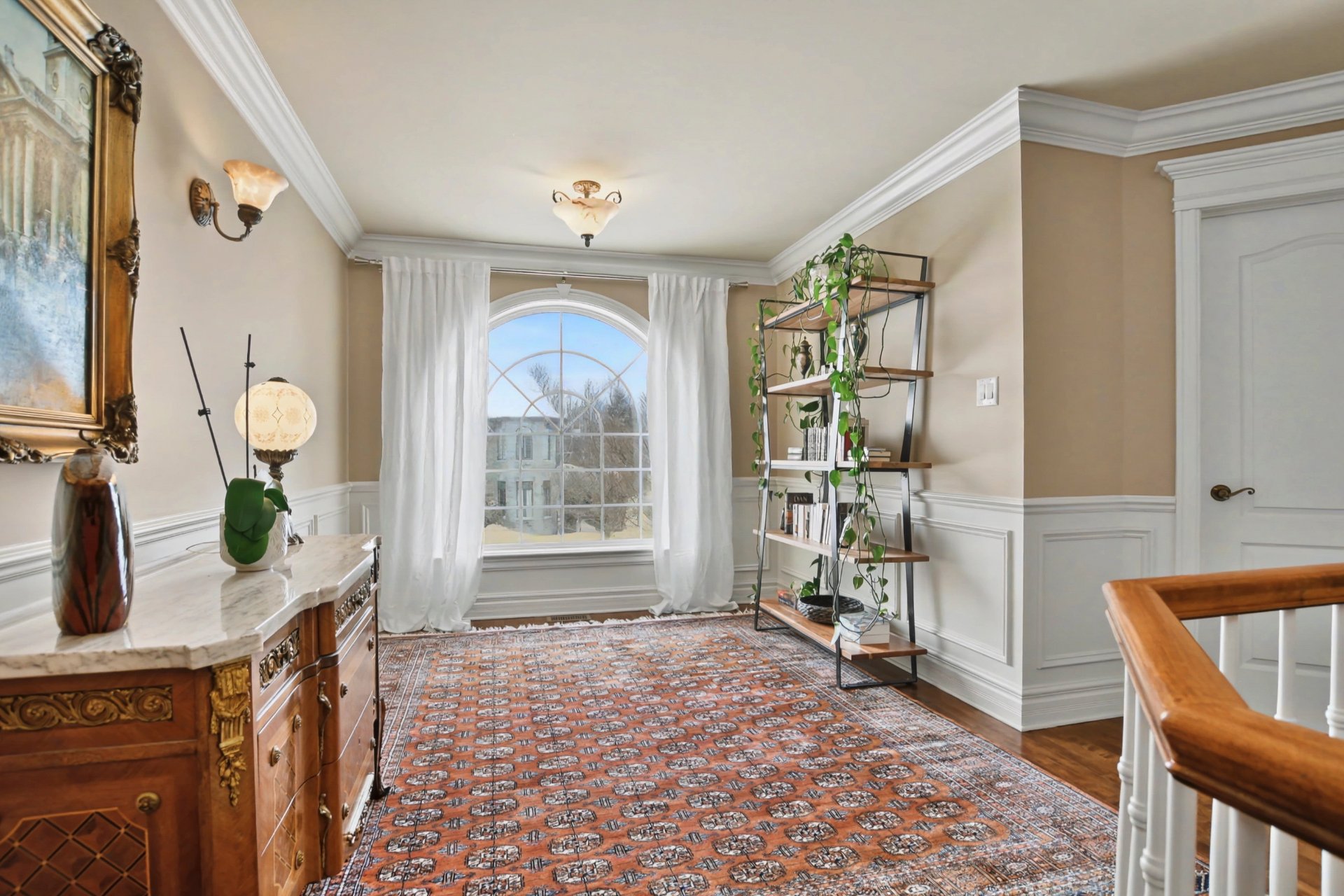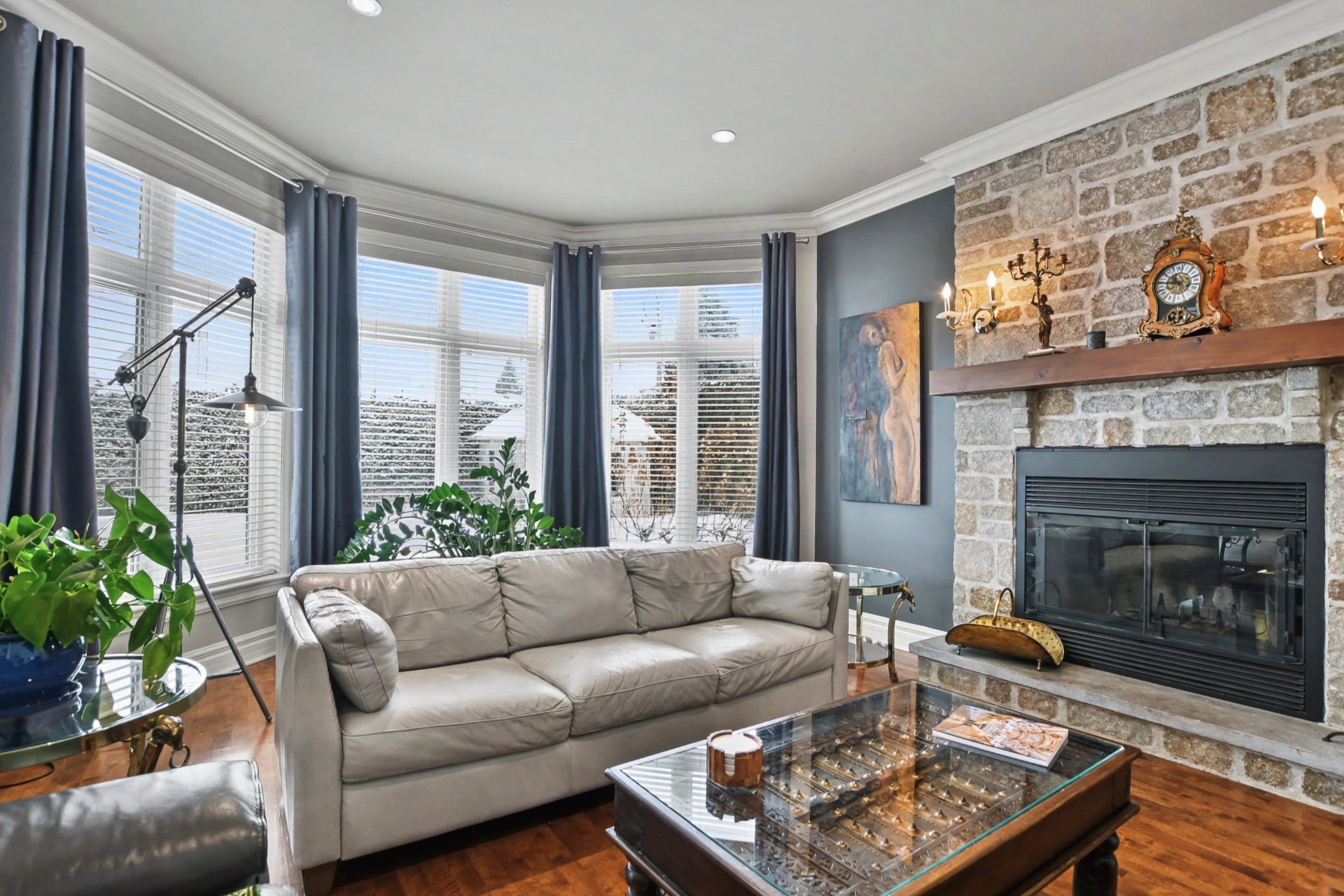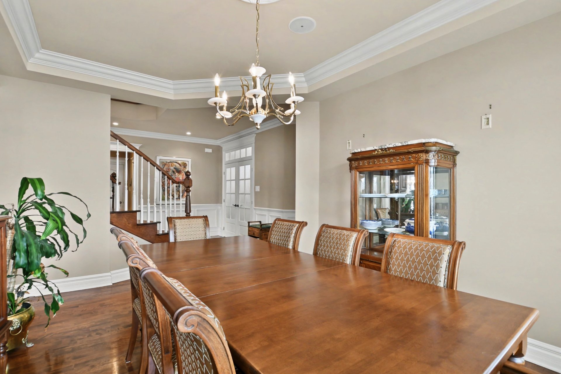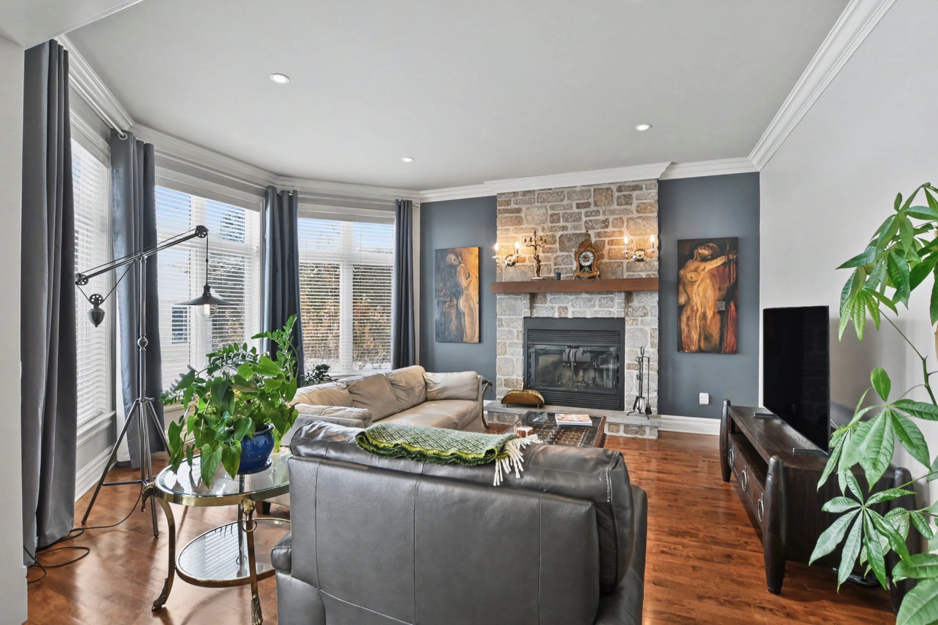 From the moment you step inside, you are welcomed by a spacious vestibule with walk-in closet, generous living areas, 9-foot ceilings on the main floor and 10-foot ceilings in the living room, a majestic stone fireplace façade, and a grand curved staircase.