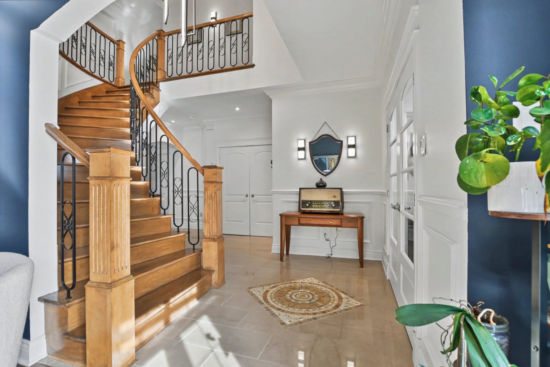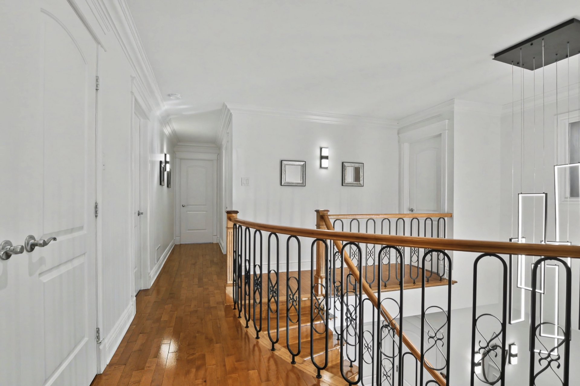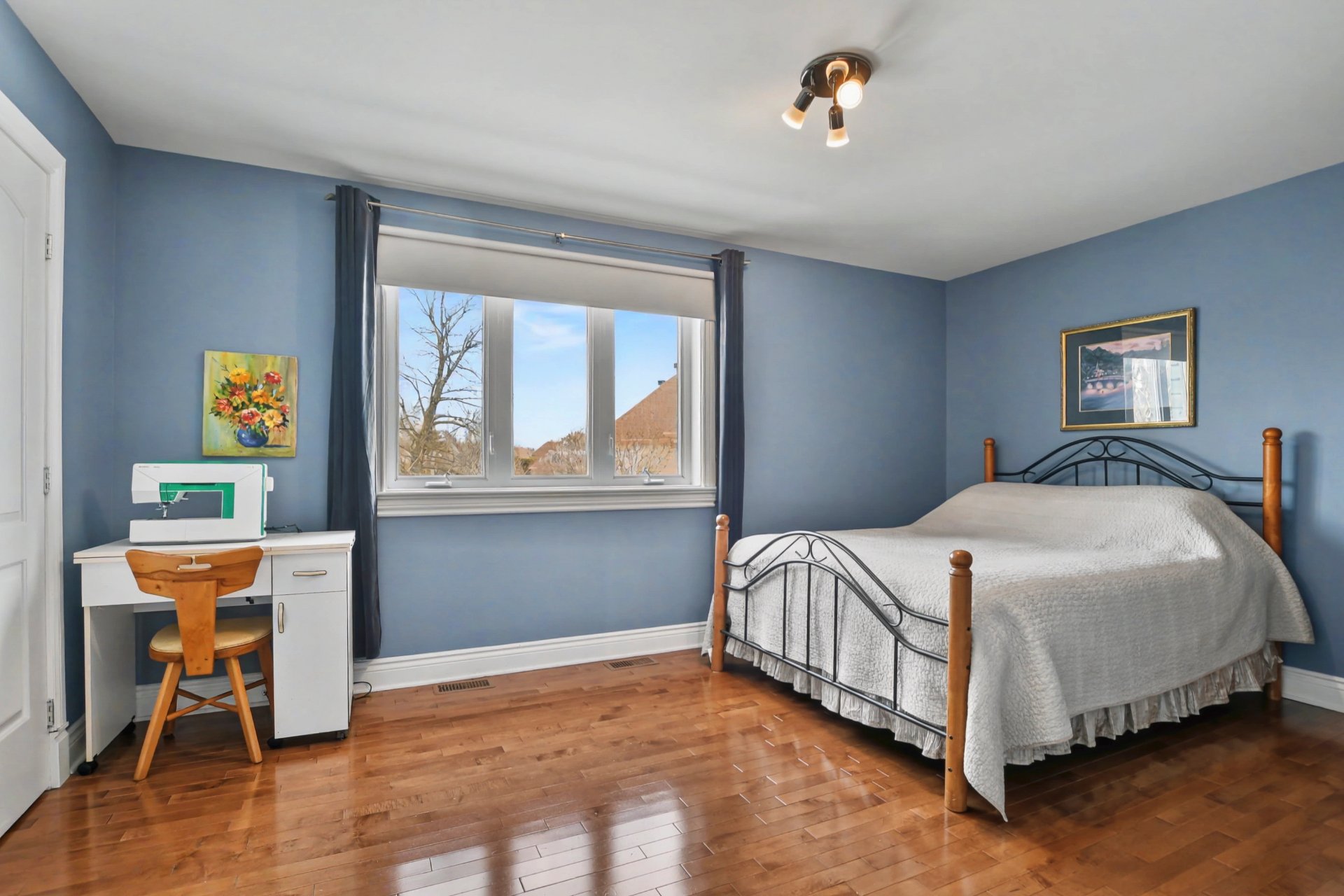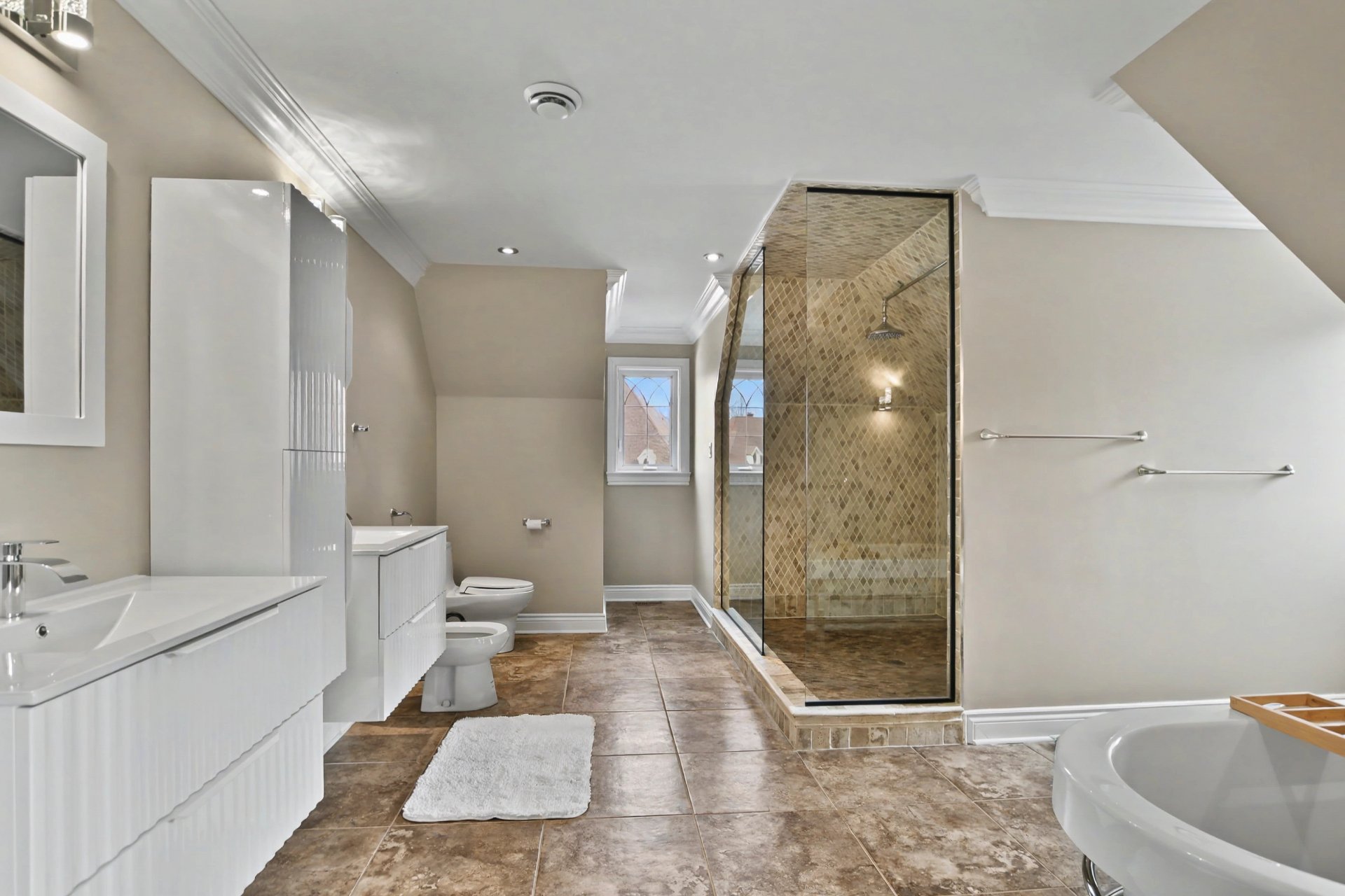 This elegant residence with full masonry on all four sides offers generous living spaces and has been meticulously maintained. The upper level features 4 bedrooms, including the primary suite with an oversized walk-in closet and an ensuite bathroom with heated floors, while two of the other three bedrooms also offer large walk-in closets, in addition to a second full bathroom.