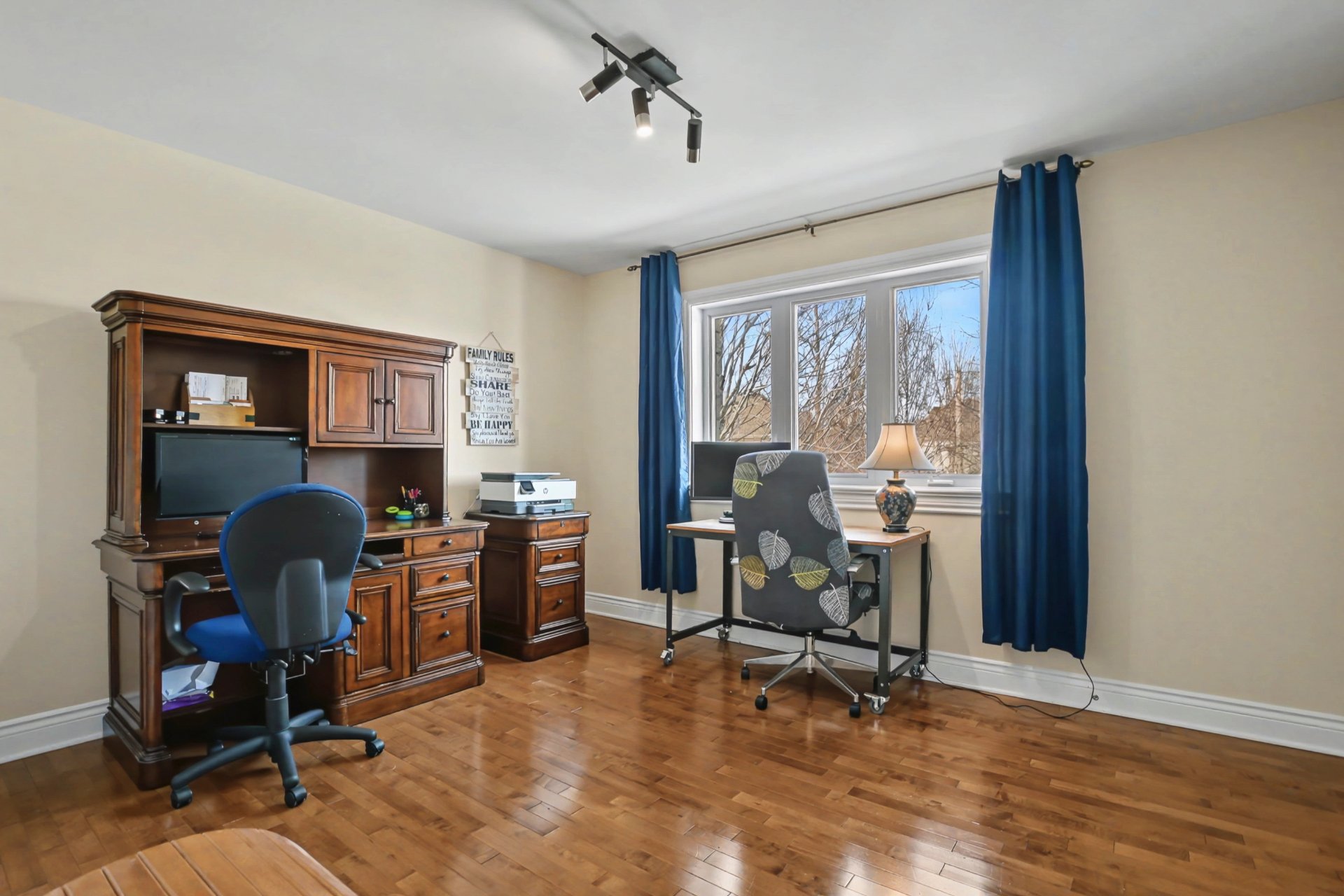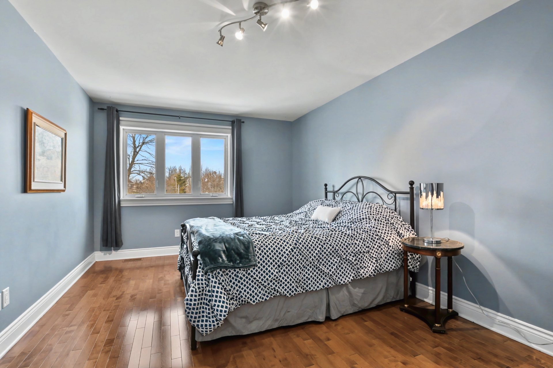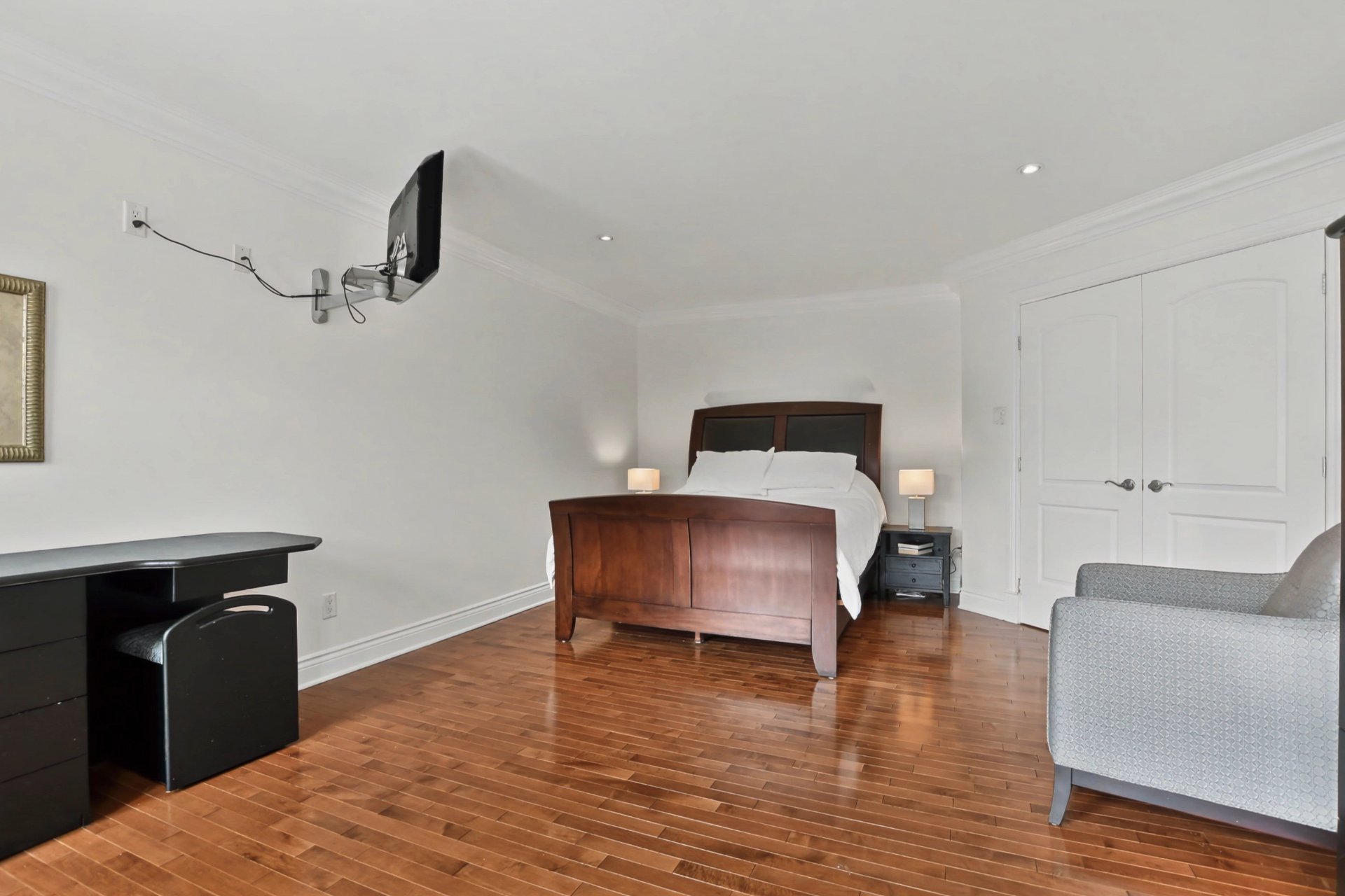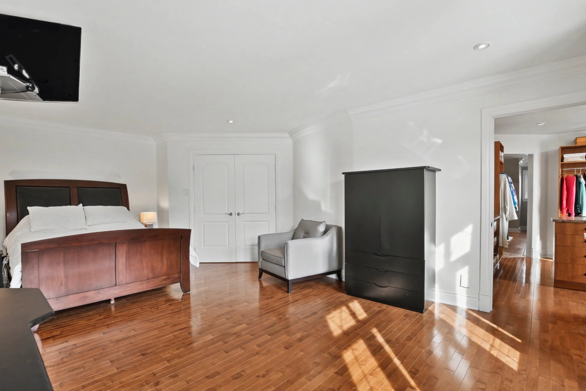 This elegant residence with full masonry on all four sides offers generous living spaces and has been meticulously maintained. The upper level features 4 bedrooms, including the primary suite with an oversized walk-in closet and an ensuite bathroom with heated floors, while two of the other three bedrooms also offer large walk-in closets, in addition to a second full bathroom.