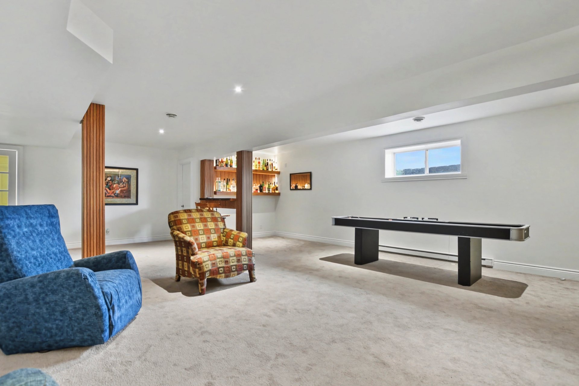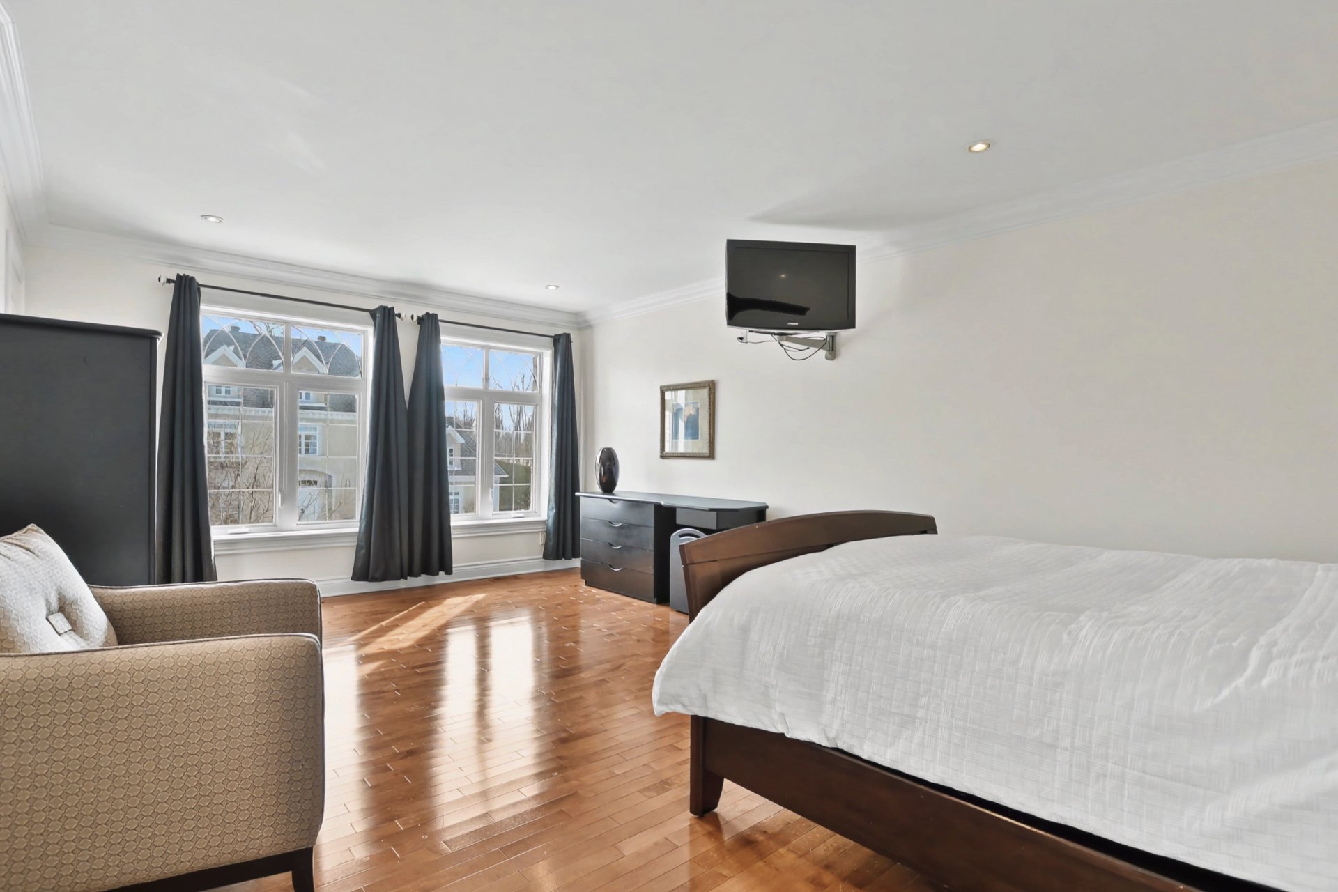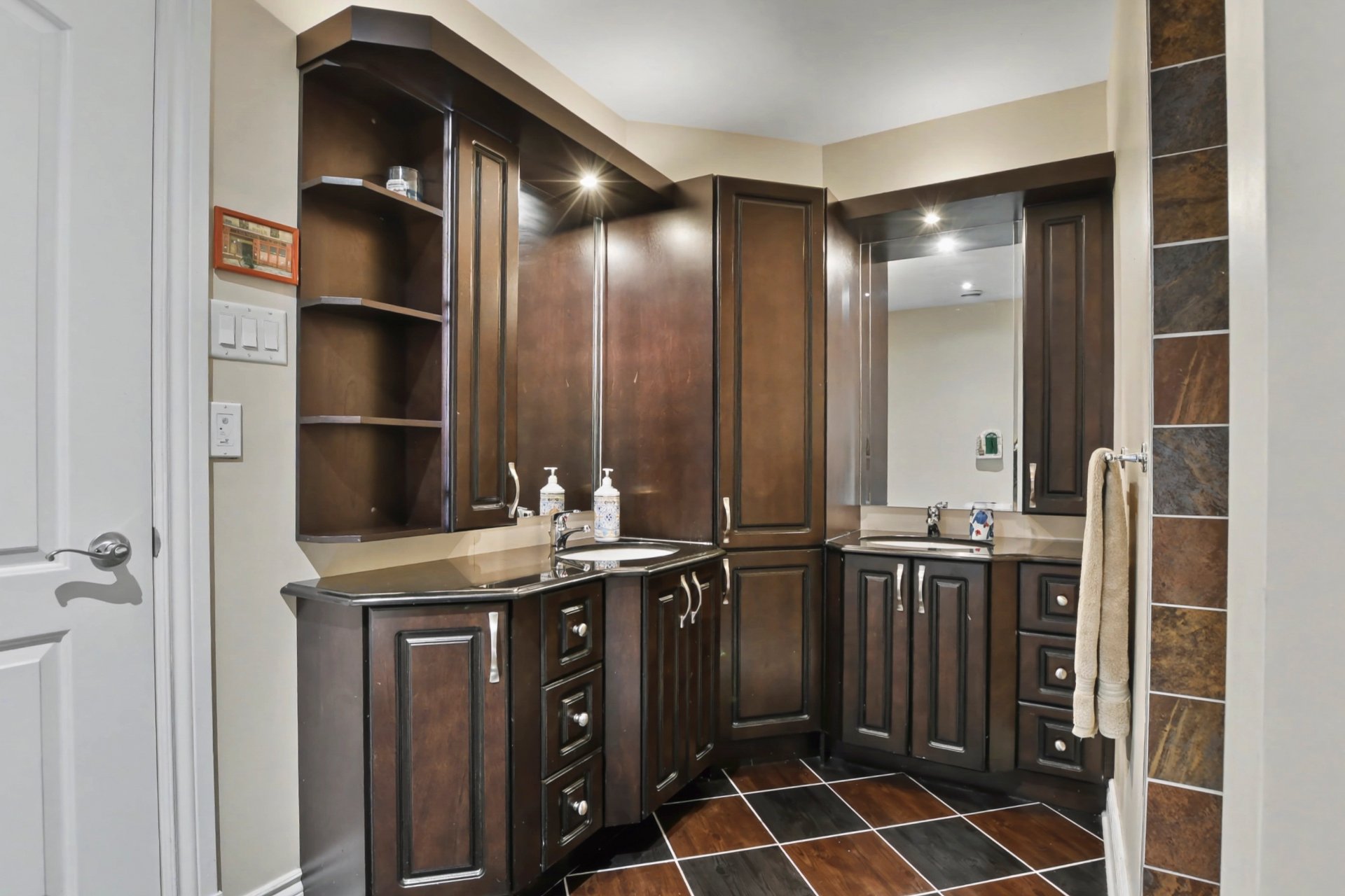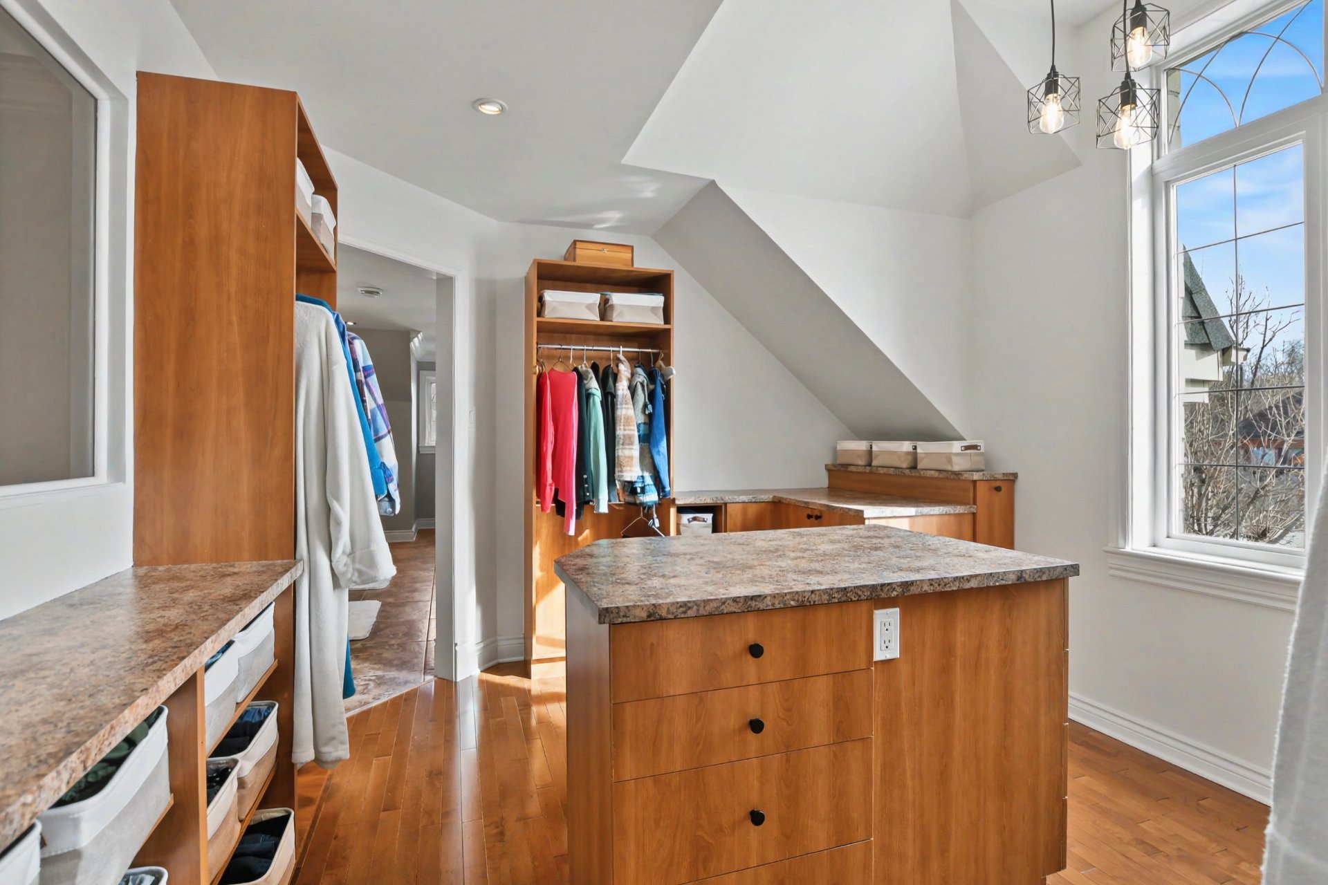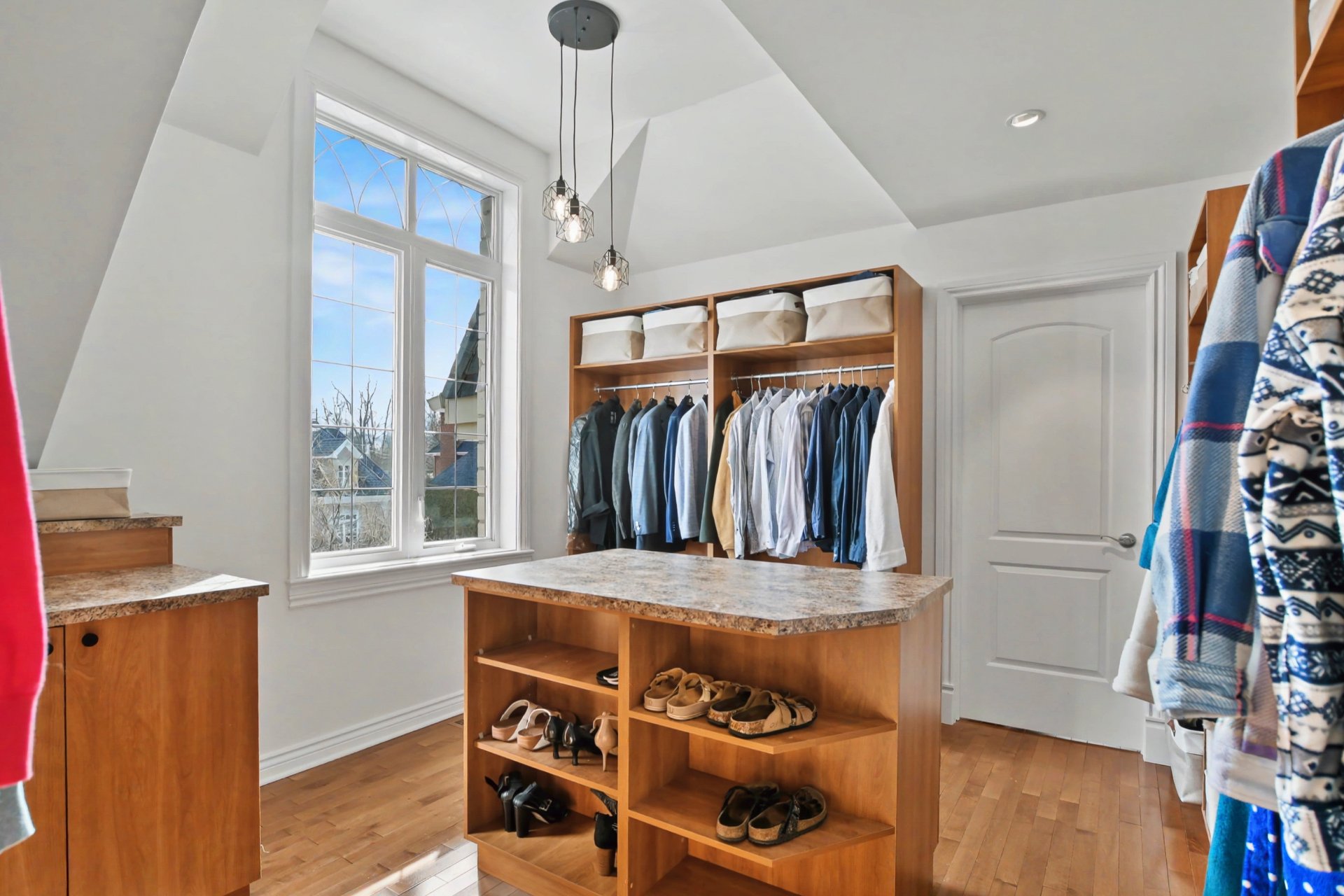 This elegant residence with full masonry on all four sides offers generous living spaces and has been meticulously maintained. The upper level features 4 bedrooms, including the primary suite with an oversized walk-in closet and an ensuite bathroom with heated floors, while two of the other three bedrooms also offer large walk-in closets, in addition to a second full bathroom.