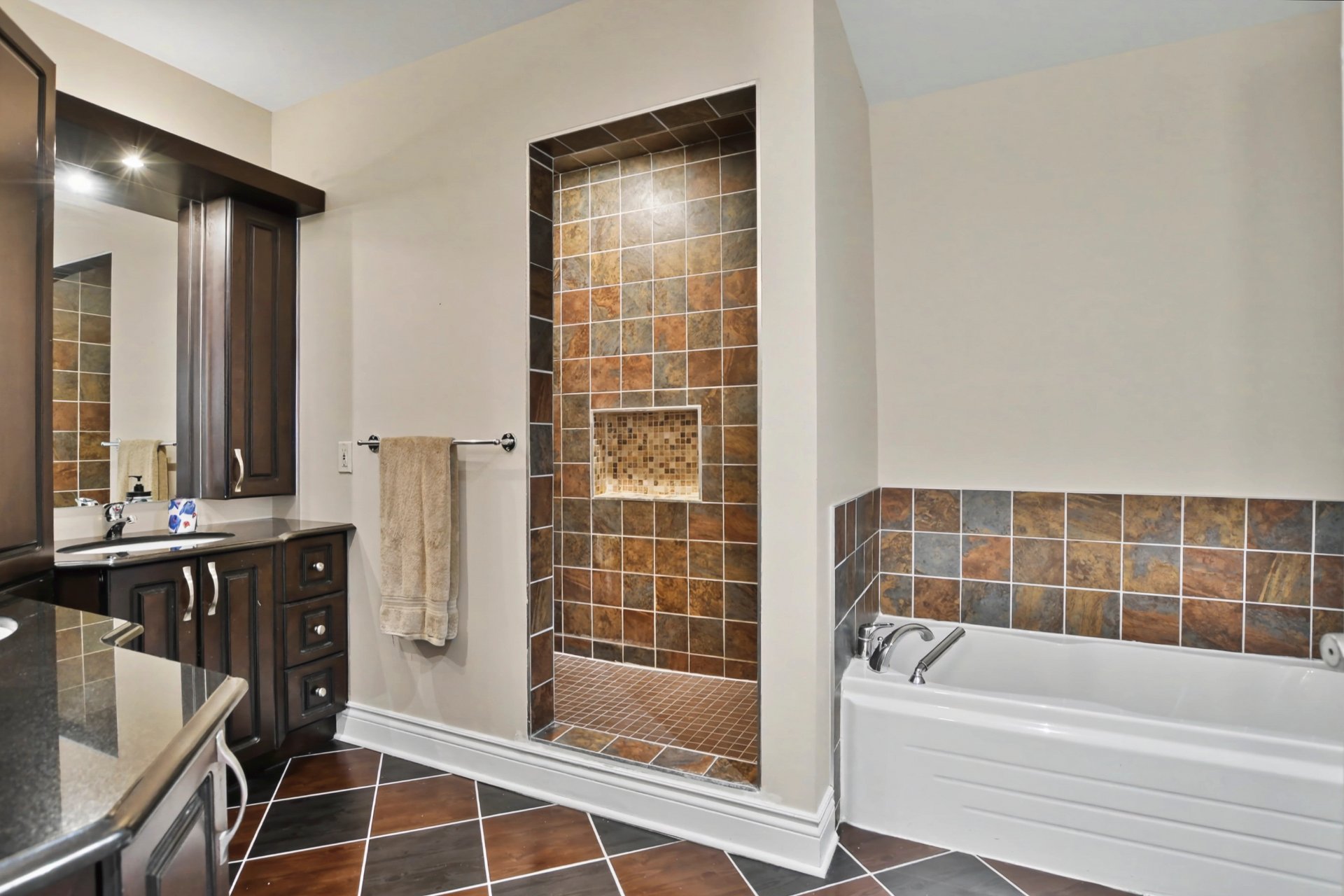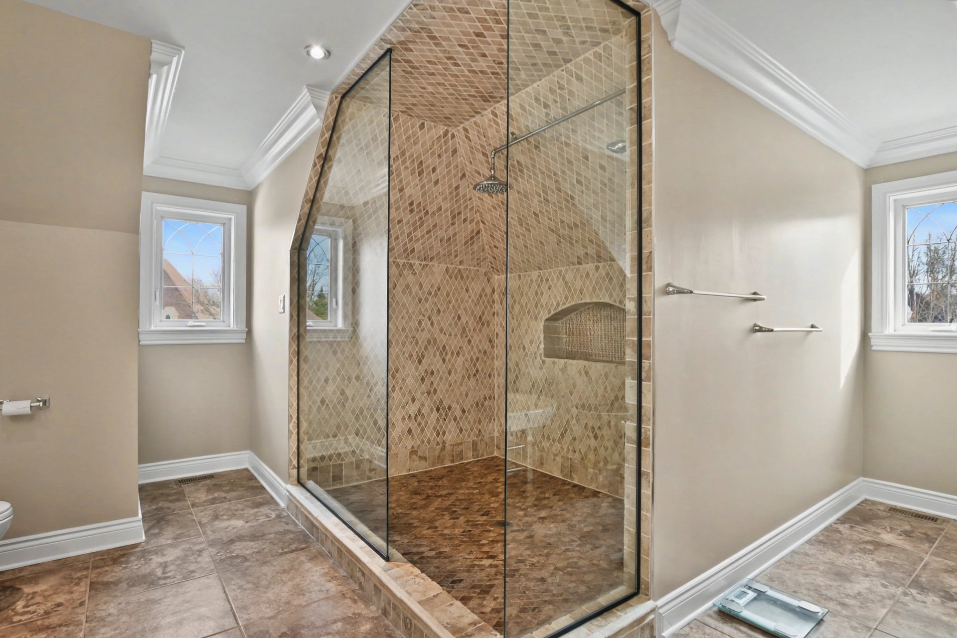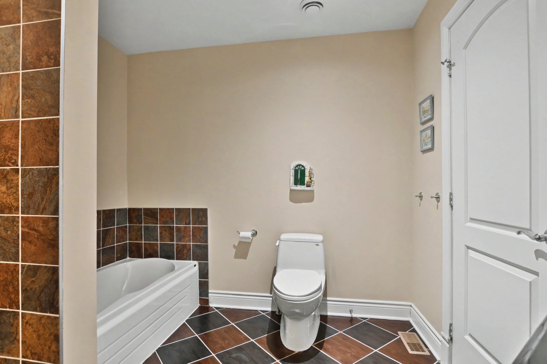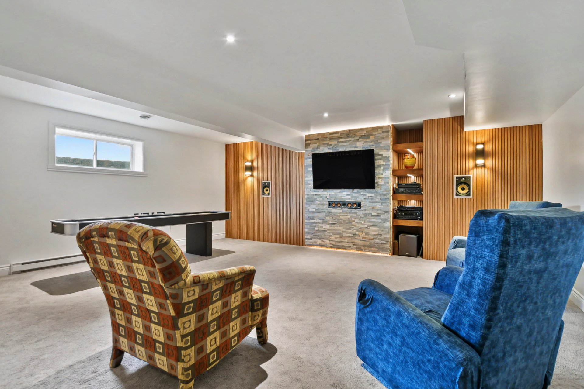 This elegant residence with full masonry on all four sides offers generous living spaces and has been meticulously maintained. The upper level features 4 bedrooms, including the primary suite with an oversized walk-in closet and an ensuite bathroom with heated floors, while two of the other three bedrooms also offer large walk-in closets, in addition to a second full bathroom.