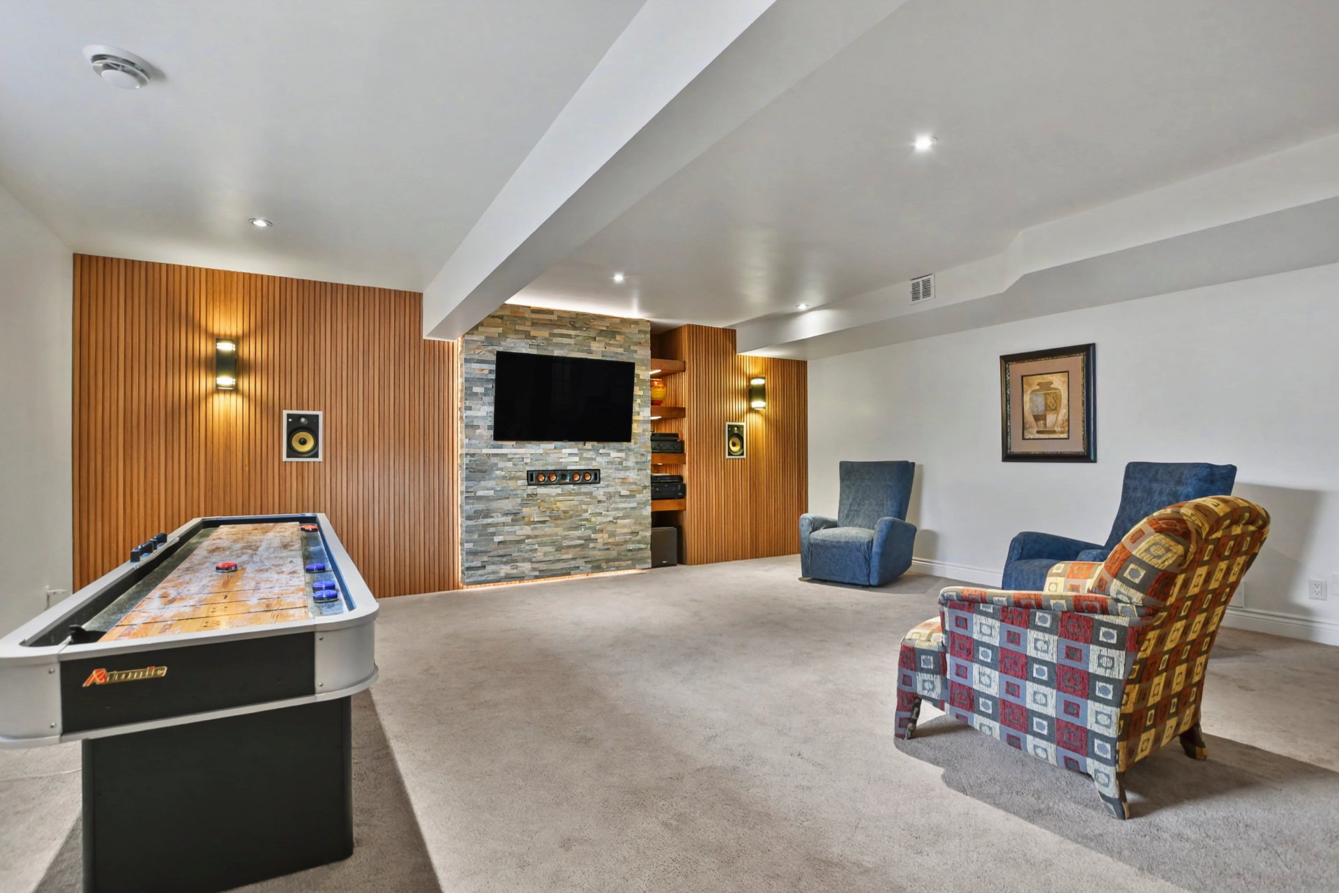 The basement includes an additional bedroom, a large family room, and an office space that could easily serve as a 6th bedroom and a bathroom.