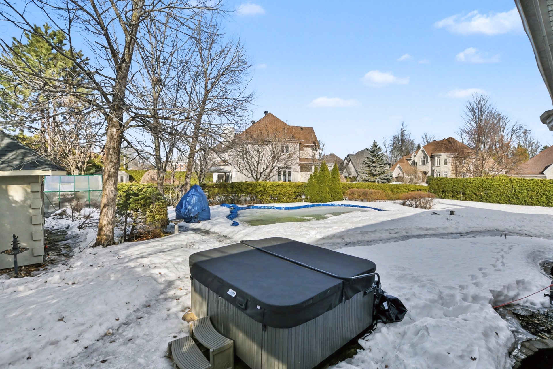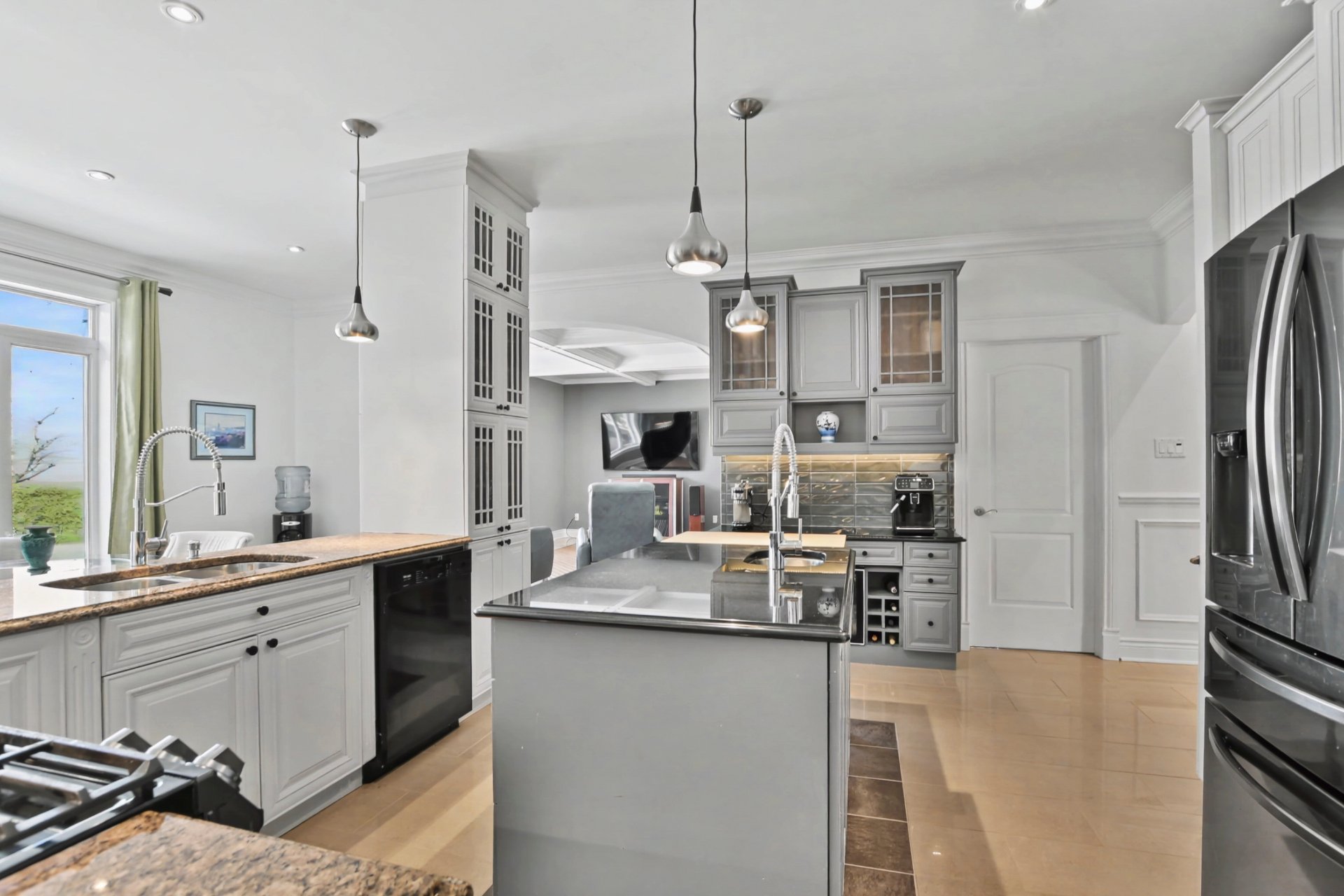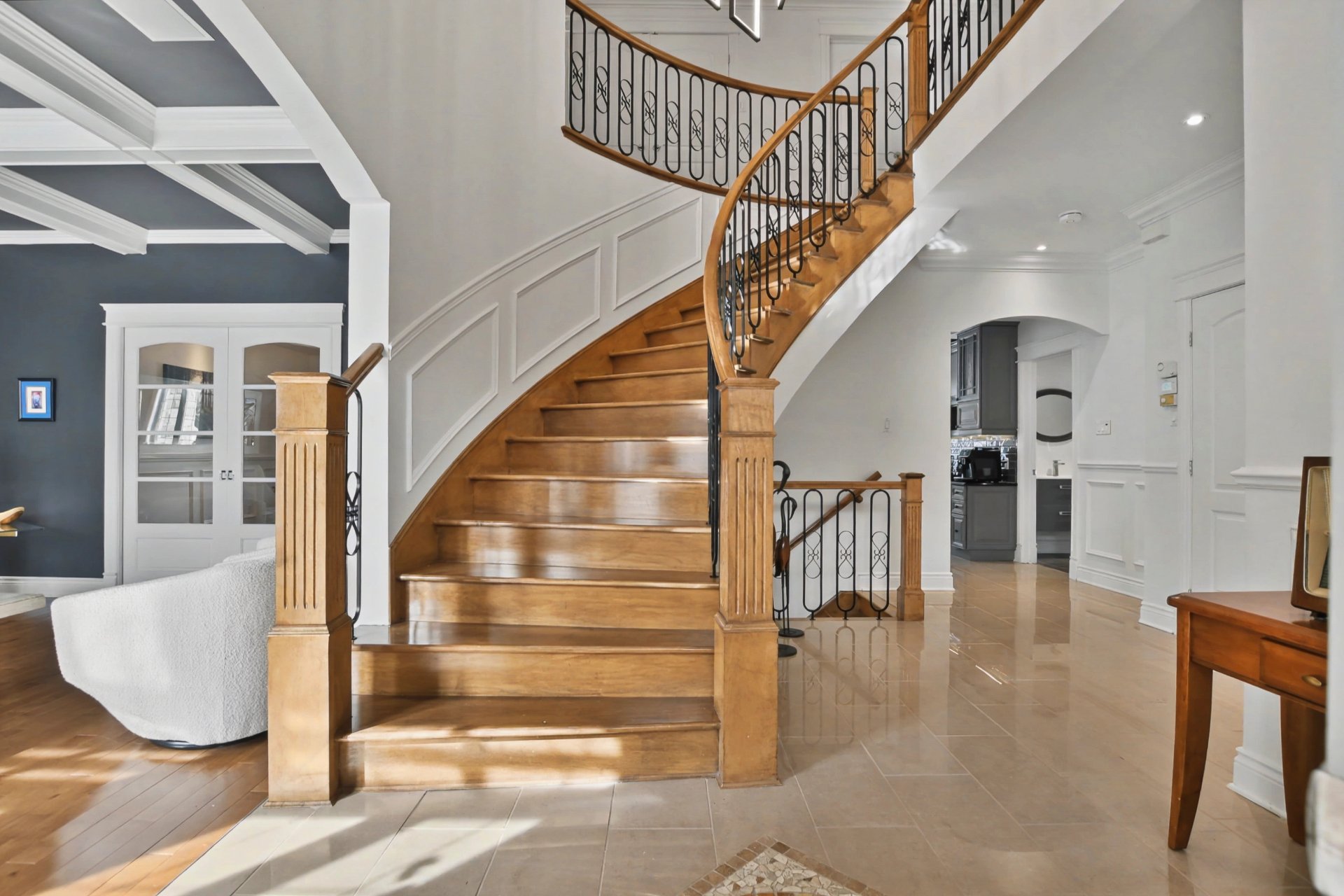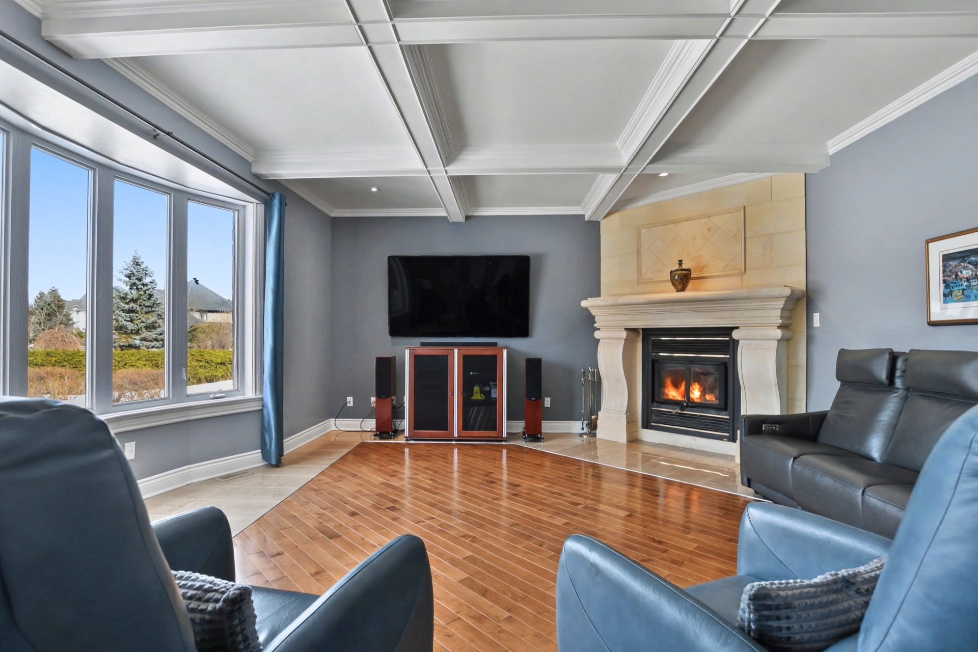 Prestige, elegance and space in the sought-after Fontainebleau sector. Magnificent four-sided masonry residence located at 36 rue de Rochebonne in Blainville. Featuring 4 bedrooms on the upper level, including a primary suite with a large walk-in closet. Bright living spaces with coffered ceilings, wood-burning fireplace and a majestic curved staircase. Kitchen with wood cabinetry and granite countertops. Landscaped lot of over 14,000 sq. ft. with saltwater heated pool, spa and triple garage.