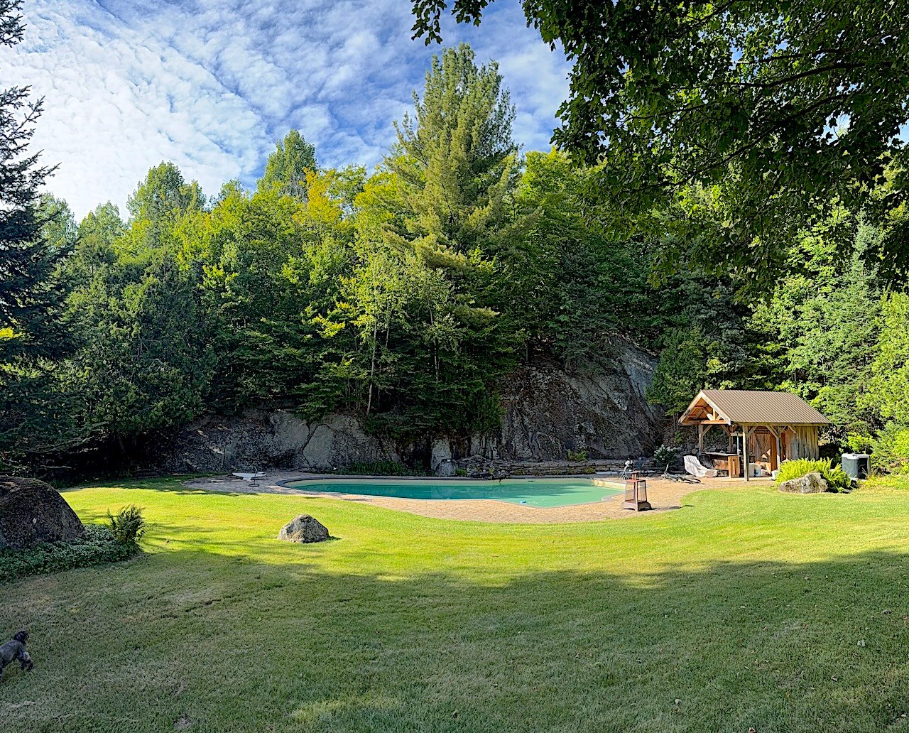 Discover this exceptional residence at the summit of the prestigious Mont-Maribou. Spanning over 169,000 square feet of land, this property offers a peaceful setting in the heart of nature with breathtaking panoramic views. You will find a beautifully designed in-ground pool backed by a rock wall, as well as a meticulously arranged pavilion and terrace, including an outdoor kitchen perfect for your gatherings. This expansive home, meticulously maintained, features 5 bedrooms, 3 bathrooms, a spa area, a large glass wine cellar, and a cinema room. An immense quadruple garage completes this unique estate.