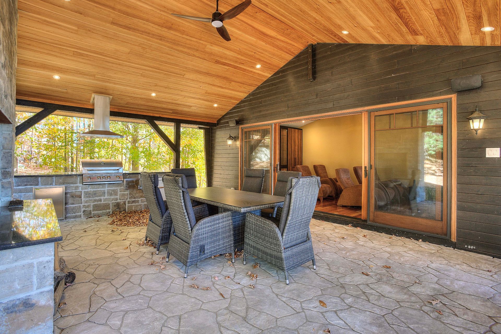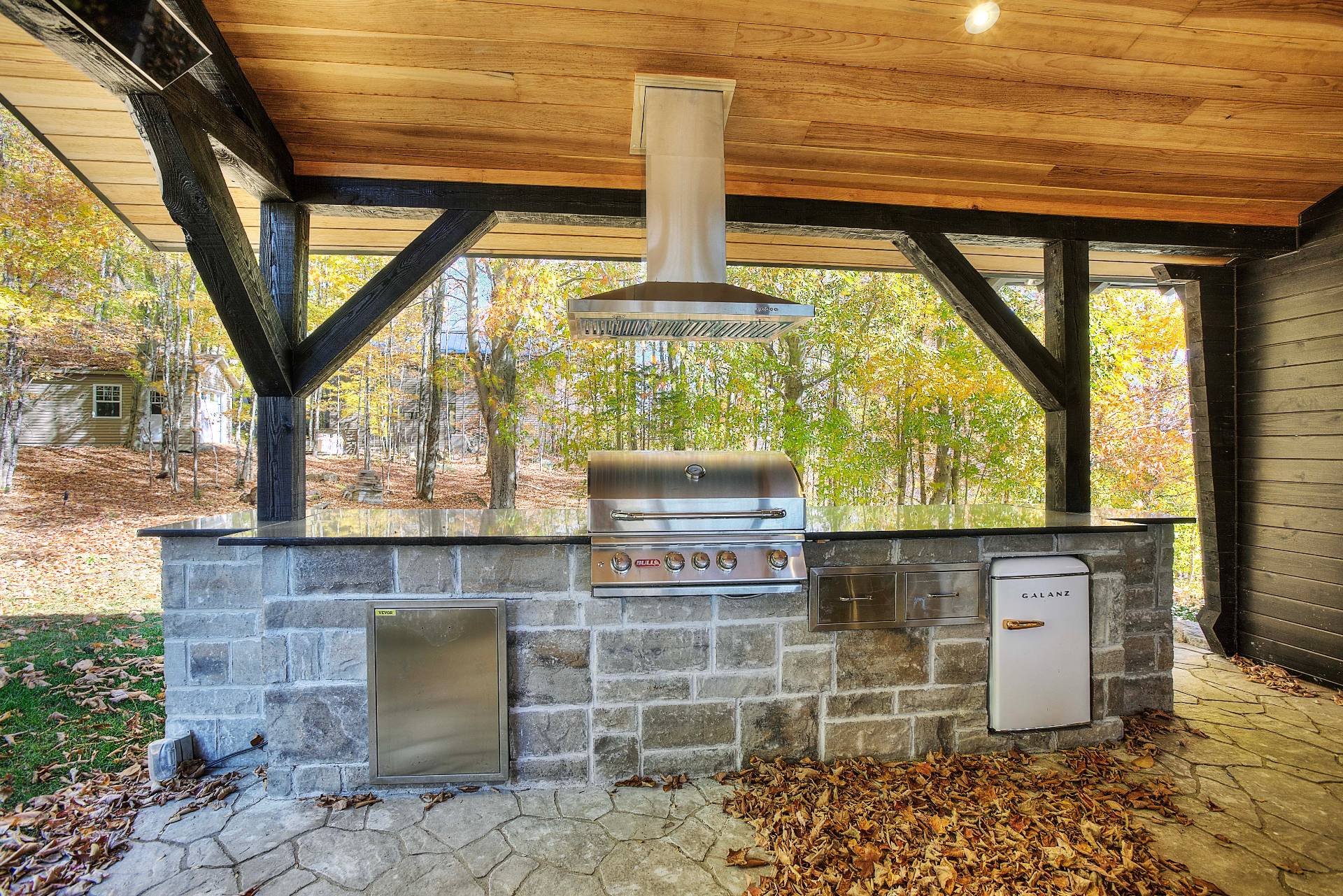 - Addition of the back terrace including an outdoor kitchen with BBQ and fireplace