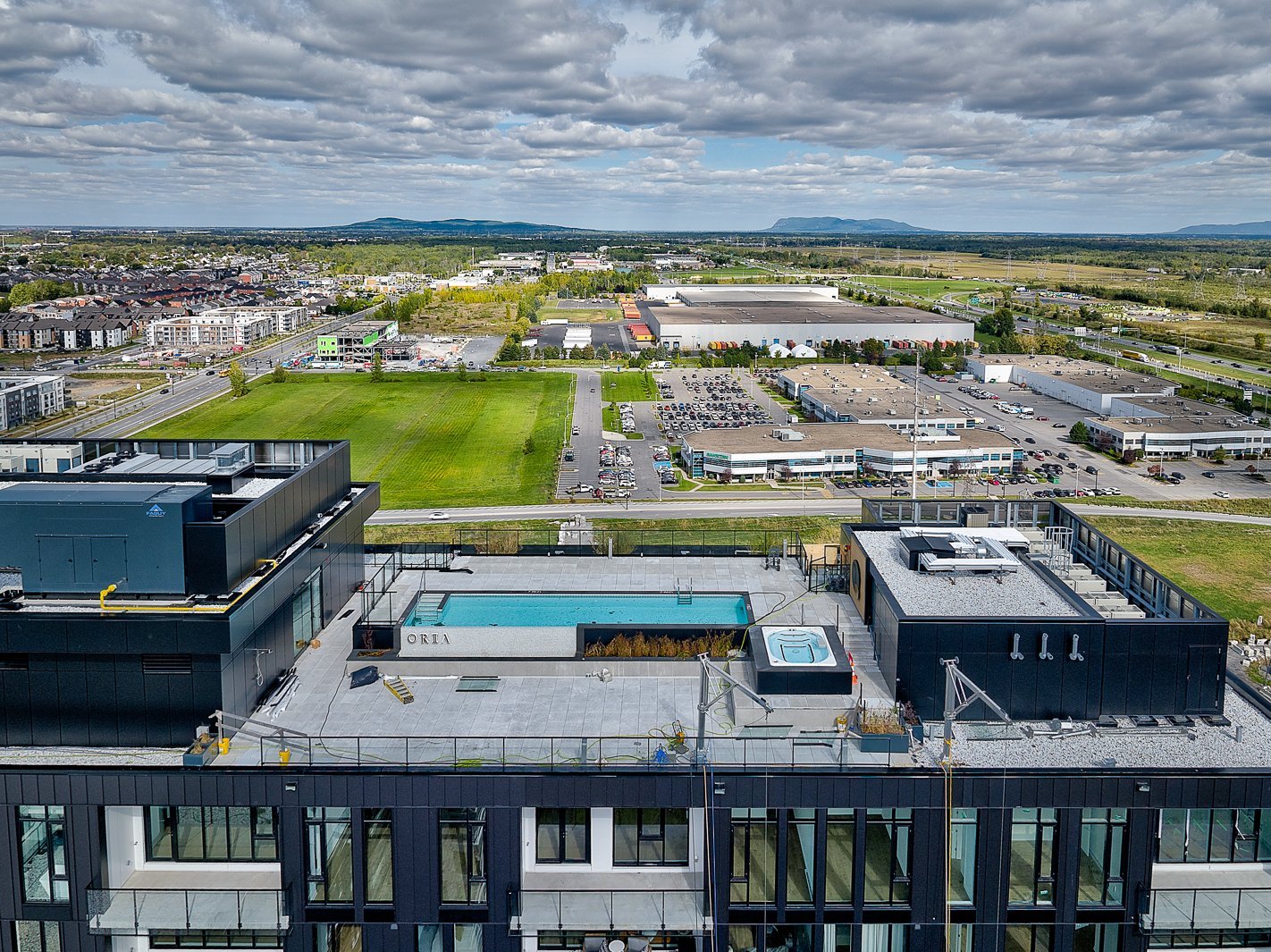 Modern 2-bedroom condo with indoor parking and electric charging station, located in the prestigious Oria 2 project in Brossard, at the heart of Solar Uniquartier. Bright corner unit offering an open-concept living space, large windows, high ceilings, and high-end finishes. Contemporary kitchen with quartz countertops and backsplash, and an elegant bathroom. Private 31-foot balcony and storage space included. Just steps from the REM, services, shops, and Quartier DIX30. Sought-after location with a practical and urban lifestyle.