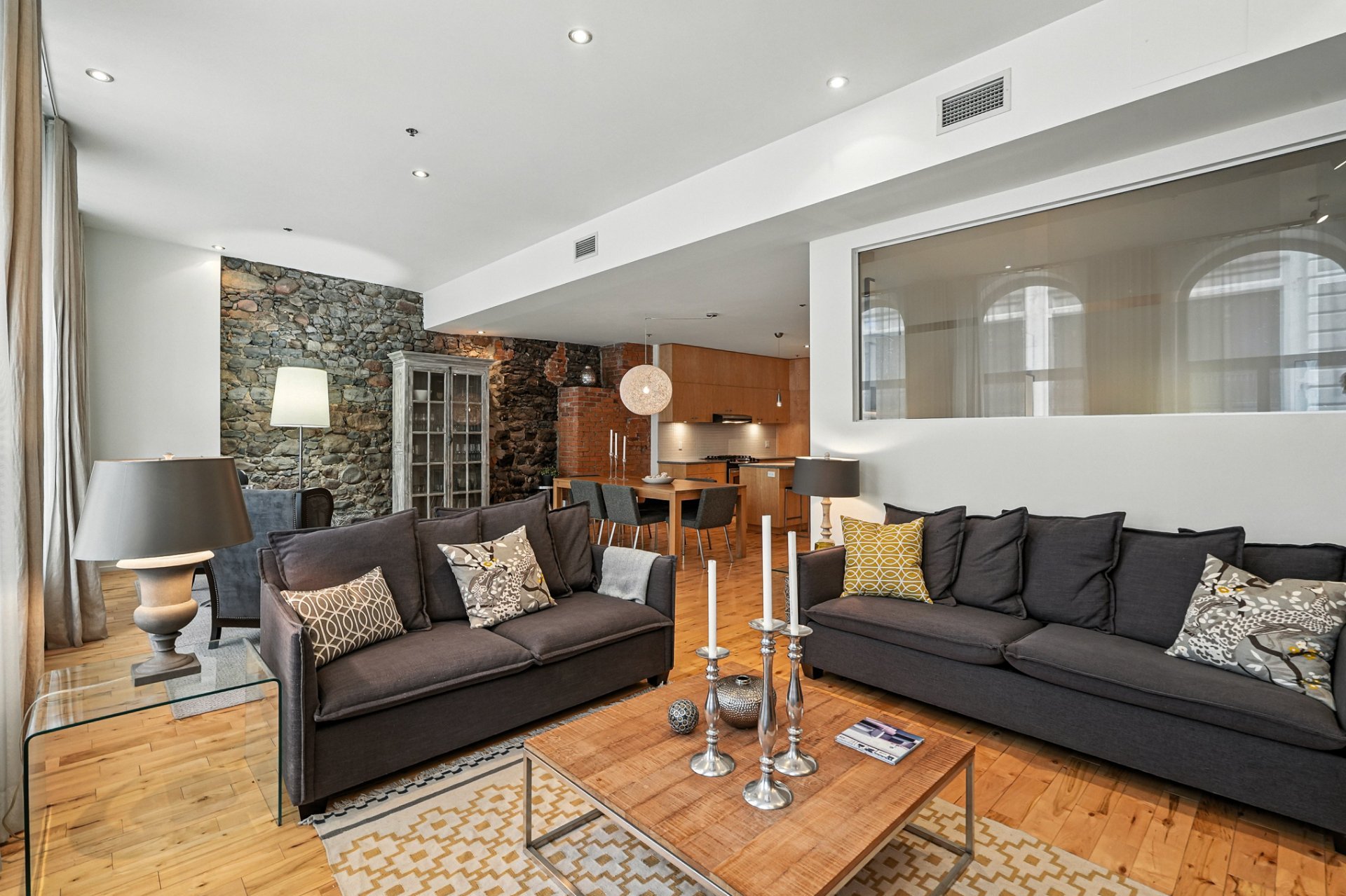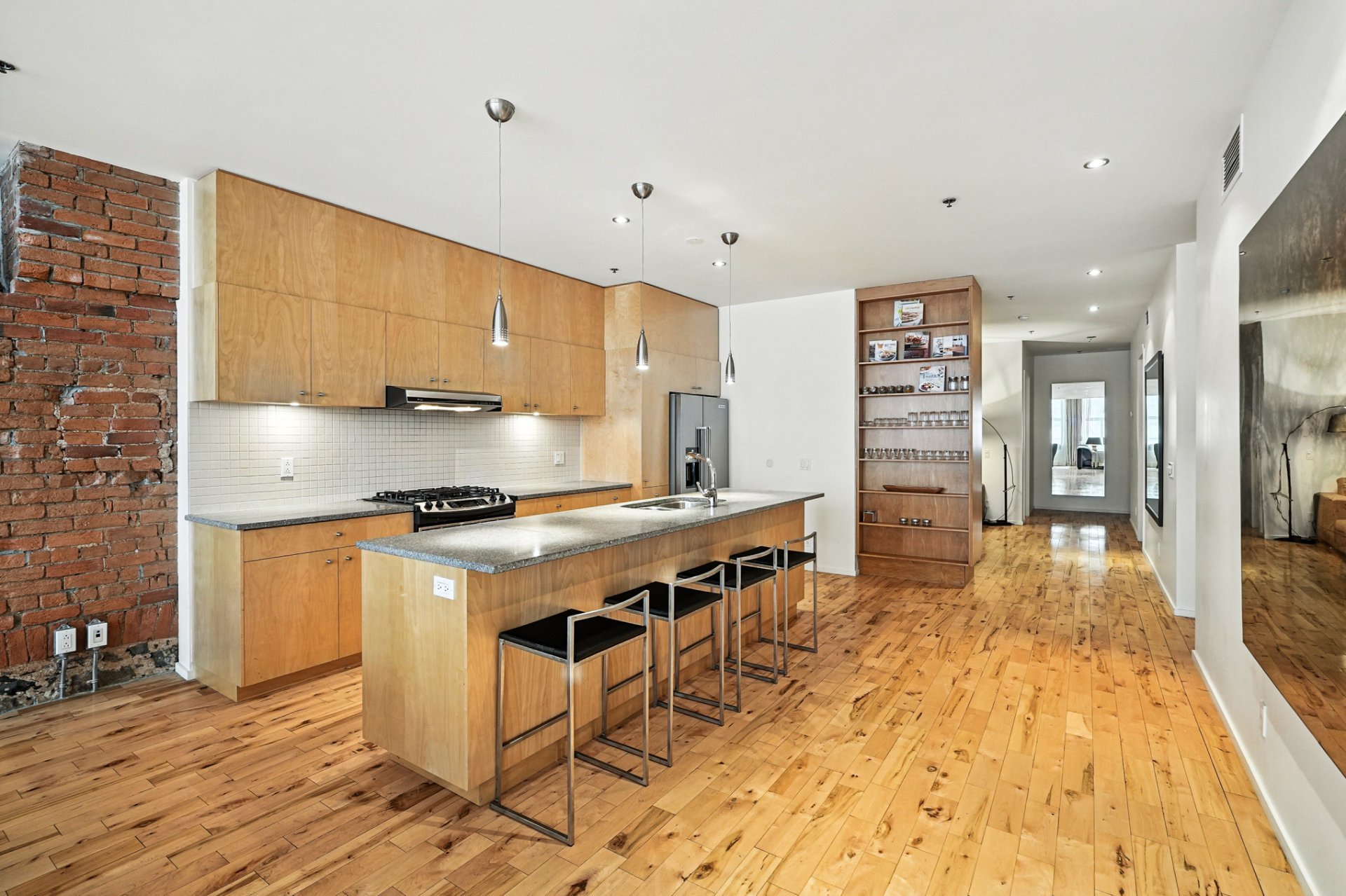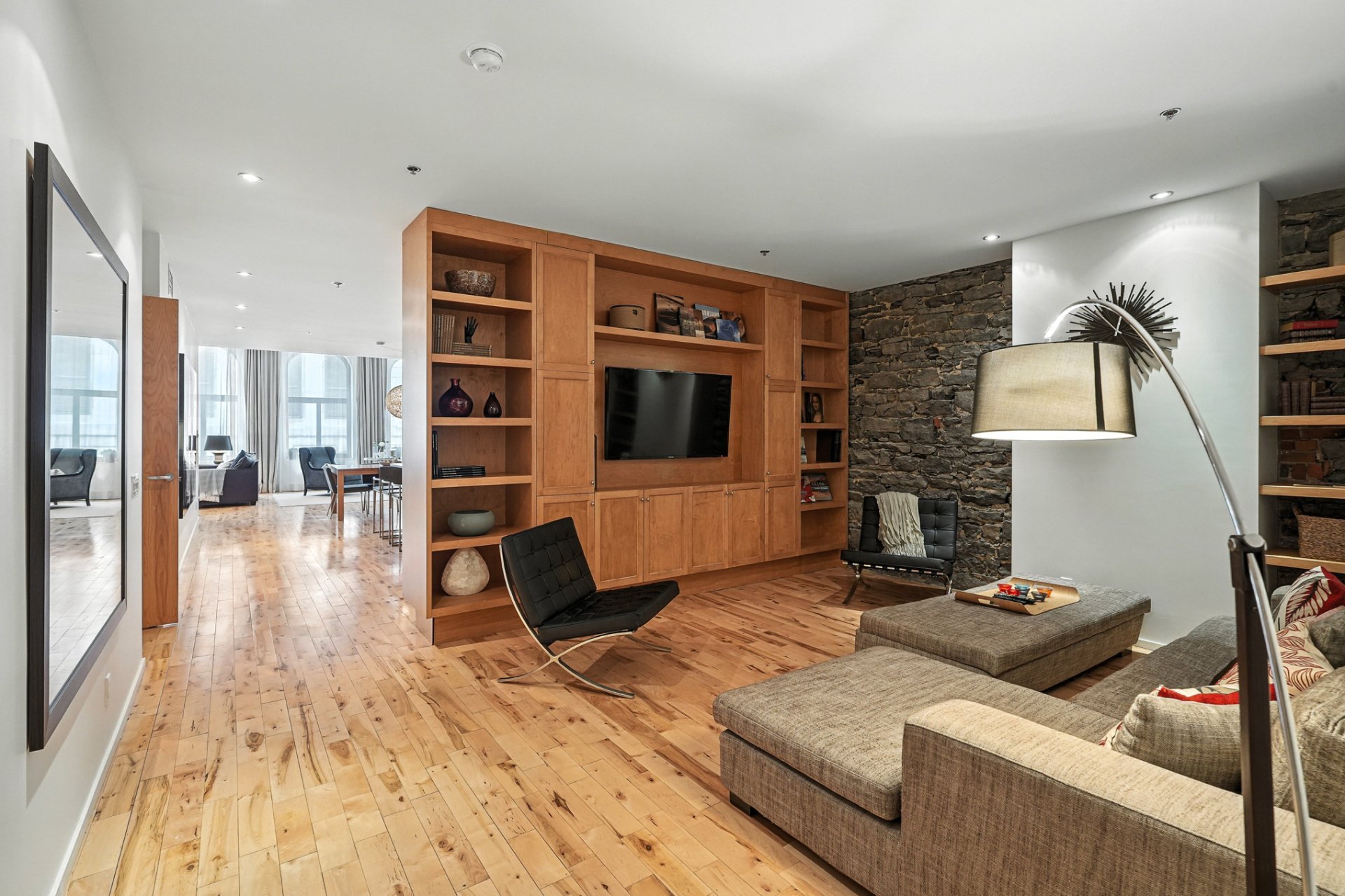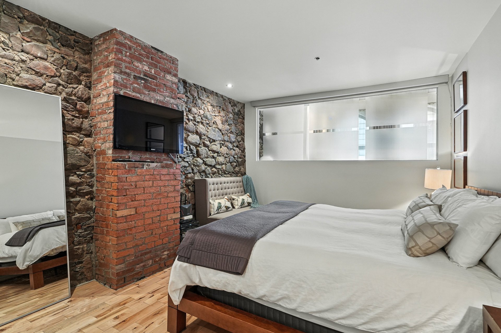 Discover this exceptional condo in the prestigious Cité du Nouveau Monde, blending historic charm with modern elegance. High ceilings, exposed stone and brick walls, and expansive arched windows that flood the interior with natural light. The open-concept layout includes the kitchen with a huge island flowing into the dining and living areas, ideal for both everyday living and entertaining. A spacious den offers a perfect place to unwind, while a gas fireplace adds cozy warmth. Ample storage ensures easy organization. Located in the heart of Old Montreal, this rare gem offers luxury, tranquility, and proximity to fine dining and shopping.