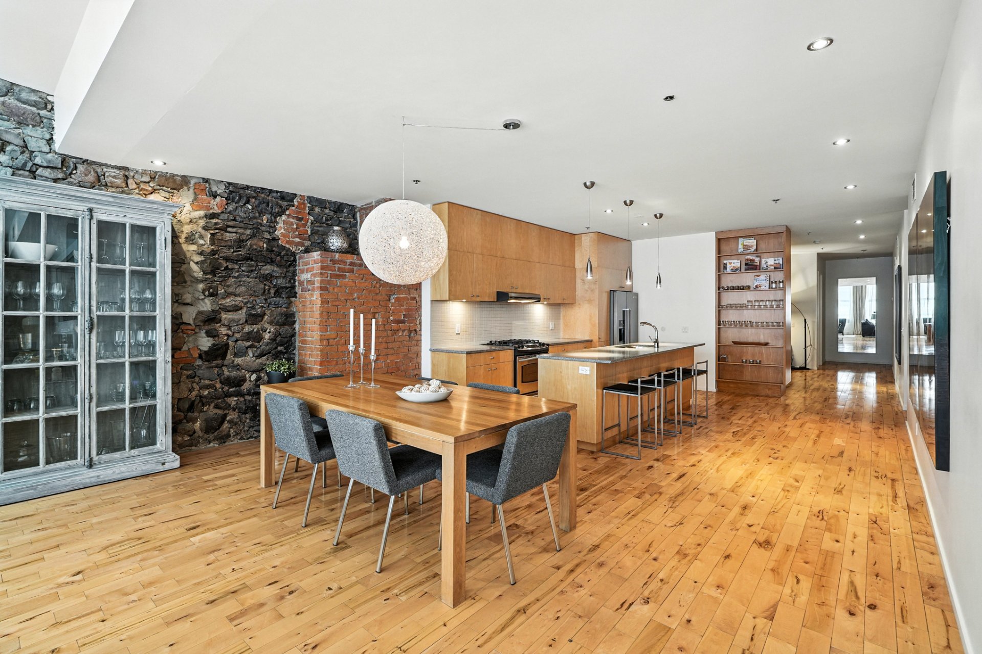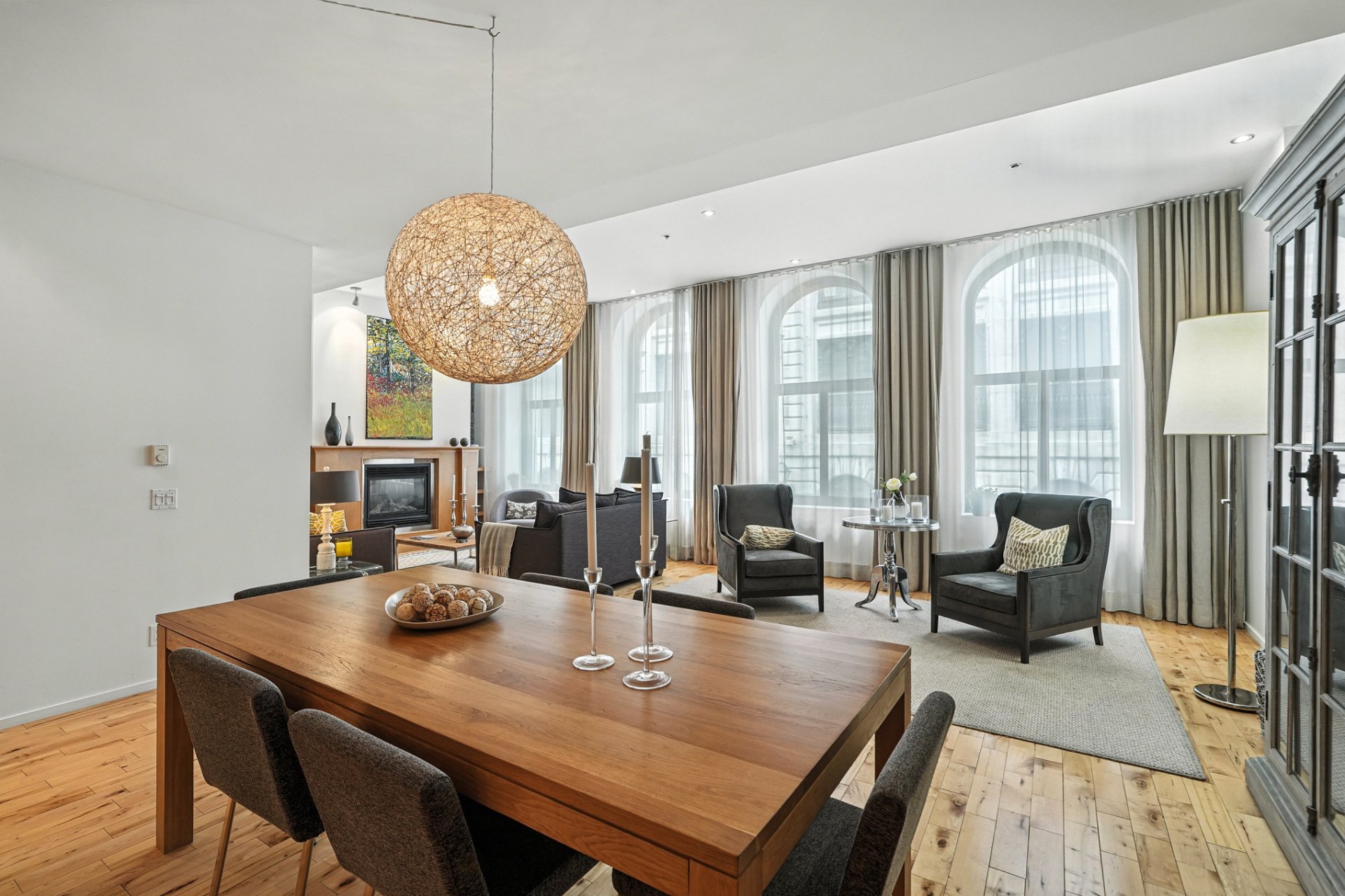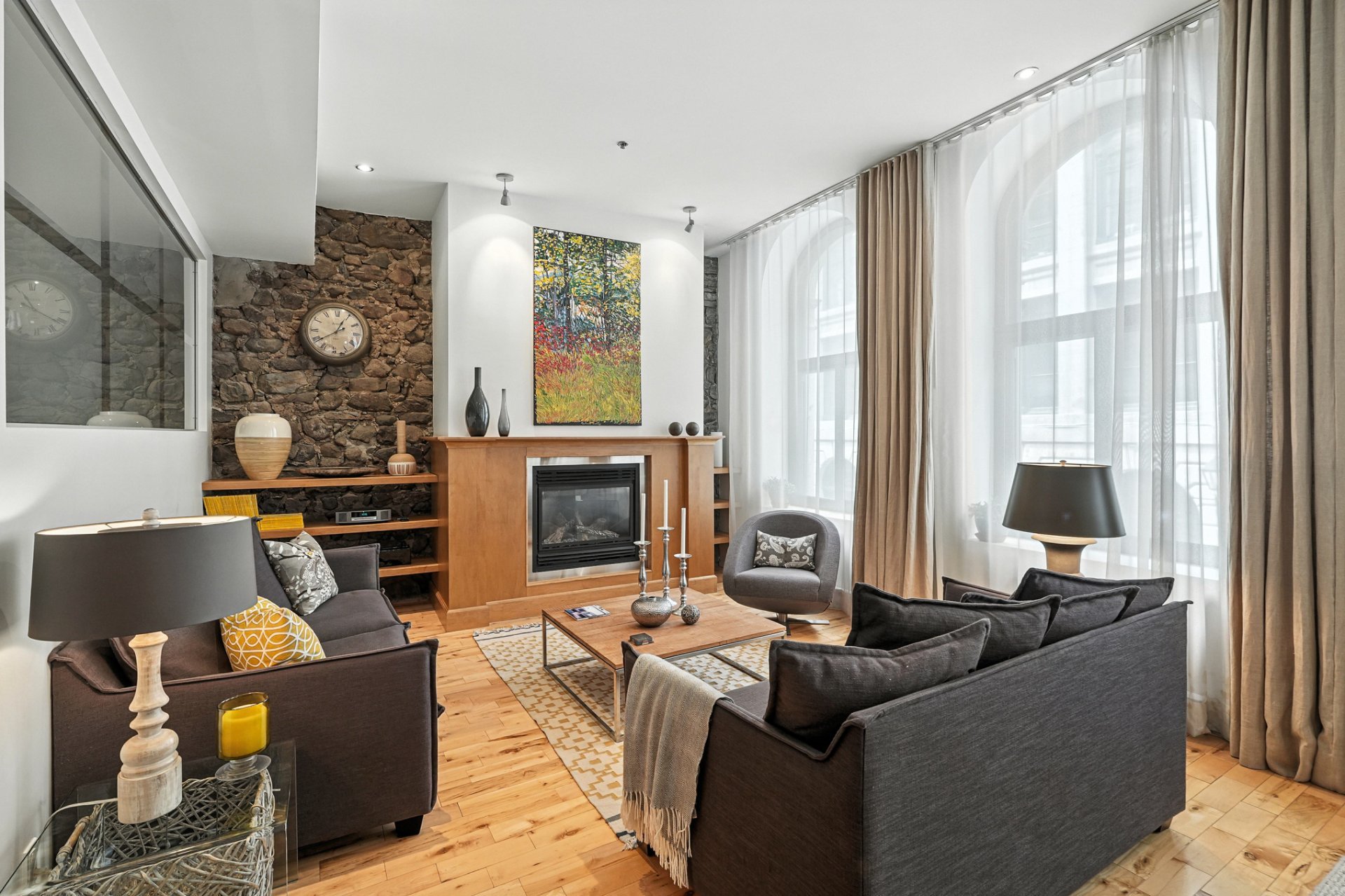 Discover this exceptional condo in the prestigious Cité du Nouveau Monde, blending historic charm with modern elegance. High ceilings, exposed stone and brick walls, and expansive arched windows that flood the interior with natural light. The open-concept layout includes the kitchen with a huge island flowing into the dining and living areas, ideal for both everyday living and entertaining. A spacious den offers a perfect place to unwind, while a gas fireplace adds cozy warmth. Ample storage ensures easy organization. Located in the heart of Old Montreal, this rare gem offers luxury, tranquility, and proximity to fine dining and shopping.