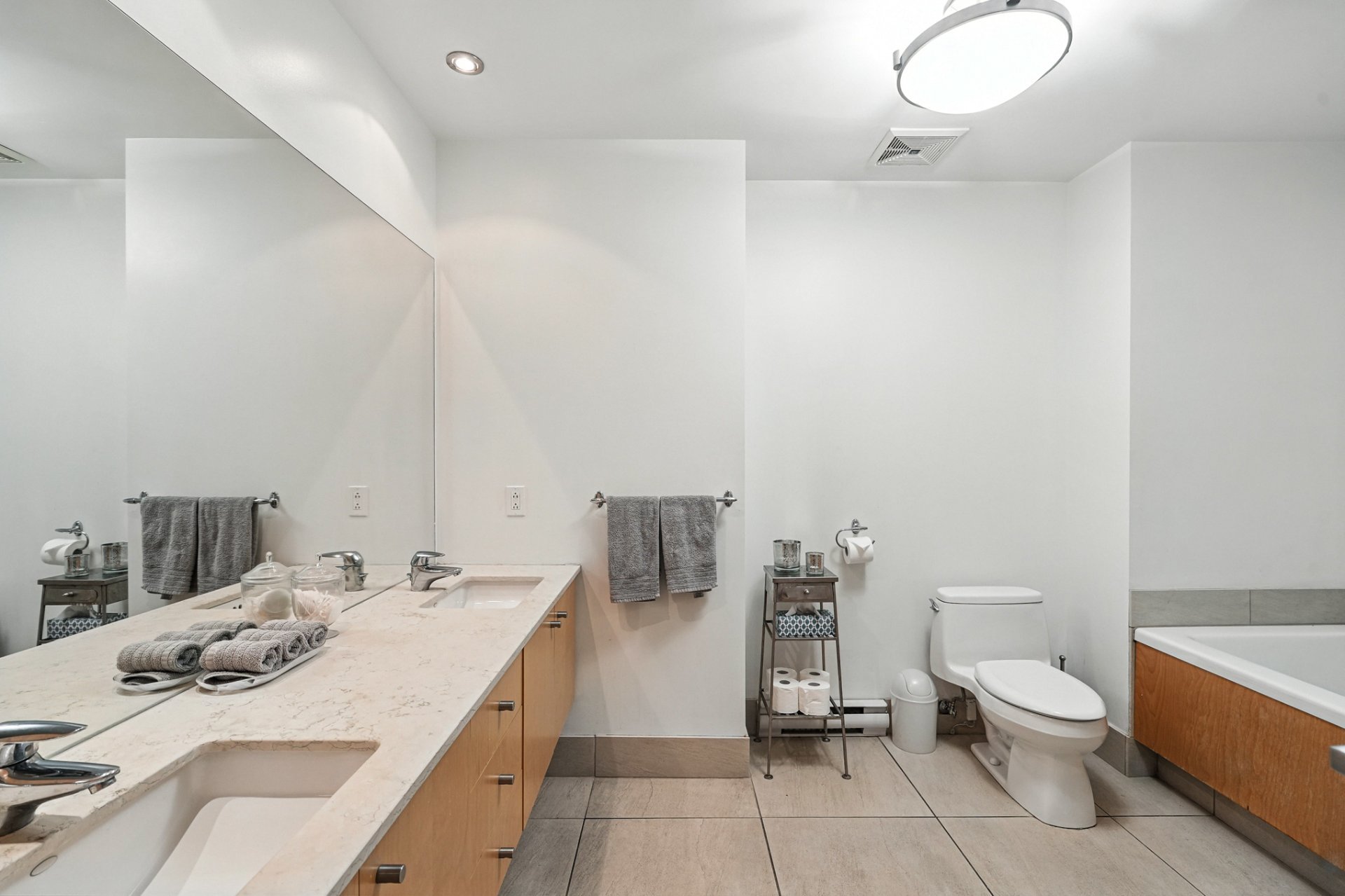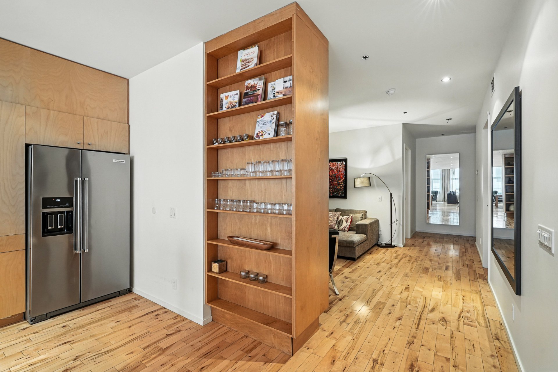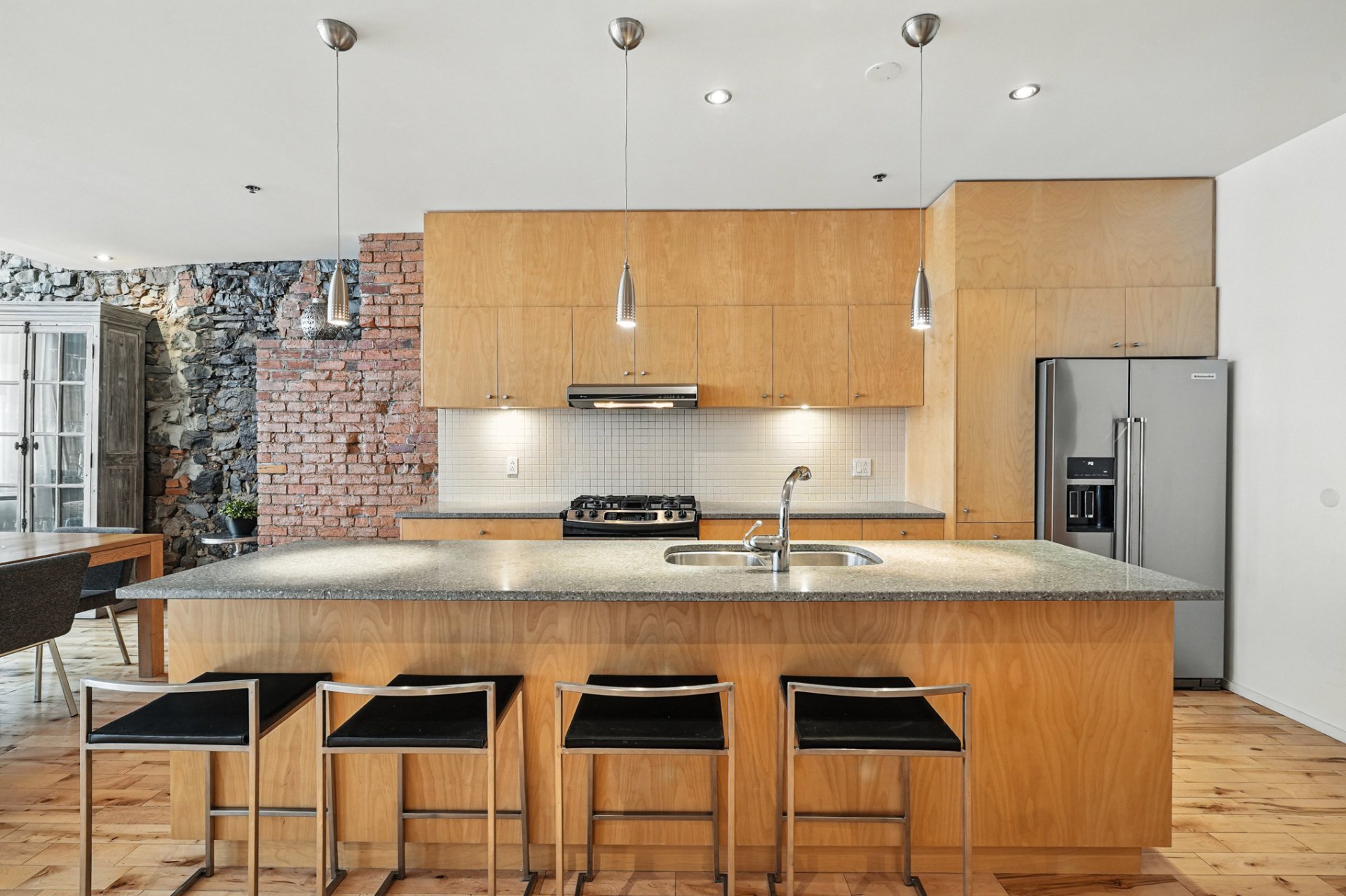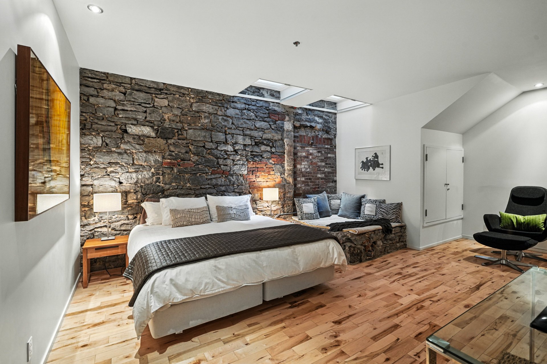 Discover this exceptional condo in the prestigious Cité du Nouveau Monde, blending historic charm with modern elegance. High ceilings, exposed stone and brick walls, and expansive arched windows that flood the interior with natural light. The open-concept layout includes the kitchen with a huge island flowing into the dining and living areas, ideal for both everyday living and entertaining. A spacious den offers a perfect place to unwind, while a gas fireplace adds cozy warmth. Ample storage ensures easy organization. Located in the heart of Old Montreal, this rare gem offers luxury, tranquility, and proximity to fine dining and shopping.