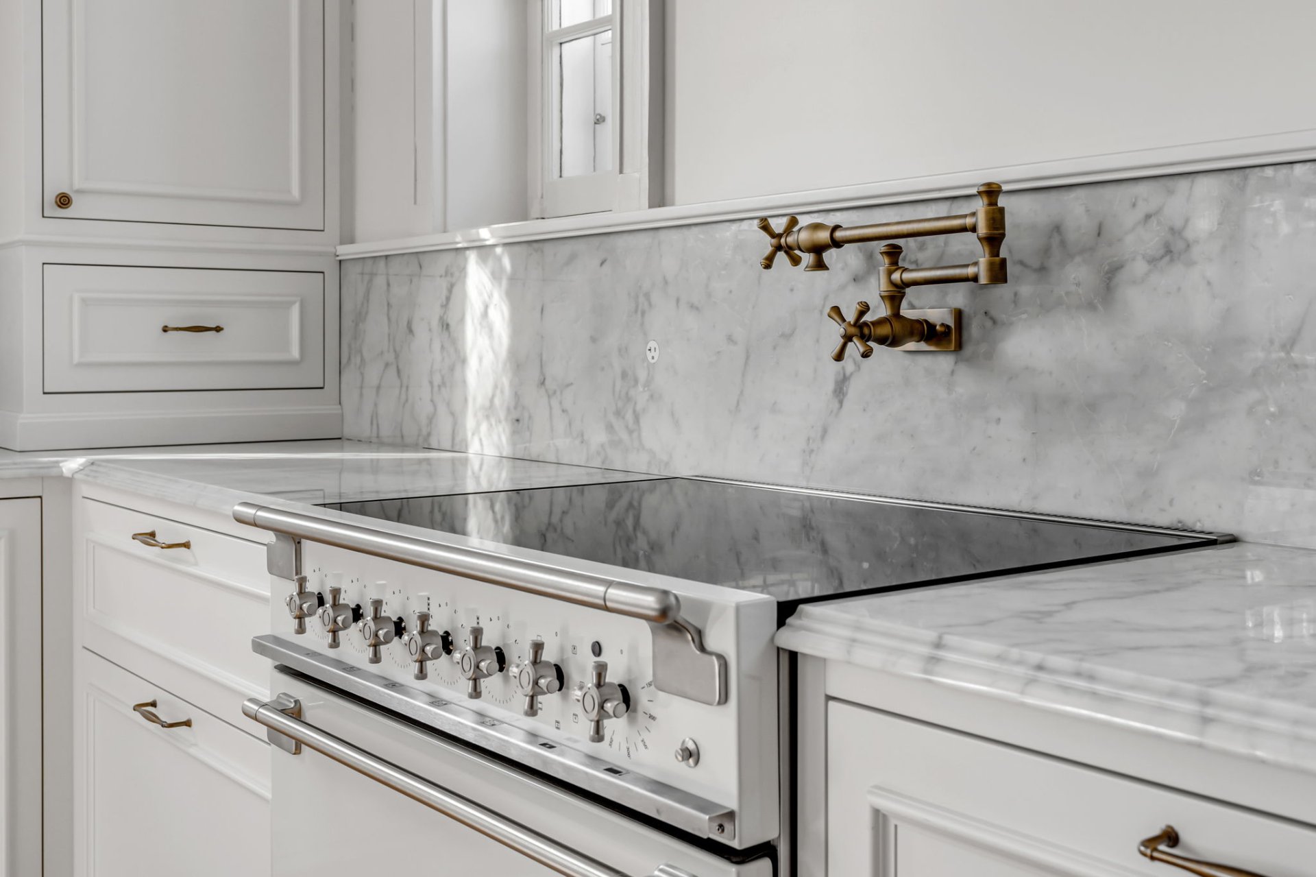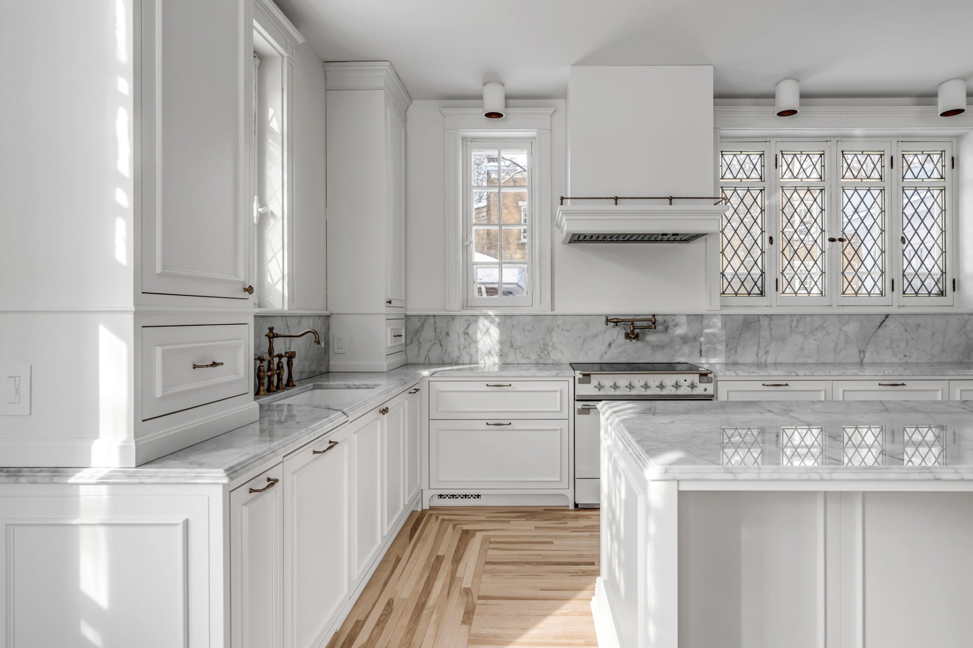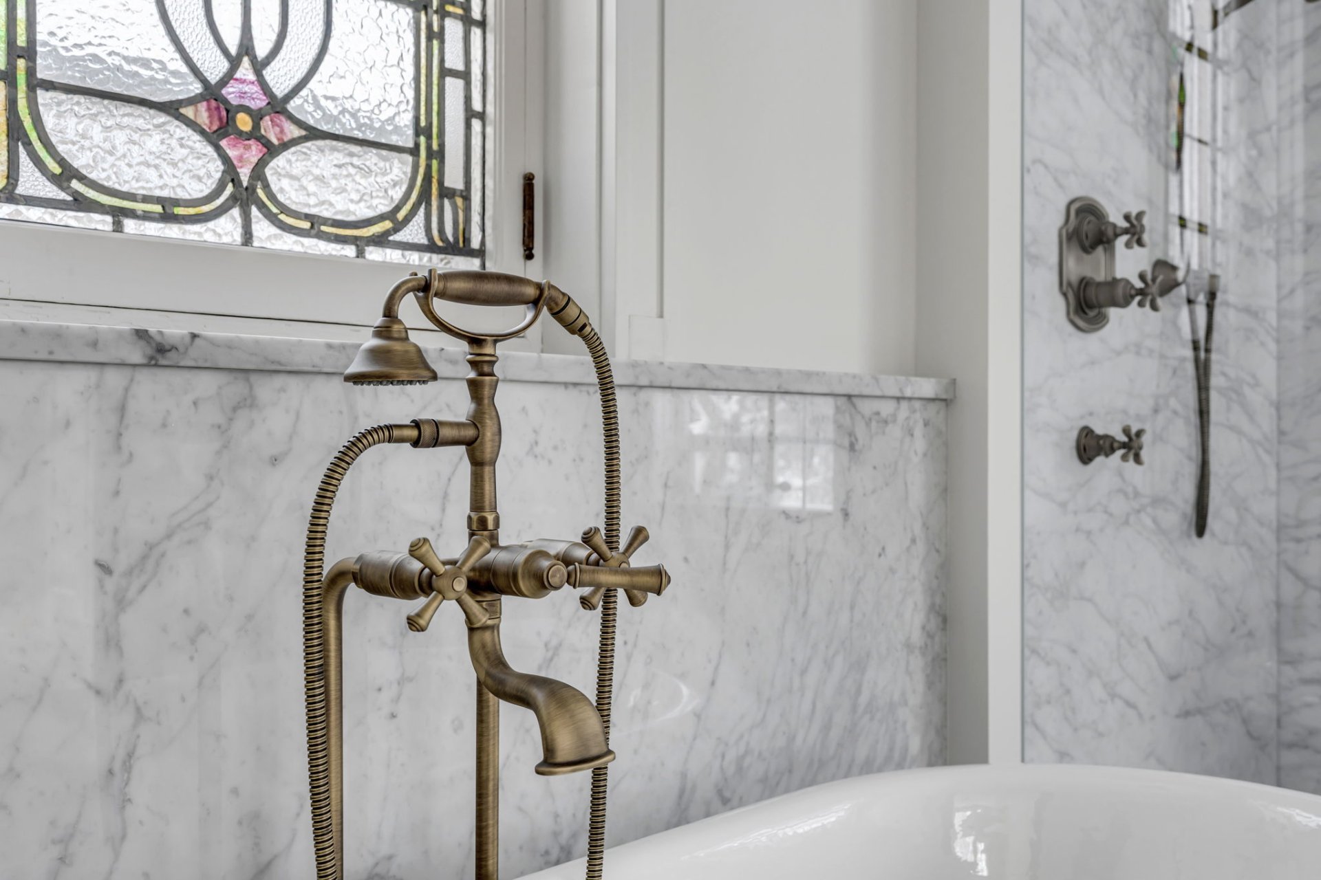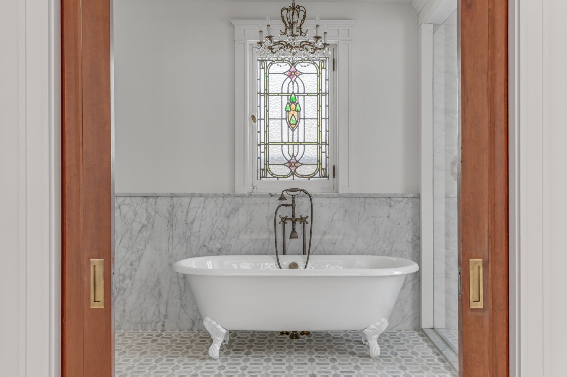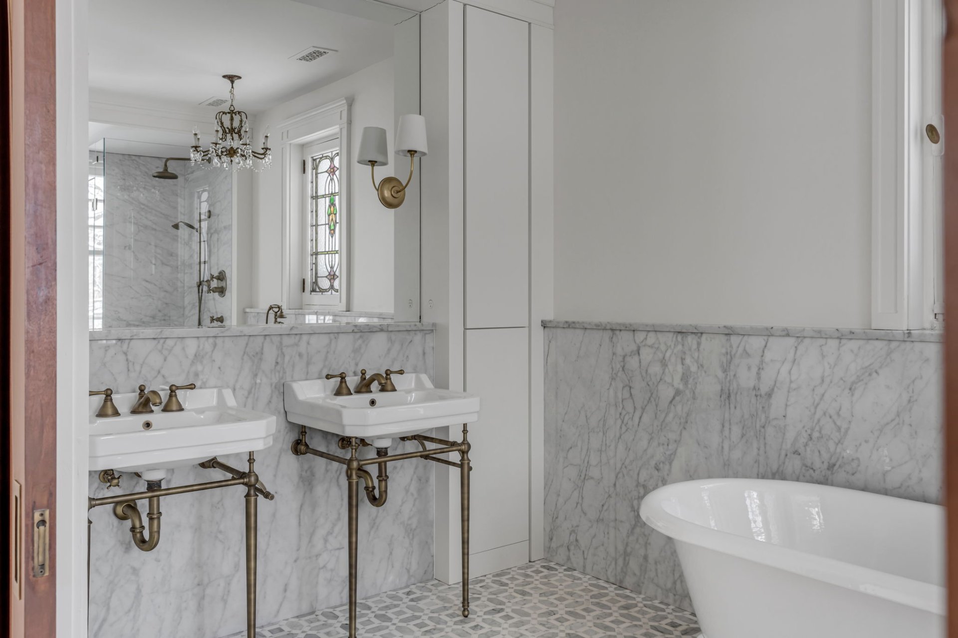 Complete reconstruction of master bathroom (including marble, cast-iron tub and built-in furniture).