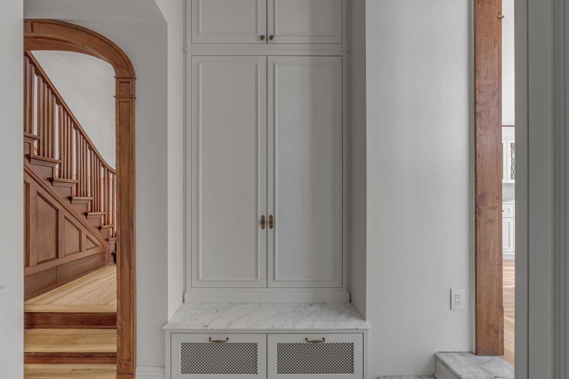 Addition of a mud room with built-in furniture and marble