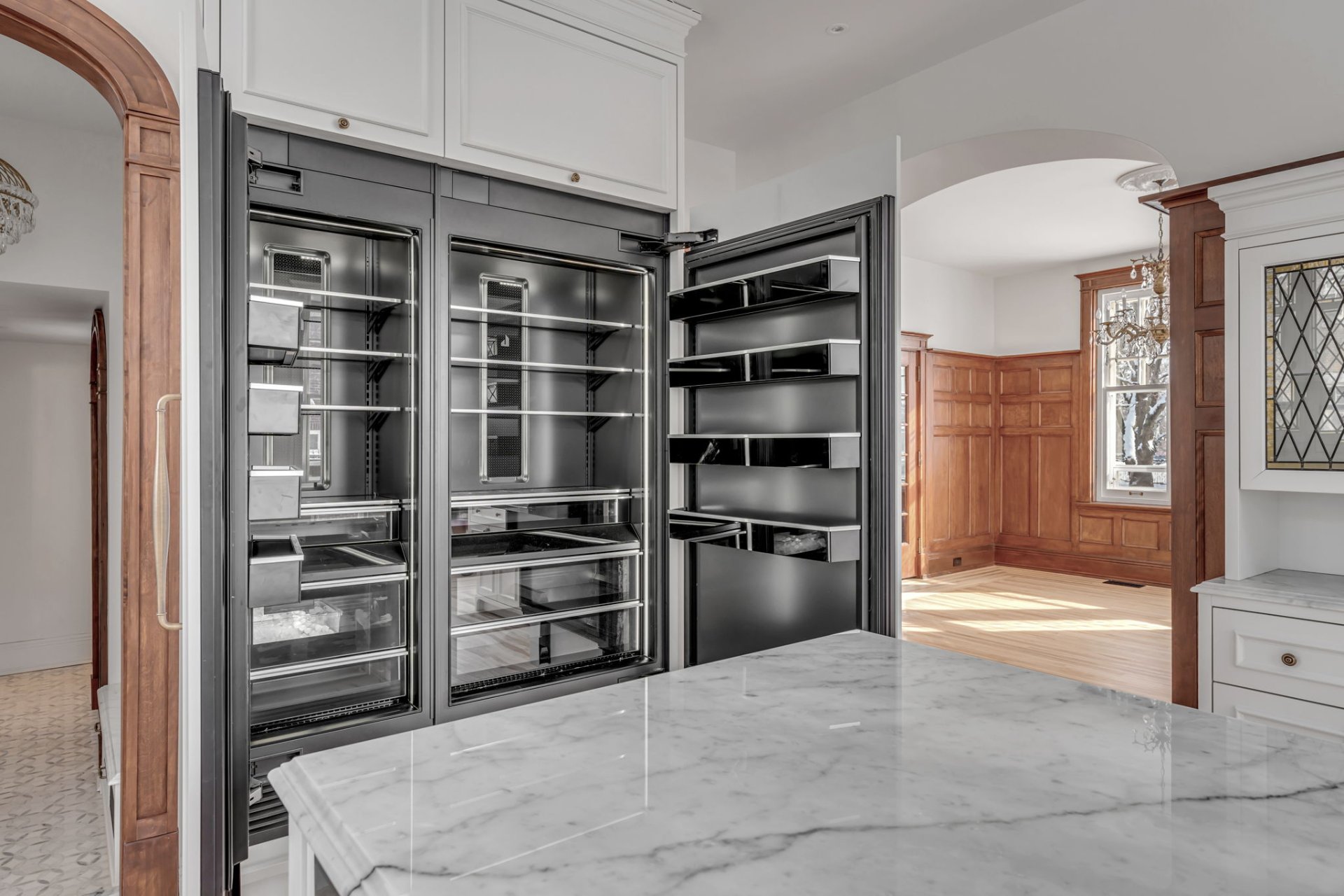 Discover this unique gem in the heart of Grande Allée. Imposing yet discreet, this exceptional century-old property has been lovingly and meticulously restored by ÉRIGE, combining the timeless charm of the Montcalm neighborhood with the highest standards of modern comfort. Its carefully preserved woodwork and windows, majestic high ceilings, abundant light, fully equipped high-end kitchen, and marble floors exude elegance. A place designed to welcome family and guests, offering space, privacy, and a warm atmosphere, while retaining its absolutely unique character.