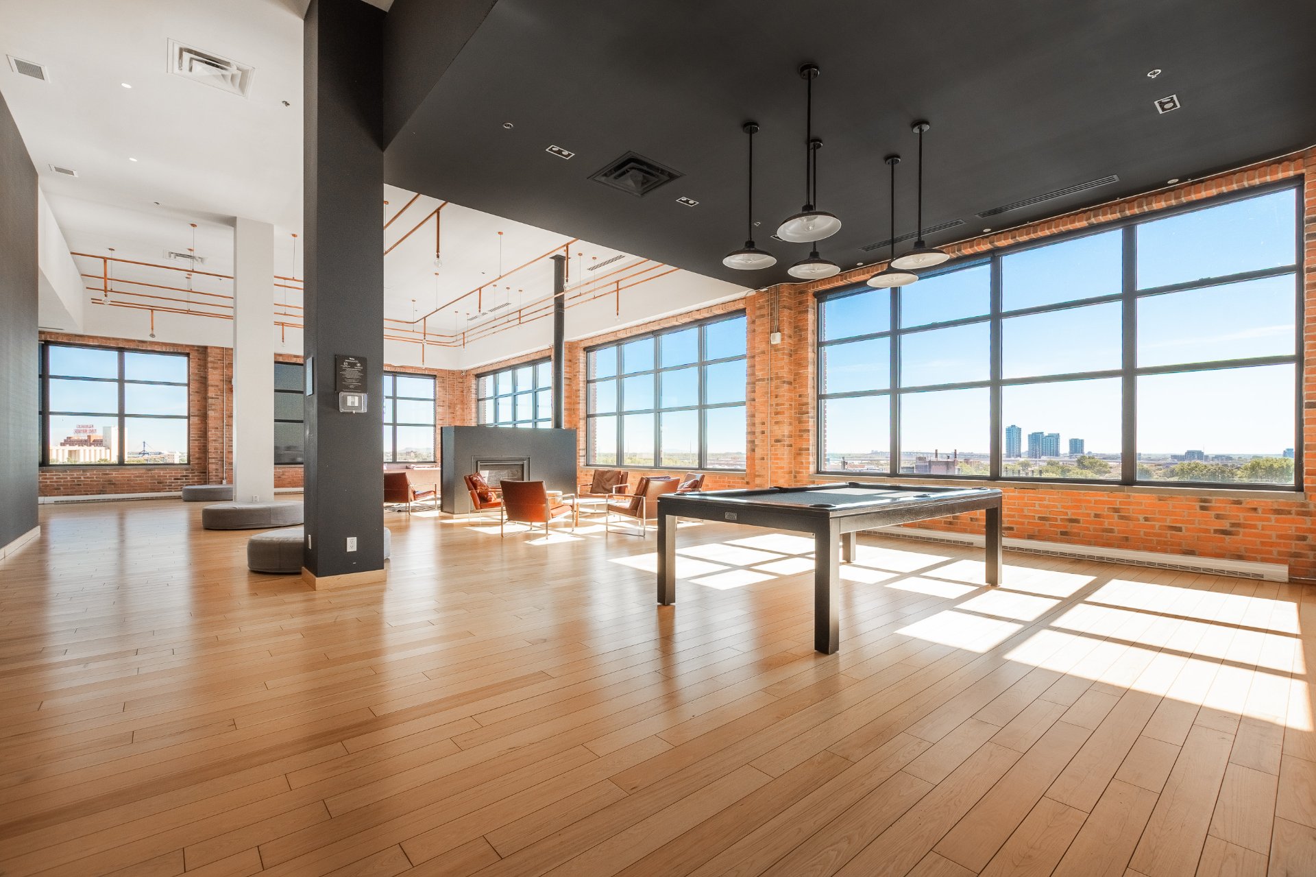 Urban lounge with billiard tables, gas fireplace and kitchen