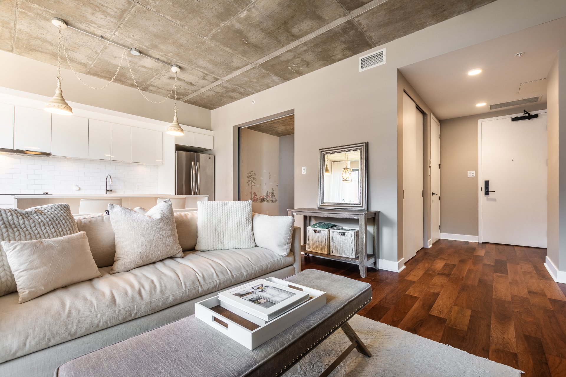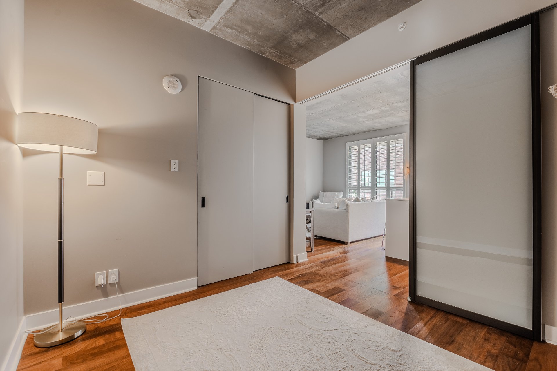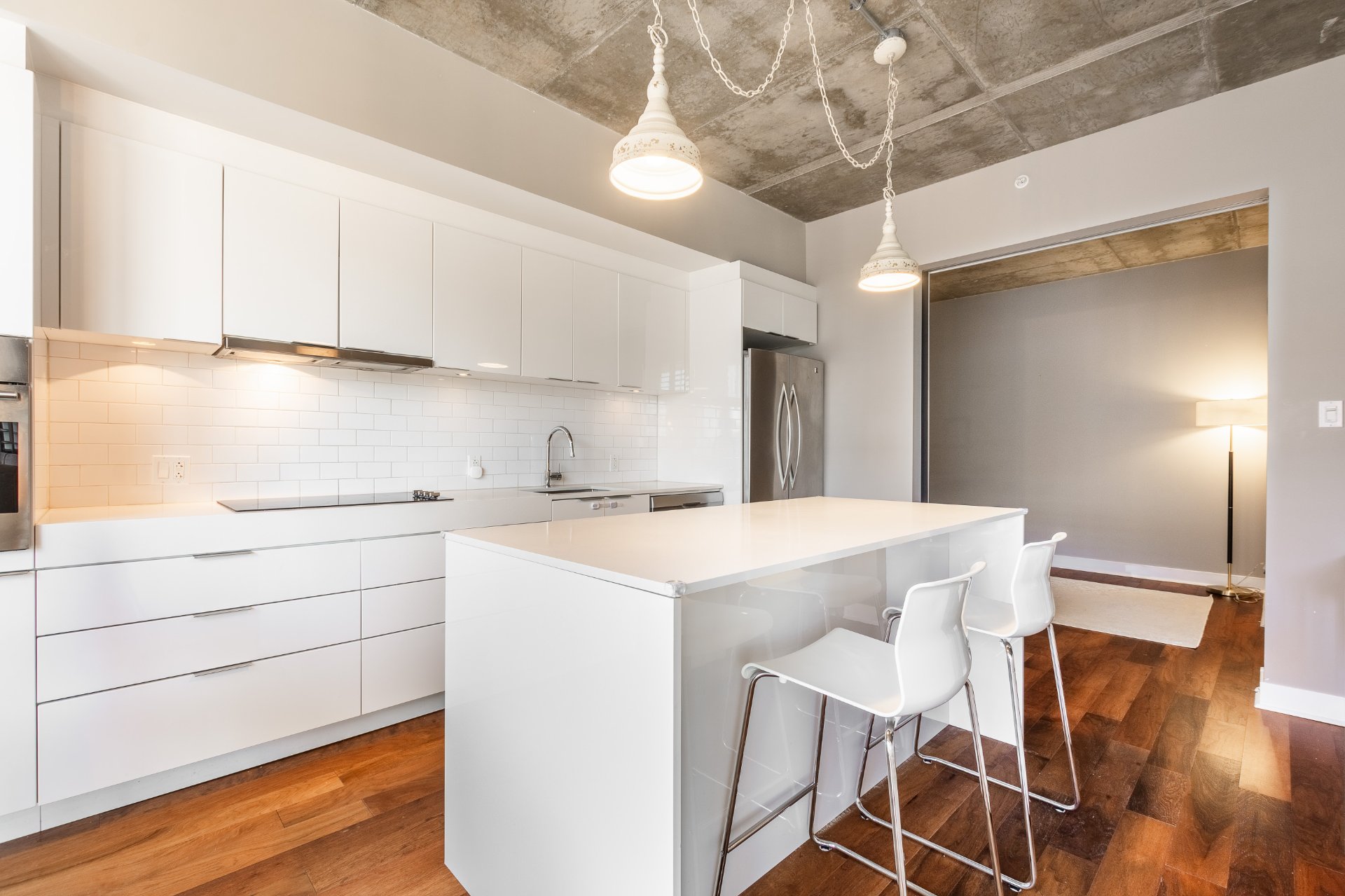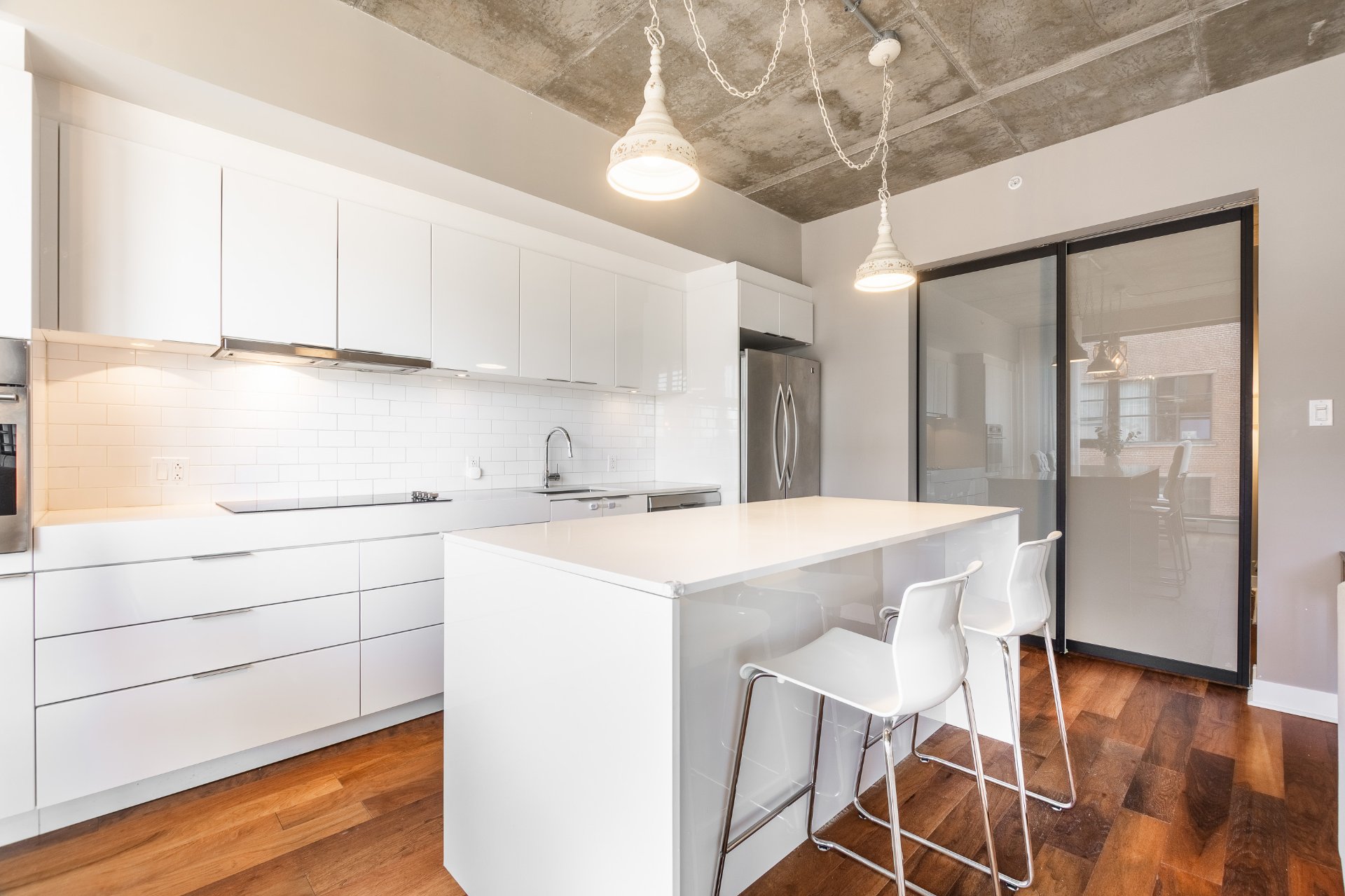 Discover this stunning 2-bedroom condo in the prestigious Nordelec project, combining industrial charm with modern elegance. Exposed concrete ceilings, large windows and abundant natural light create a warm yet sophisticated atmosphere. The open kitchen, featuring an island and high-end appliances, blends seamlessly with the rich wood floors. The inviting living space is perfect for entertaining as well as enjoying everyday comfort.