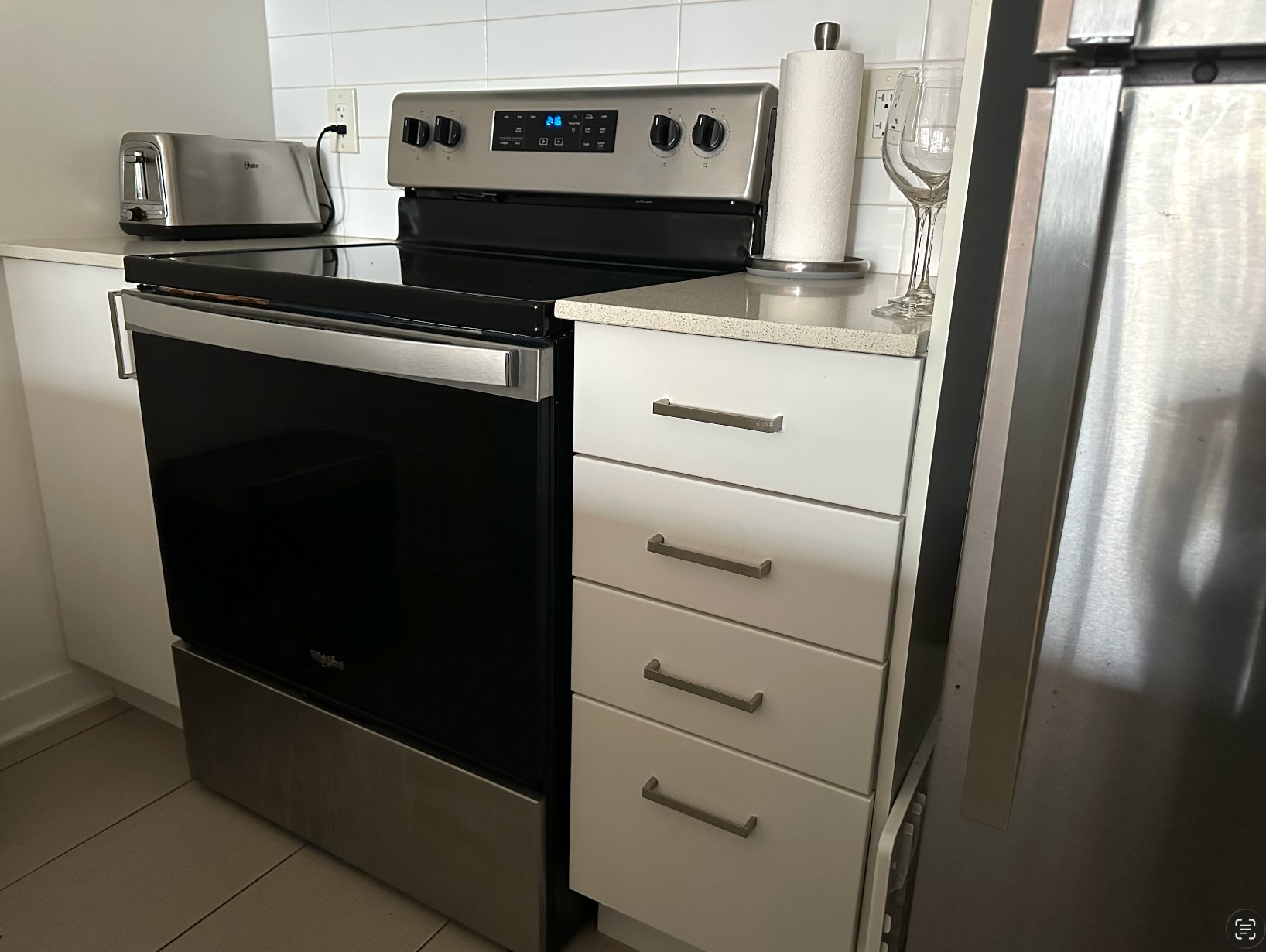 - Hot water included as well as the electrical appliances - stove, fridge, dish washer, washer and dryer.