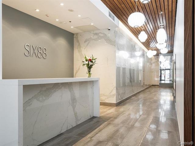 Le Six88 is a modern and well-maintained residential building offering a secure and comfortable urban lifestyle. The property features contemporary architecture, quality construction, and well-managed common areas. Residents benefit from a rooftop terrace equipped with BBQs, ideal for entertaining and relaxing, as well as a fully equipped fitness room. The building offers keyless entry, a modern security system, and a secure parcel delivery room. A full-time concierge is on site to assist residents and ensure daily operations run smoothly. Heated underground parking and storage lockers are available at additional cost. Pet-friendly building (up to 30 lb per unit).