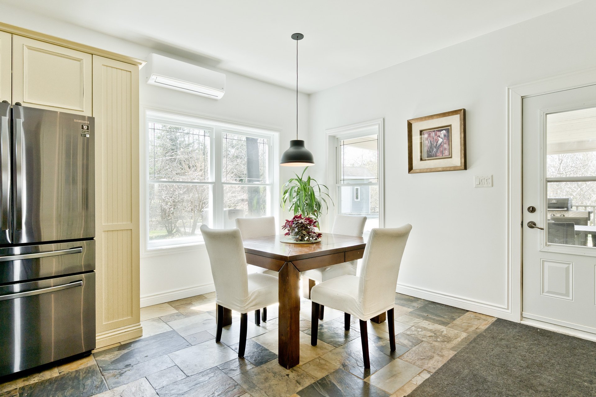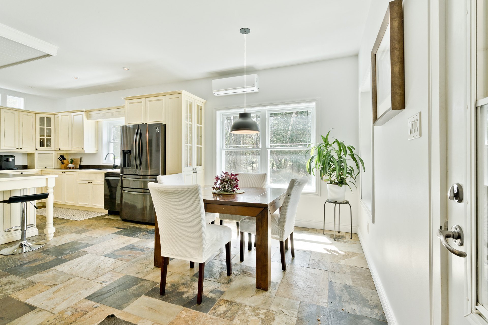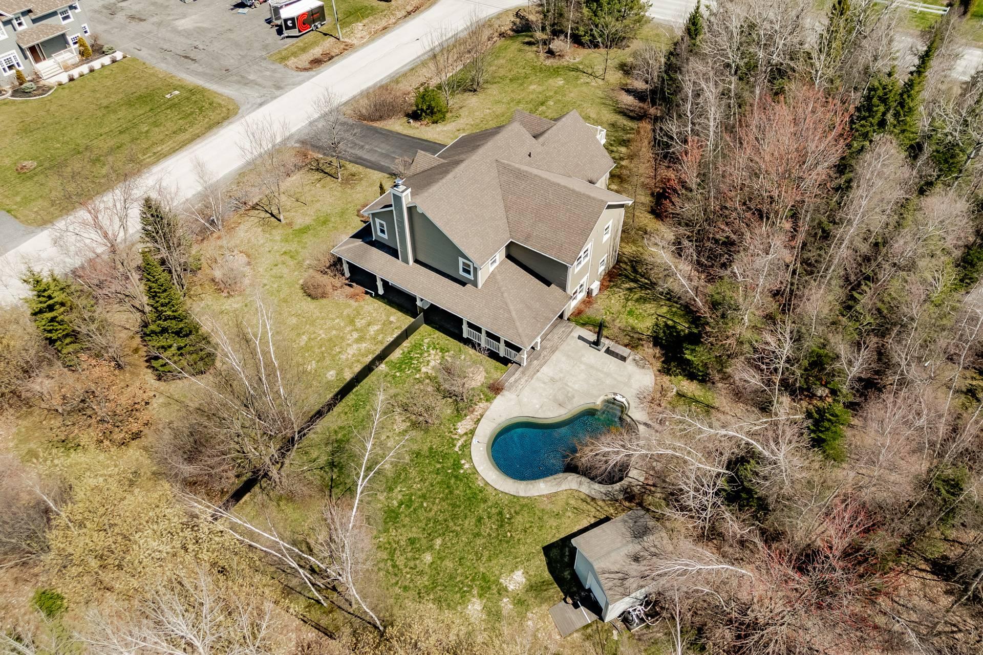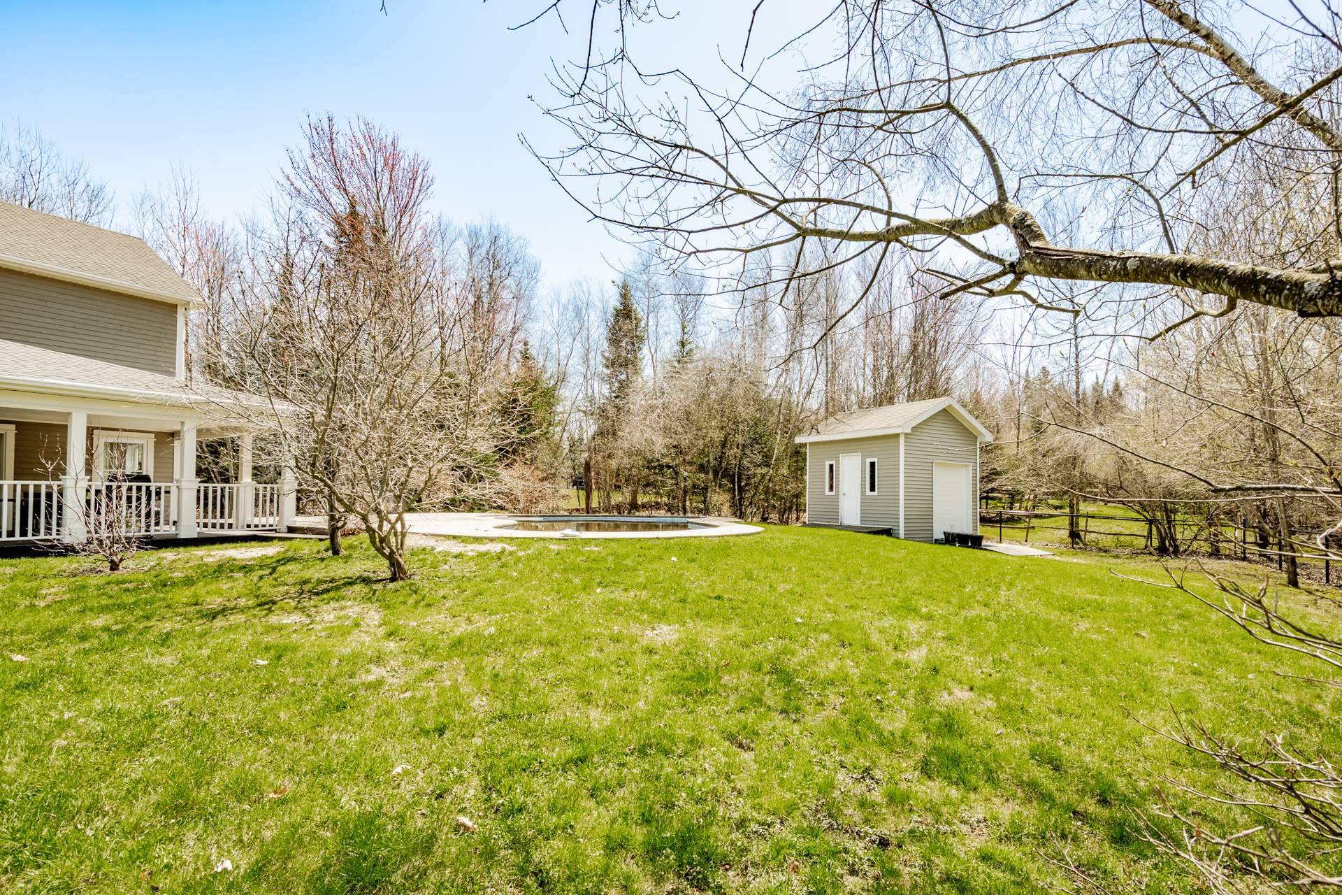 Impeccable and welcoming, this property offers a spacious interior with heated slate floors, a versatile mezzanine and a well-thought-out layout. Upstairs, three bedrooms and a room over the garage are yours to explore. There's also 1.5 bathrooms, a large double garage and over 40,000 sq. ft. of wooded land. The backyard is fenced and features an in-ground pool. A warm, practical and peaceful setting, close to services.