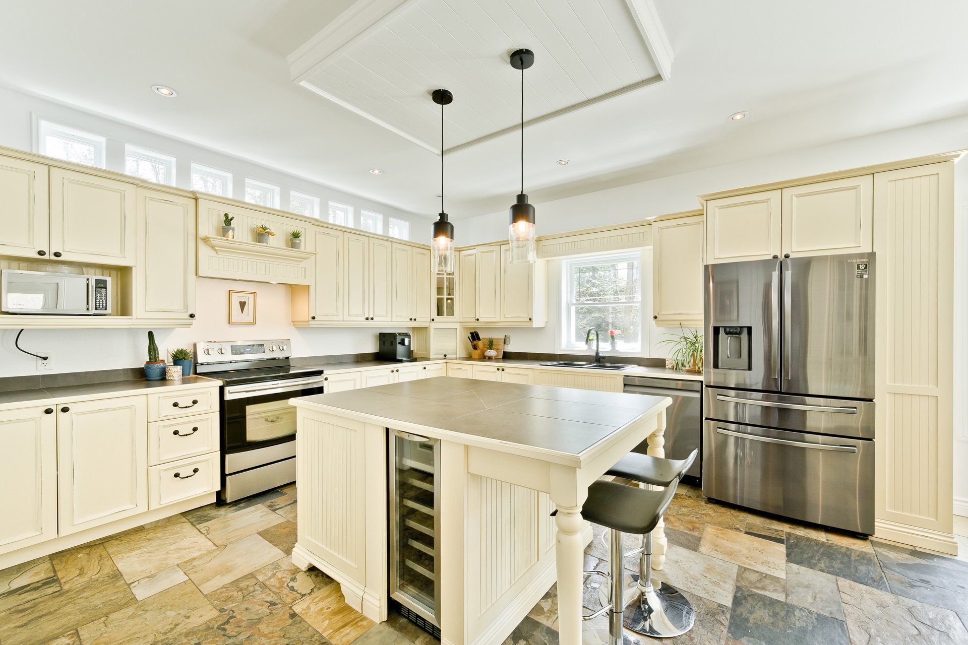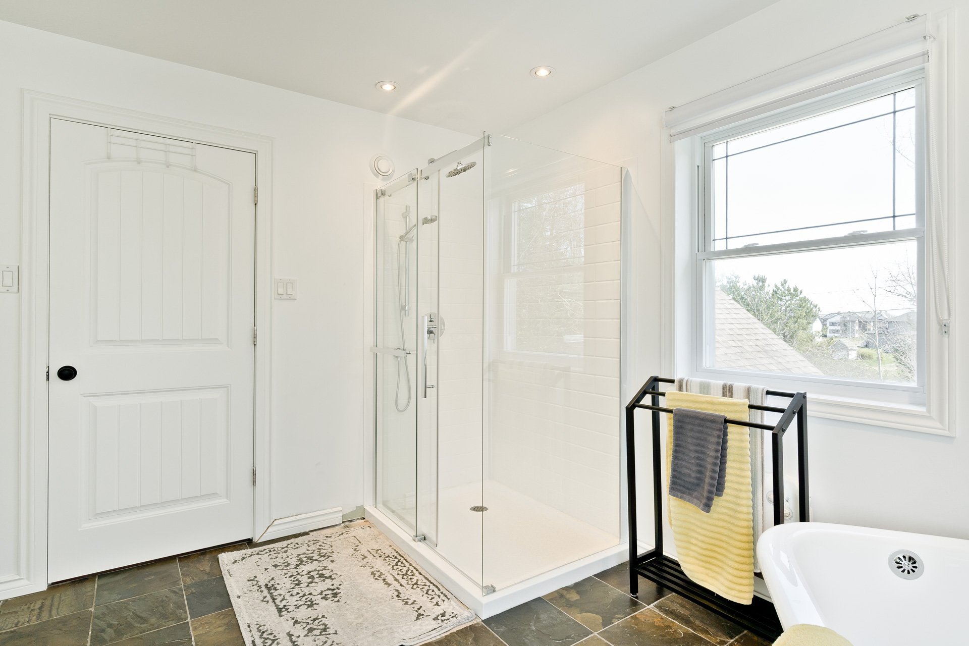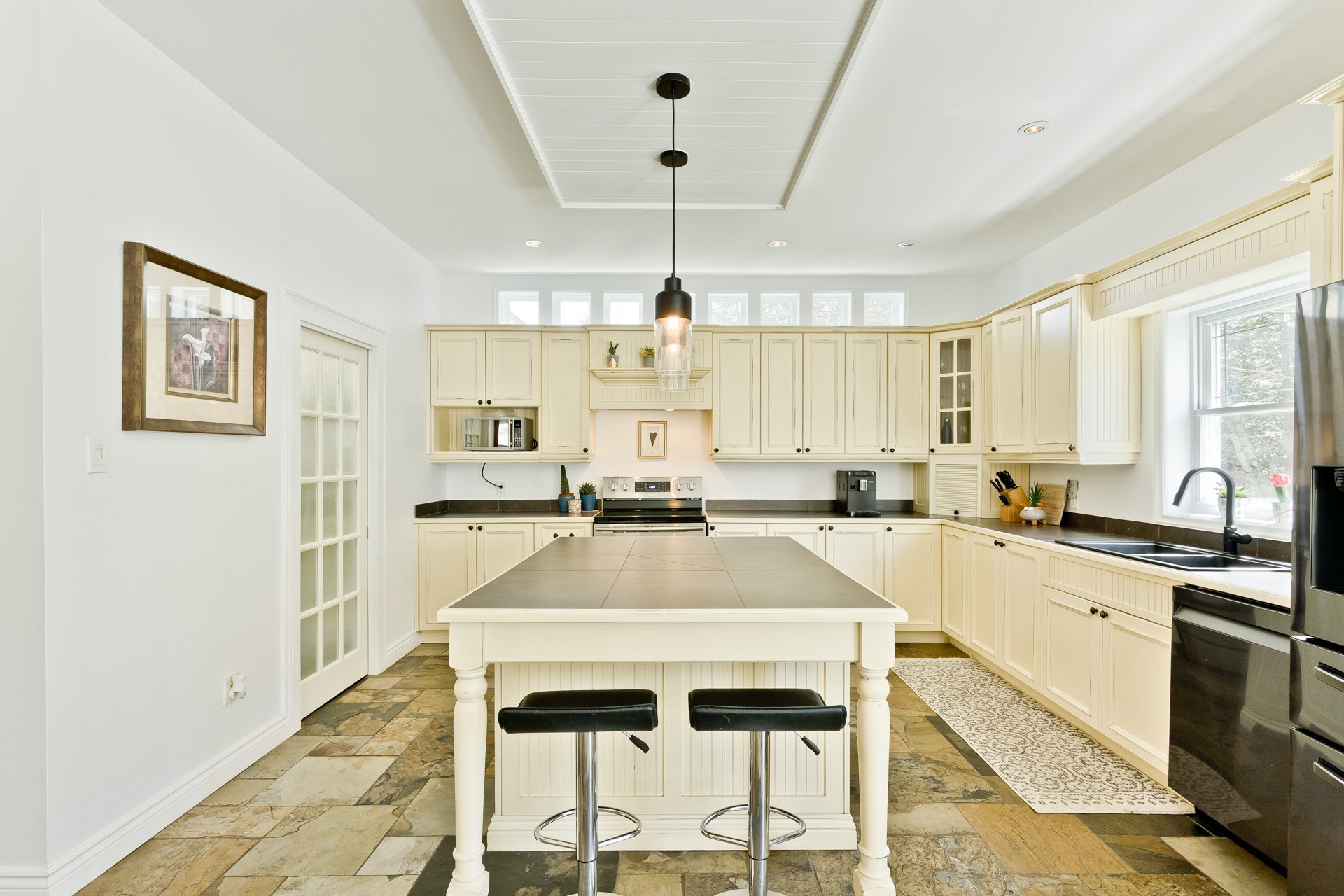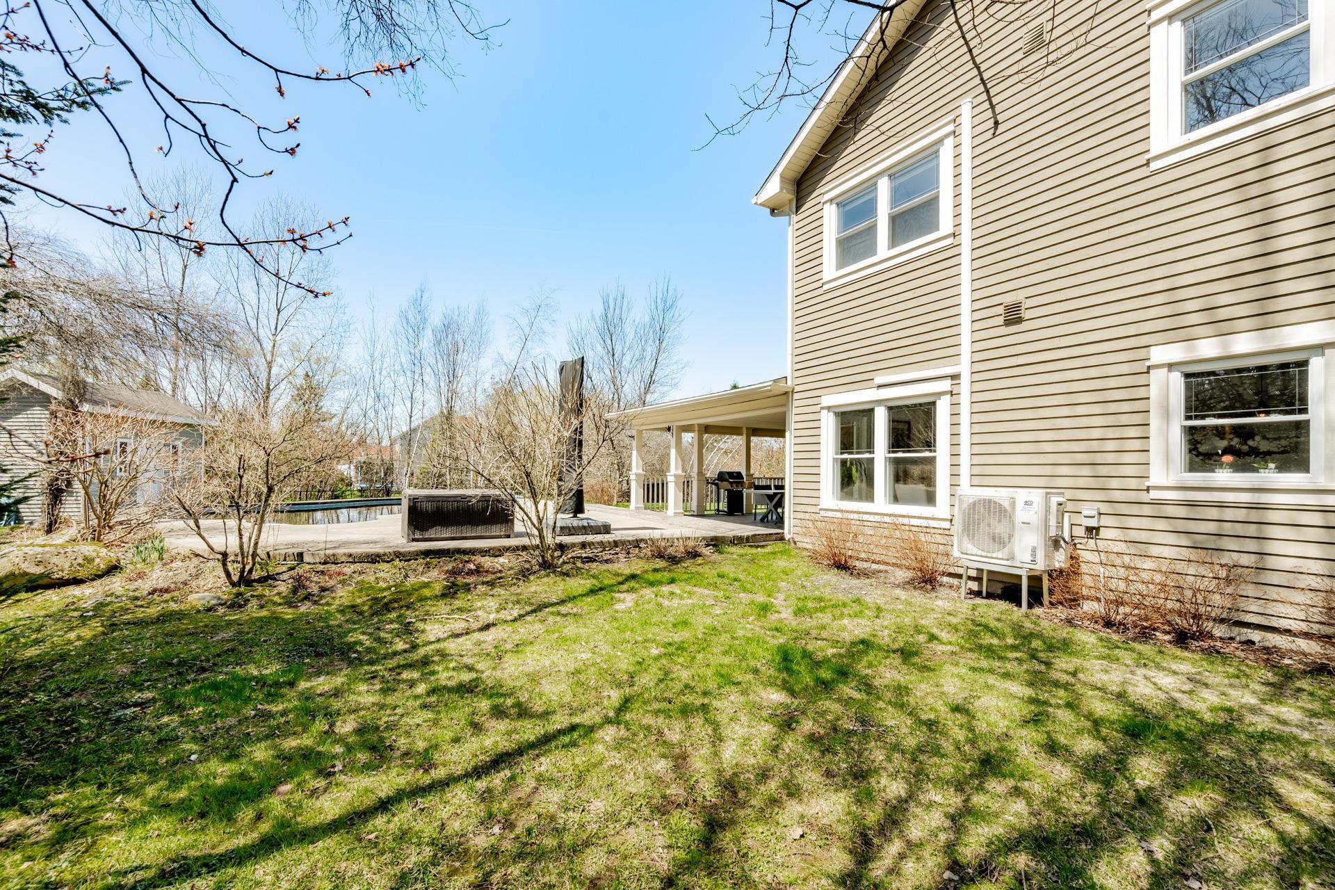 Impeccable and welcoming, this property offers a spacious interior with heated slate floors, a versatile mezzanine and a well-thought-out layout. Upstairs, three bedrooms and a room over the garage are yours to explore. There's also 1.5 bathrooms, a large double garage and over 40,000 sq. ft. of wooded land. The backyard is fenced and features an in-ground pool. A warm, practical and peaceful setting, close to services.