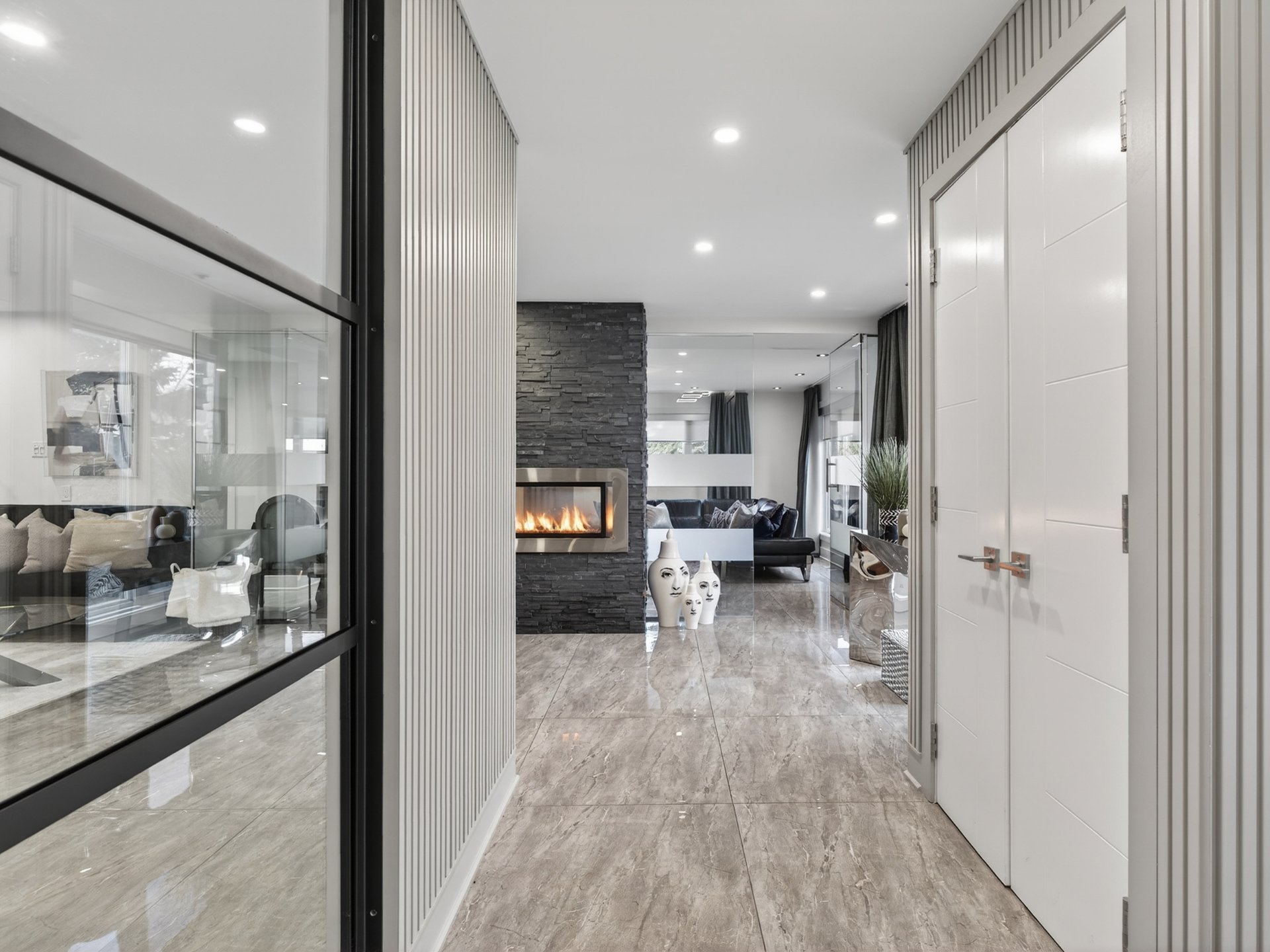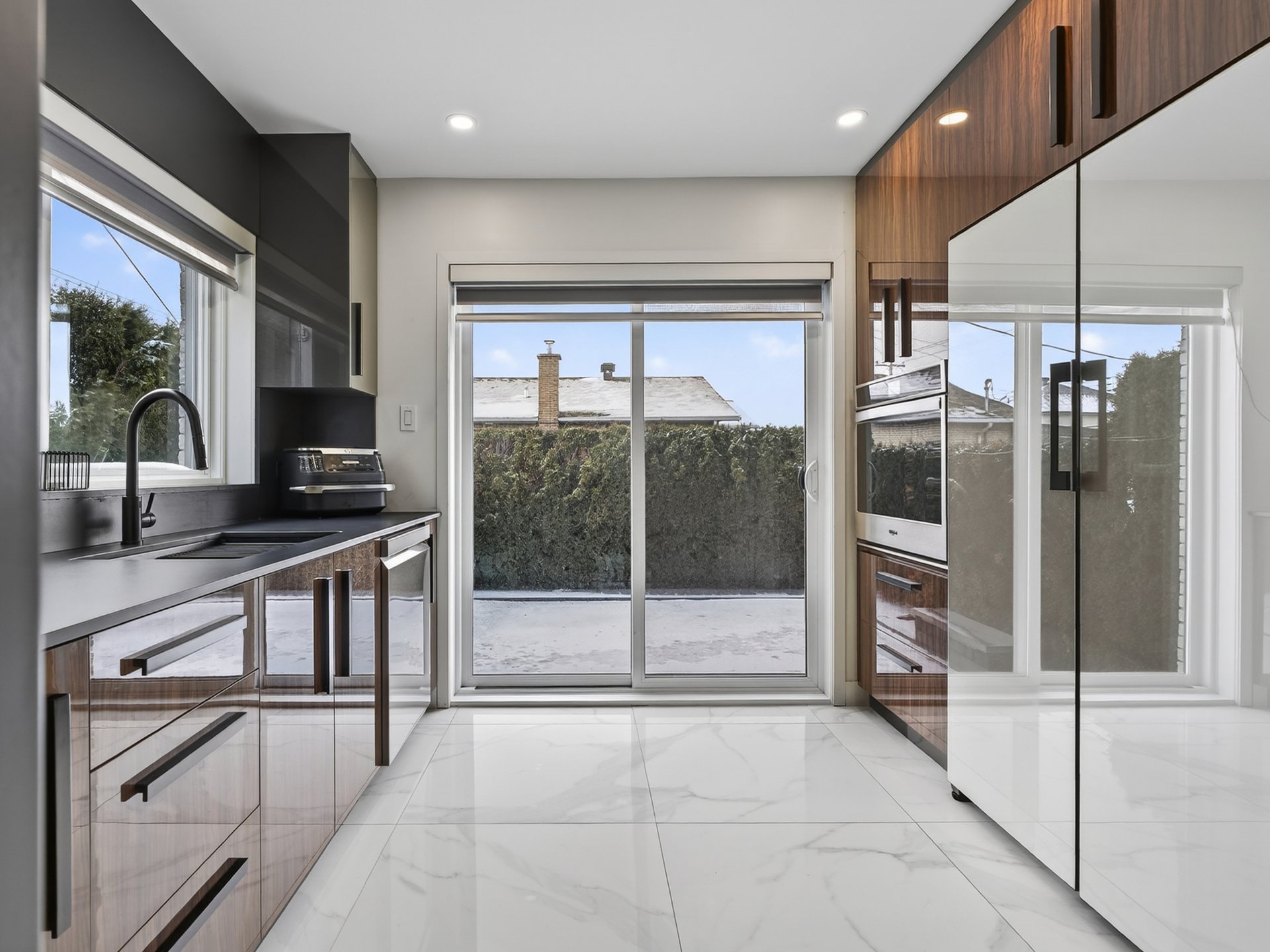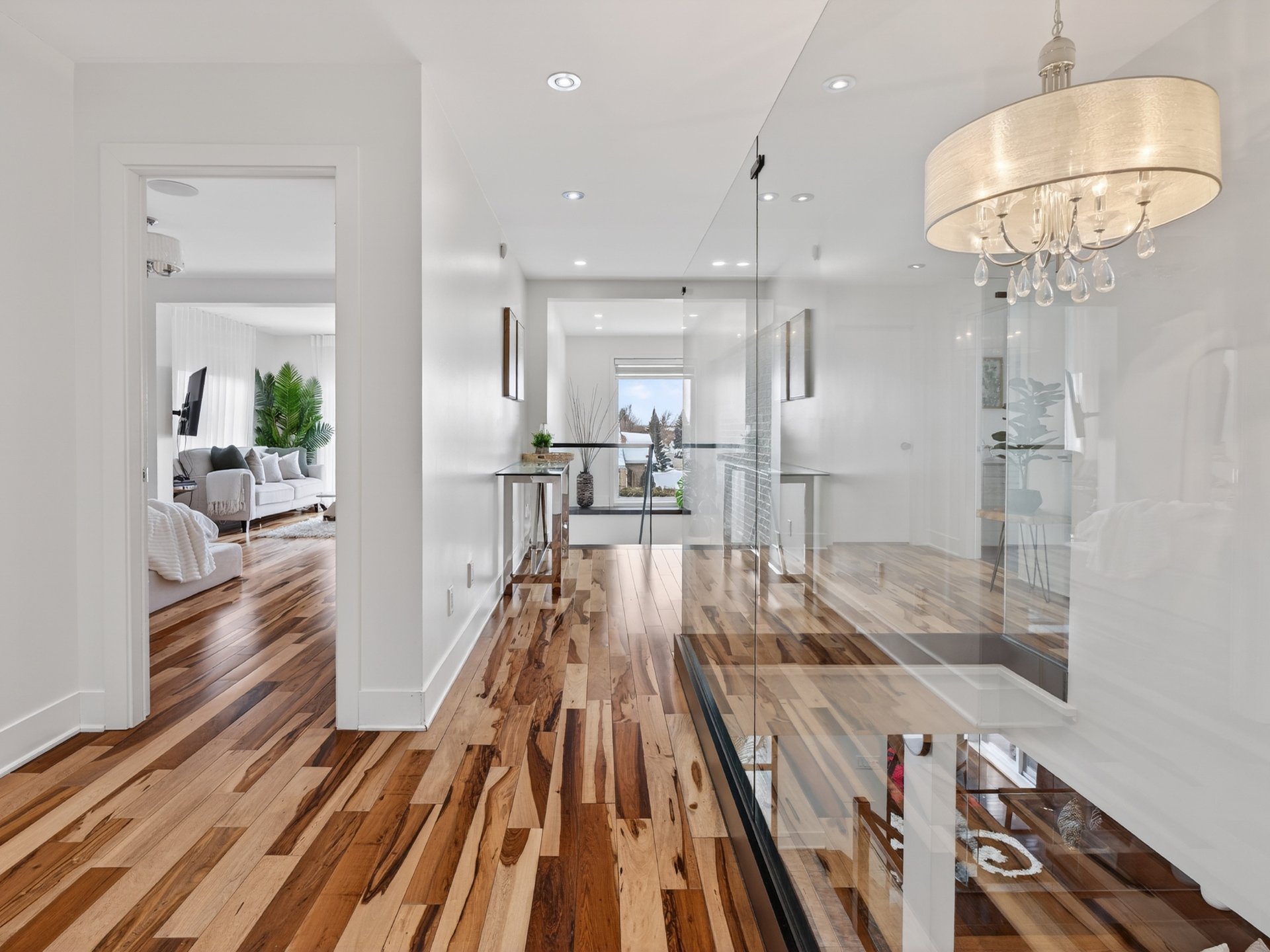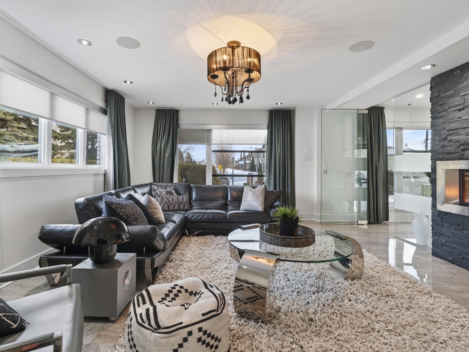 On a quiet corner in a well-established family area of Rivière-des-Prairies, set behind mature hedges on a 7,469 sq.ft. lot, this residence offers space, light, and privacy. The main floor is open and fluid, with a kitchen designed to gather and living areas that extend naturally outdoors. The upper level is dedicated to rest, with a generous primary suite and well-proportioned bedrooms. Outside, the pool and terrace create a simple, resort-style setting. A property that feels composed, private, and easy to live in.