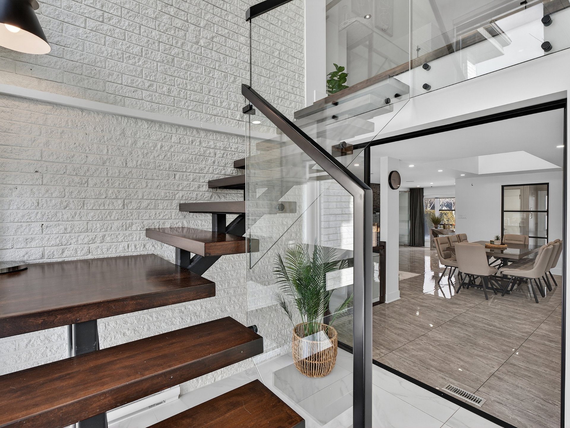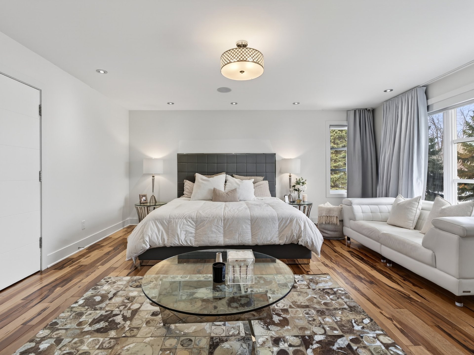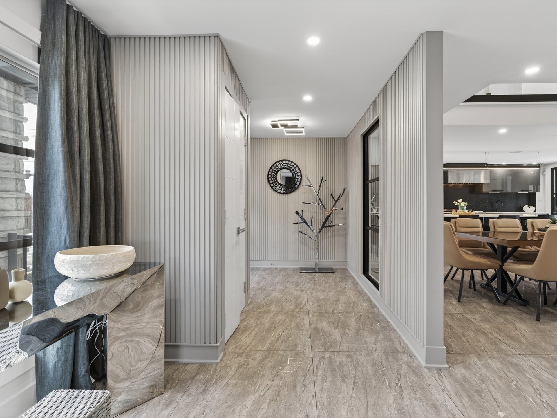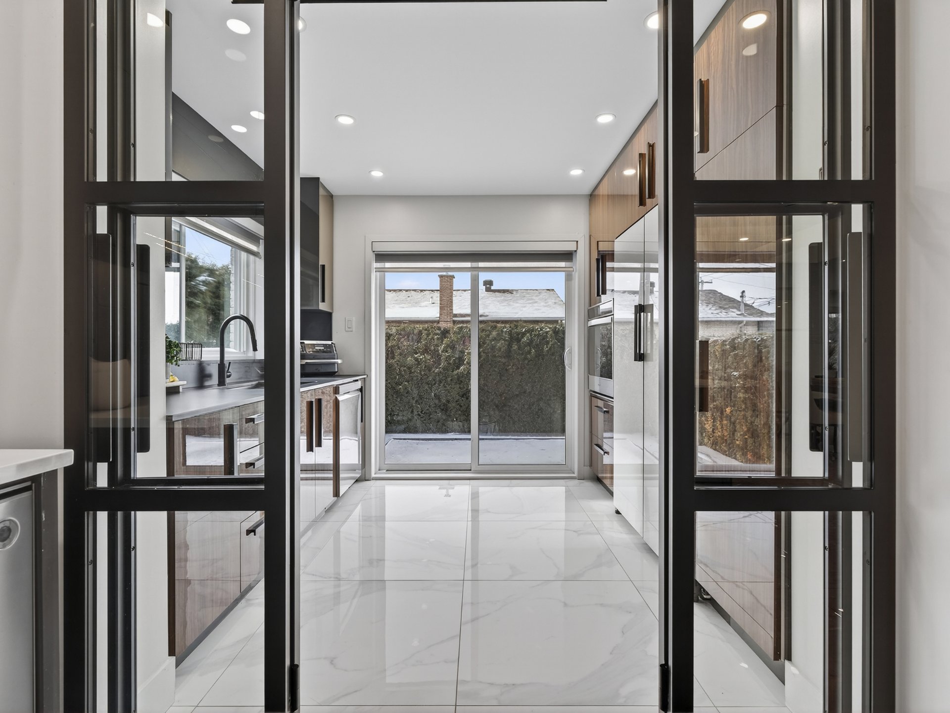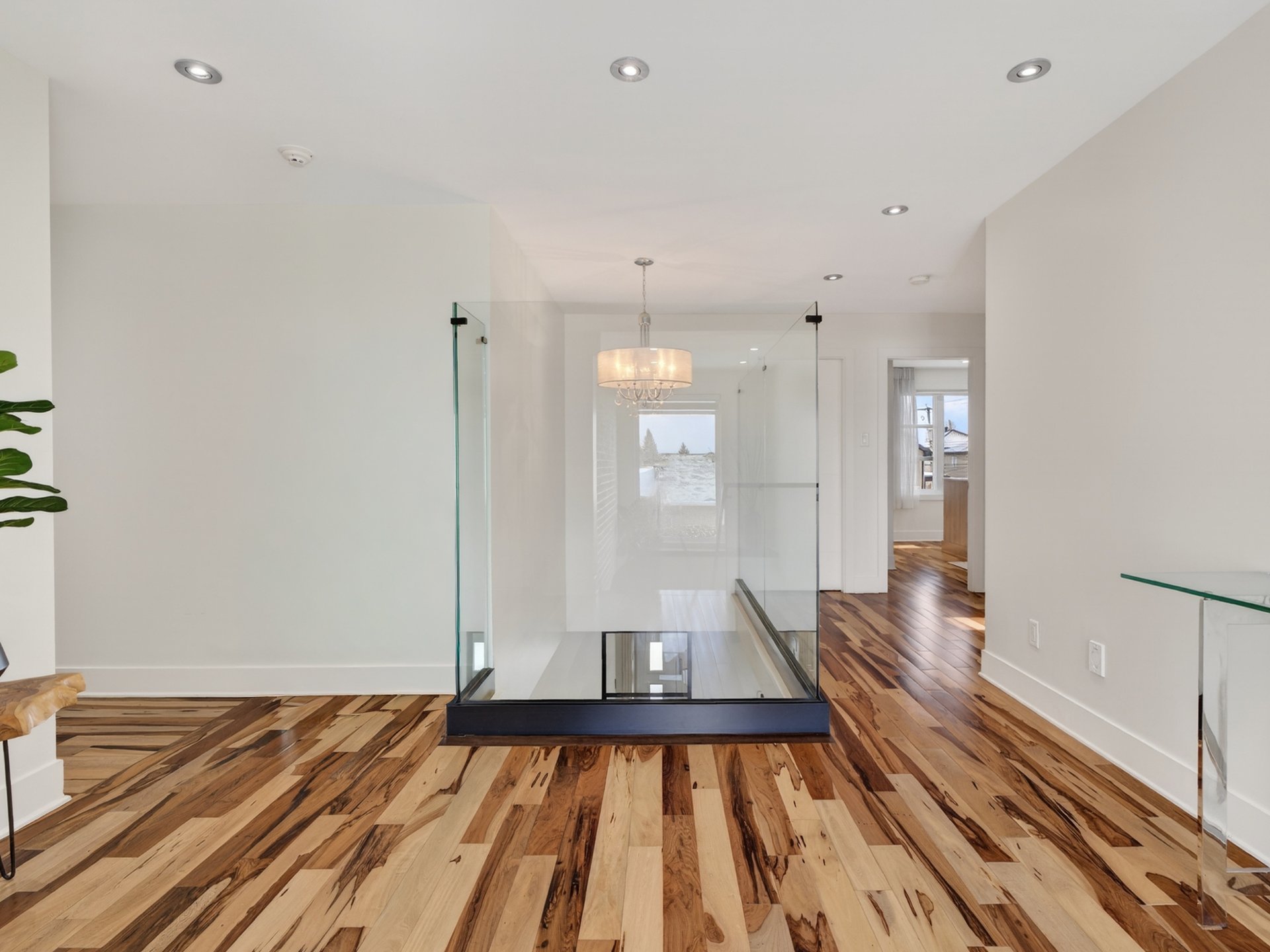 On a quiet corner in a well-established family area of Rivière-des-Prairies, set behind mature hedges on a 7,469 sq.ft. lot, this residence offers space, light, and privacy. The main floor is open and fluid, with a kitchen designed to gather and living areas that extend naturally outdoors. The upper level is dedicated to rest, with a generous primary suite and well-proportioned bedrooms. Outside, the pool and terrace create a simple, resort-style setting. A property that feels composed, private, and easy to live in.