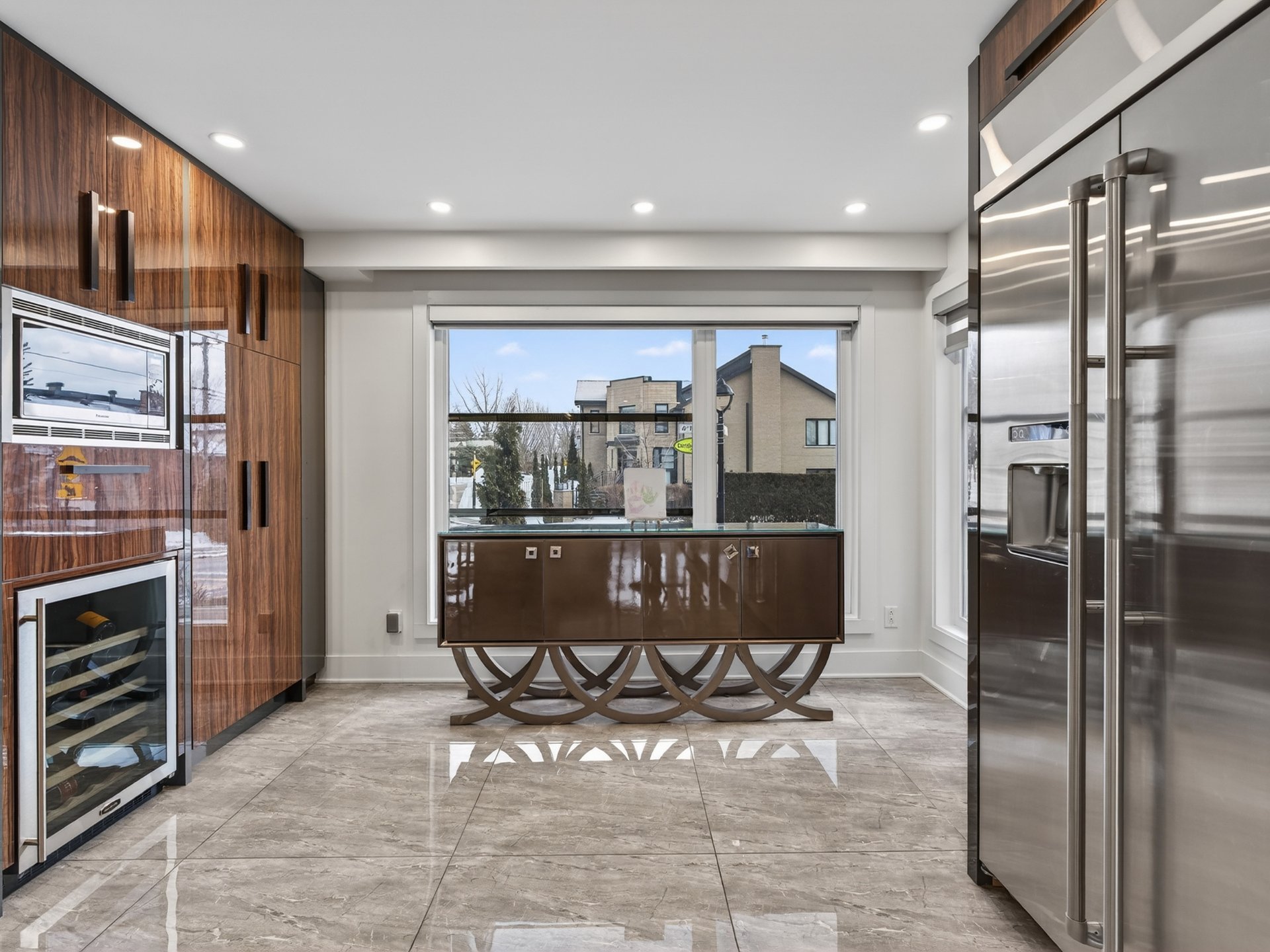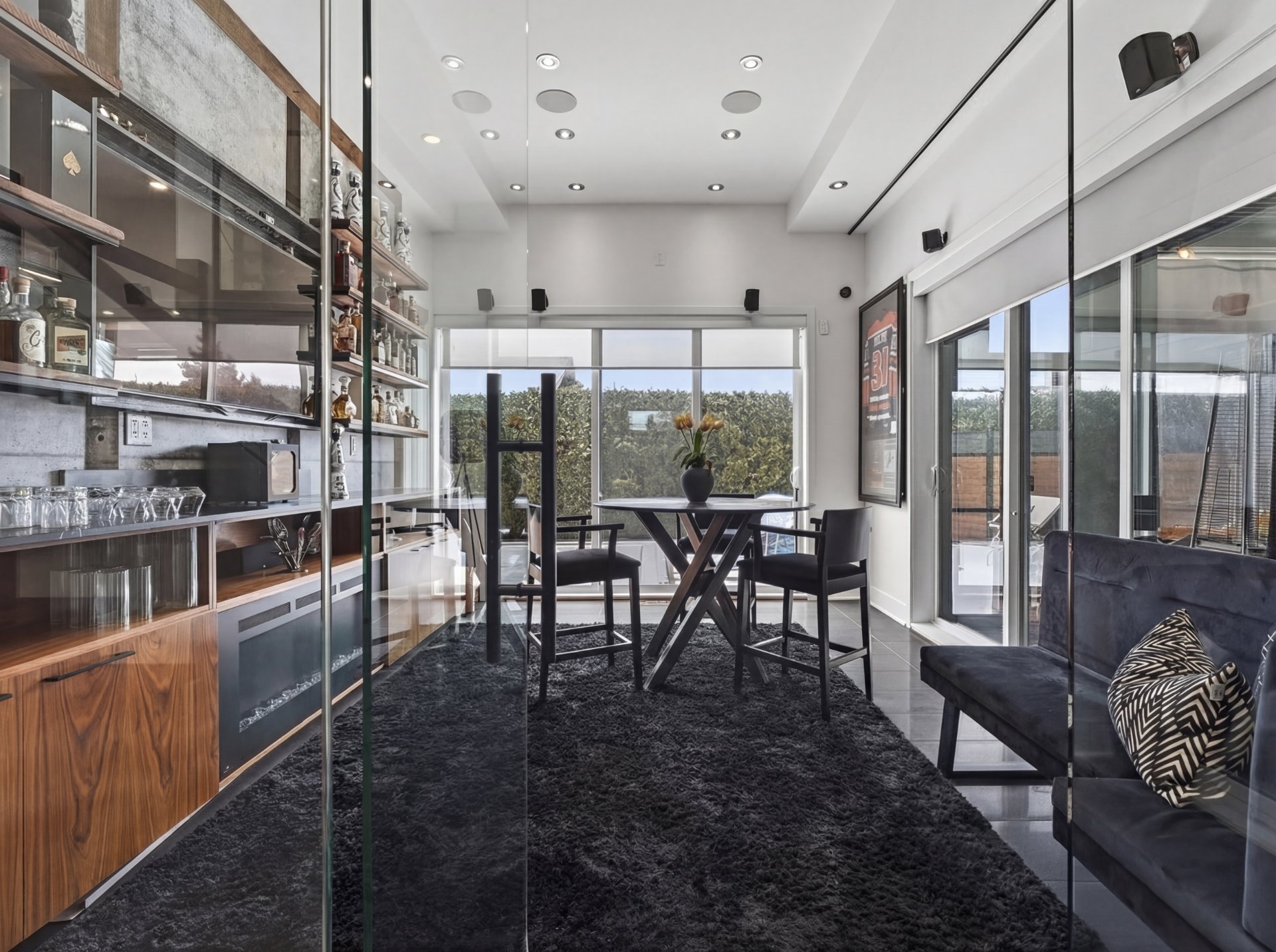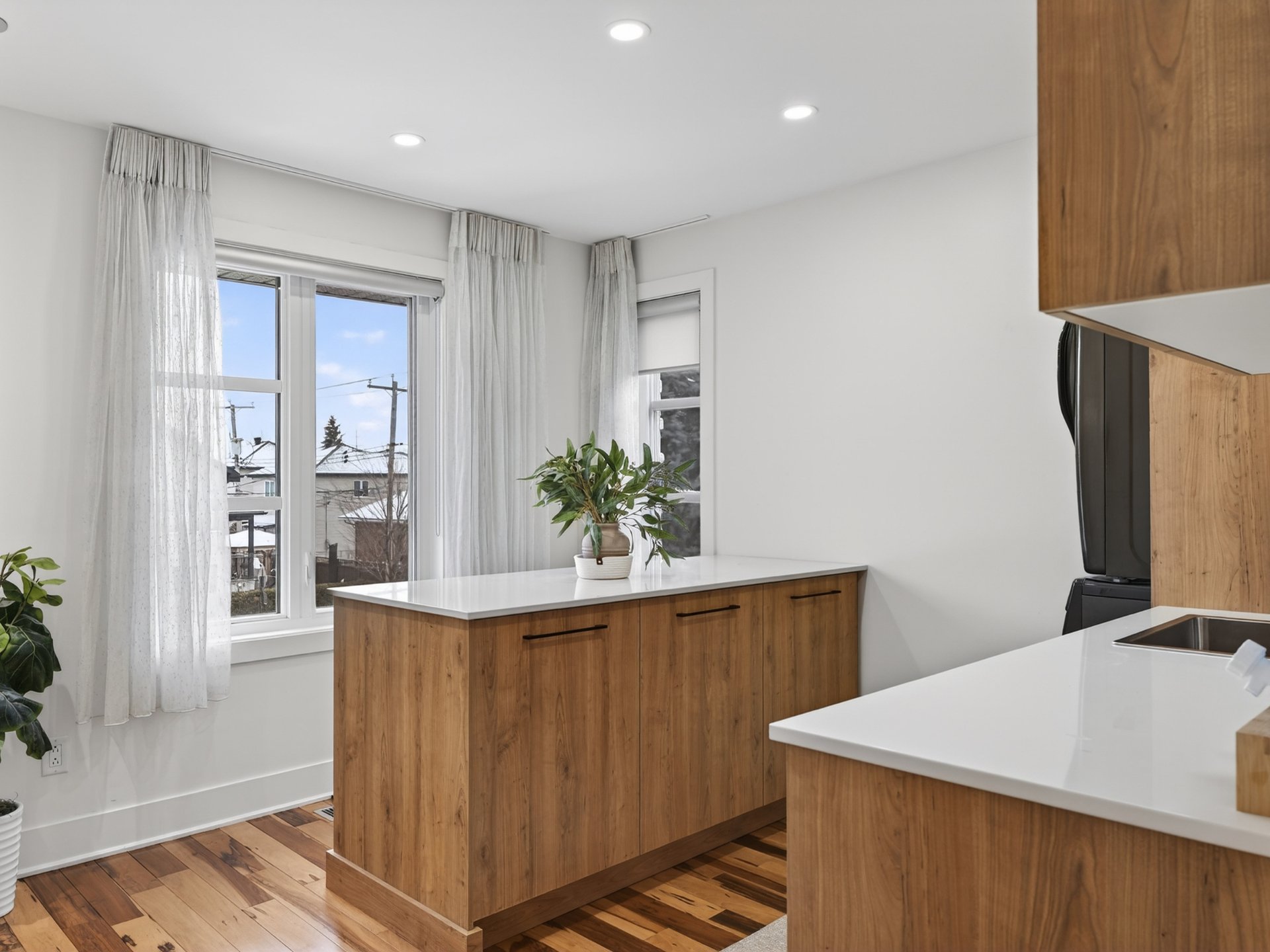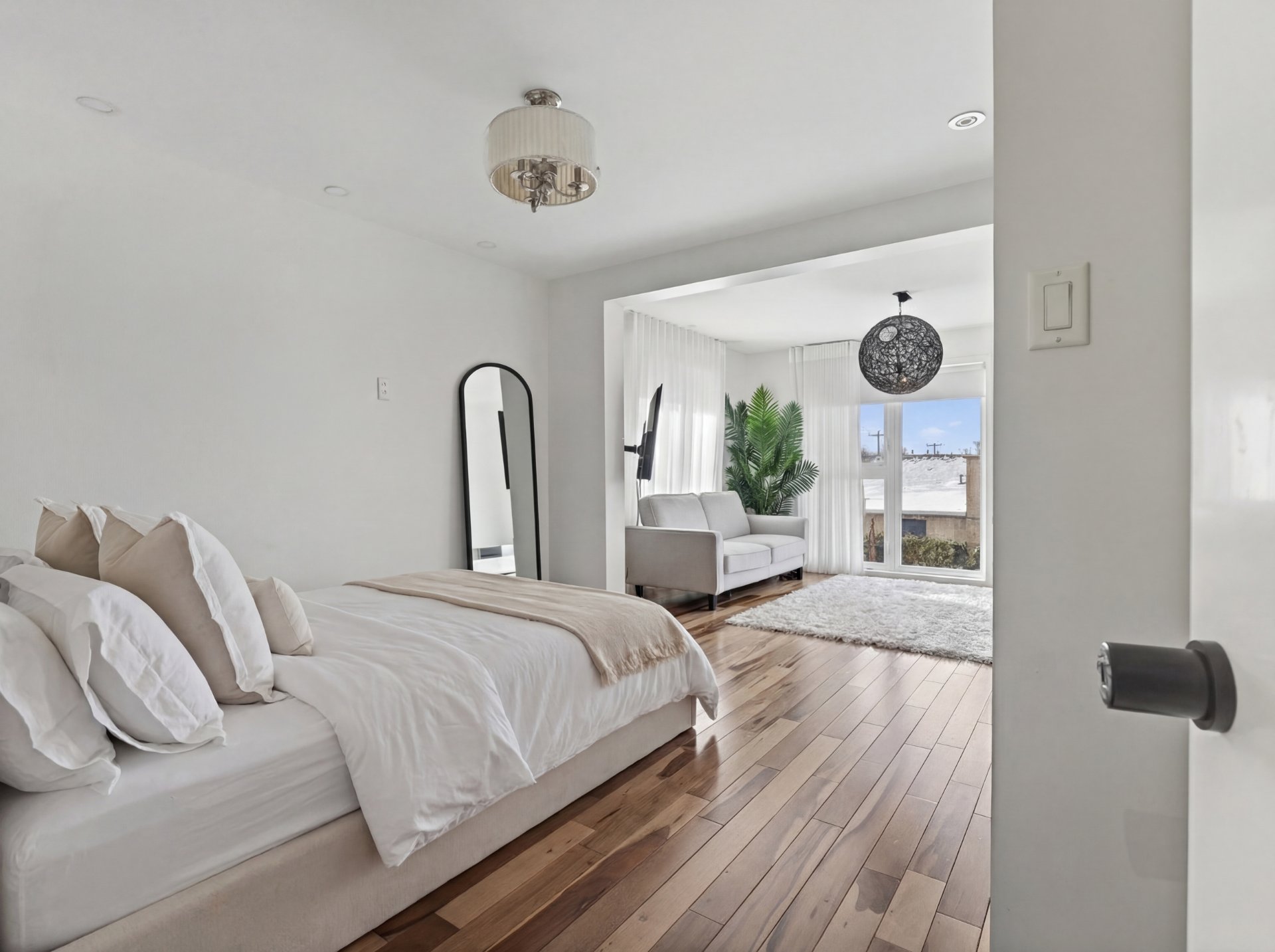On a quiet corner in a well-established family area of Rivière-des-Prairies, set behind mature hedges on a 7,469 sq.ft. lot, this residence offers space, light, and privacy. The main floor is open and fluid, with a kitchen designed to gather and living areas that extend naturally outdoors. The upper level is dedicated to rest, with a generous primary suite and well-proportioned bedrooms. Outside, the pool and terrace create a simple, resort-style setting. A property that feels composed, private, and easy to live in.