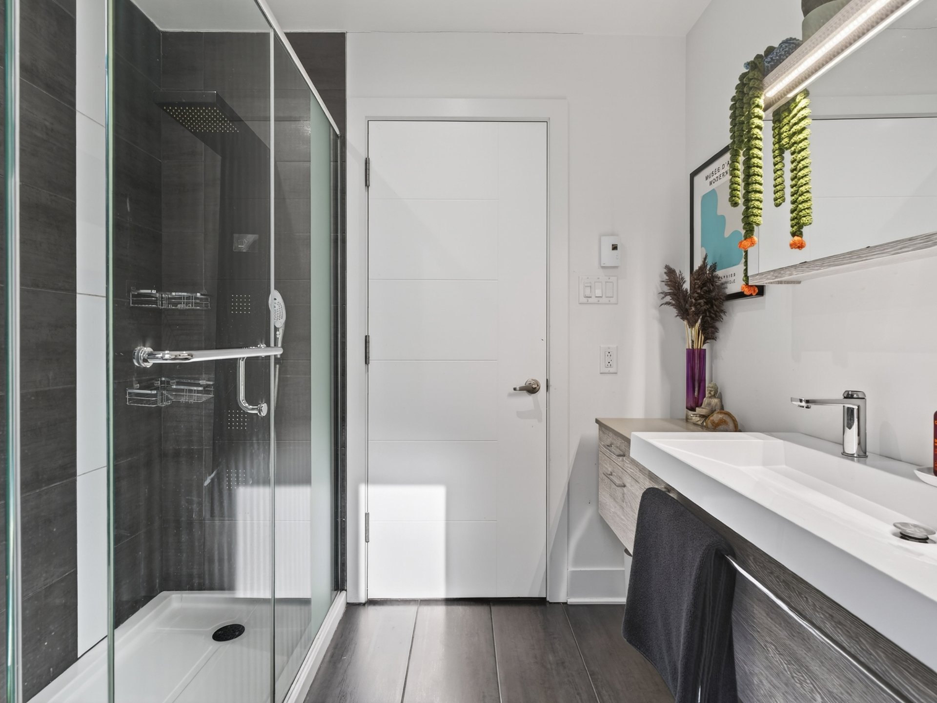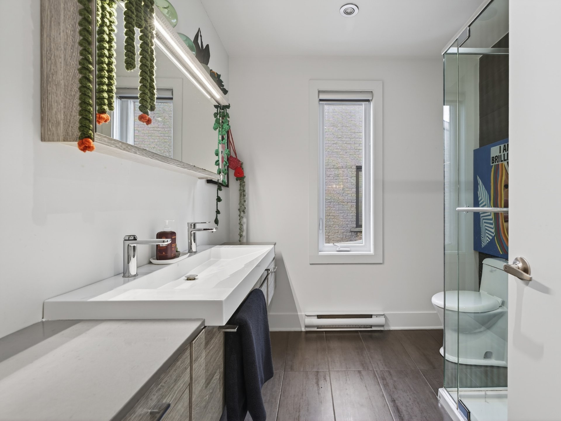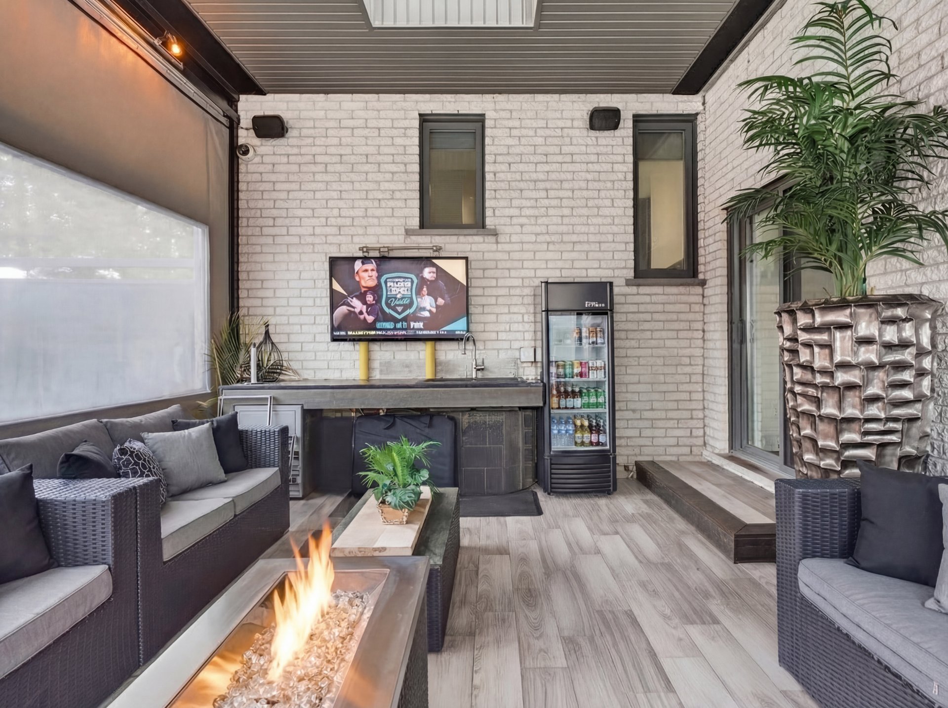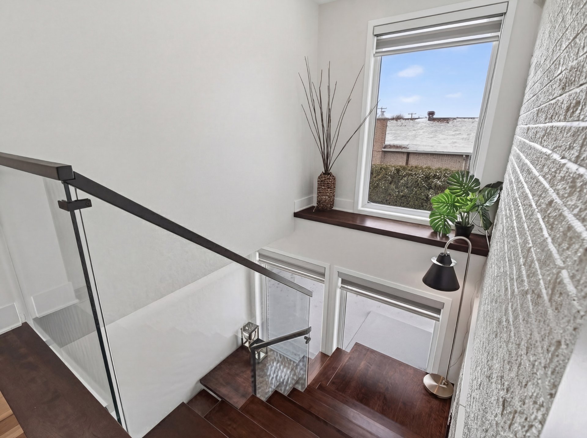 On a quiet corner in a well-established family area of Rivière-des-Prairies, set behind mature hedges on a 7,469 sq.ft. lot, this residence offers space, light, and privacy. The main floor is open and fluid, with a kitchen designed to gather and living areas that extend naturally outdoors. The upper level is dedicated to rest, with a generous primary suite and well-proportioned bedrooms. Outside, the pool and terrace create a simple, resort-style setting. A property that feels composed, private, and easy to live in.