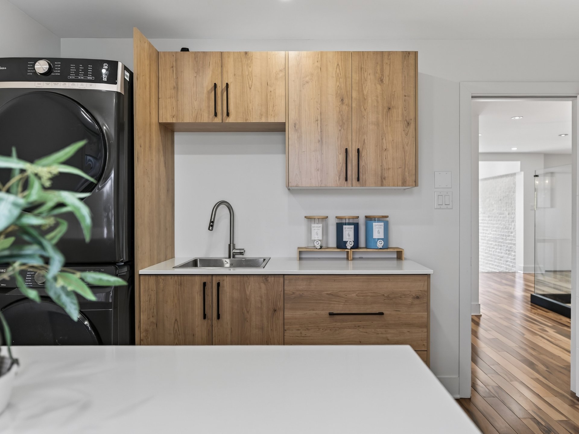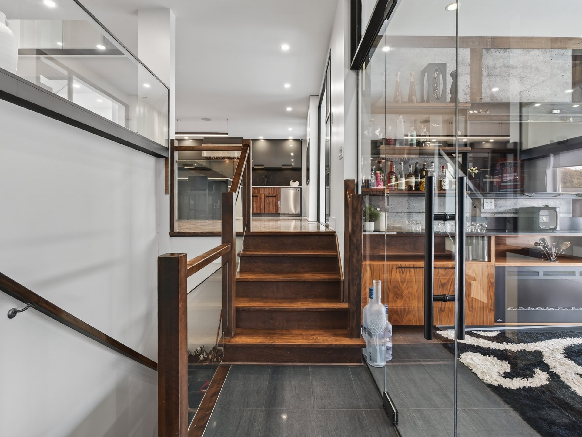 The lower level includes a fully functional secondary living space with a living area, bedroom, full bathroom, and kitchenette. This level is well suited for extended family, guest accommodation, or independent use, while also offering integrated storage and direct access to the garage.