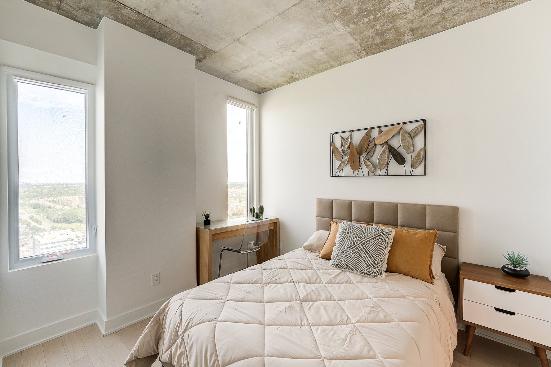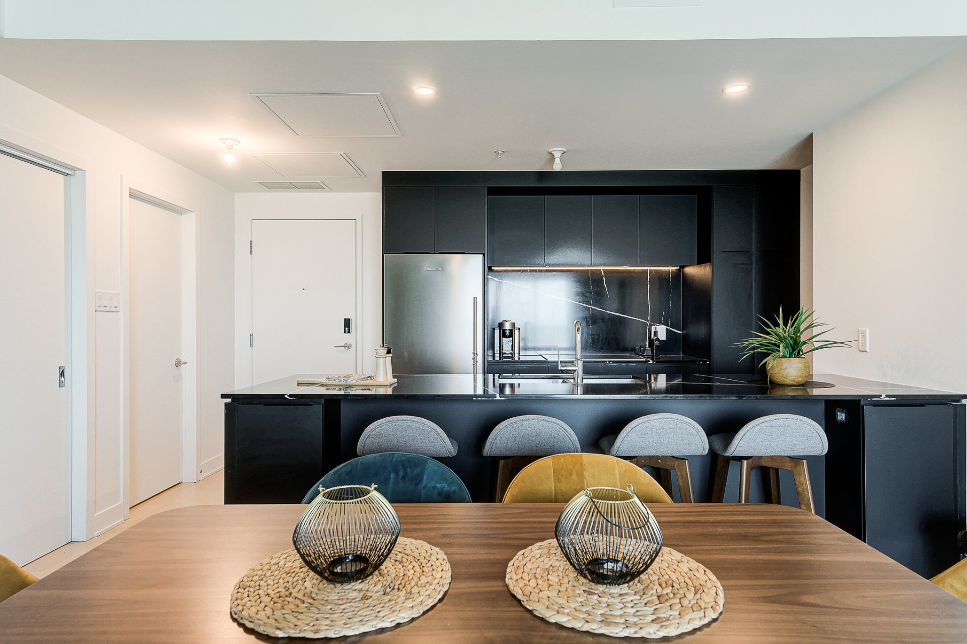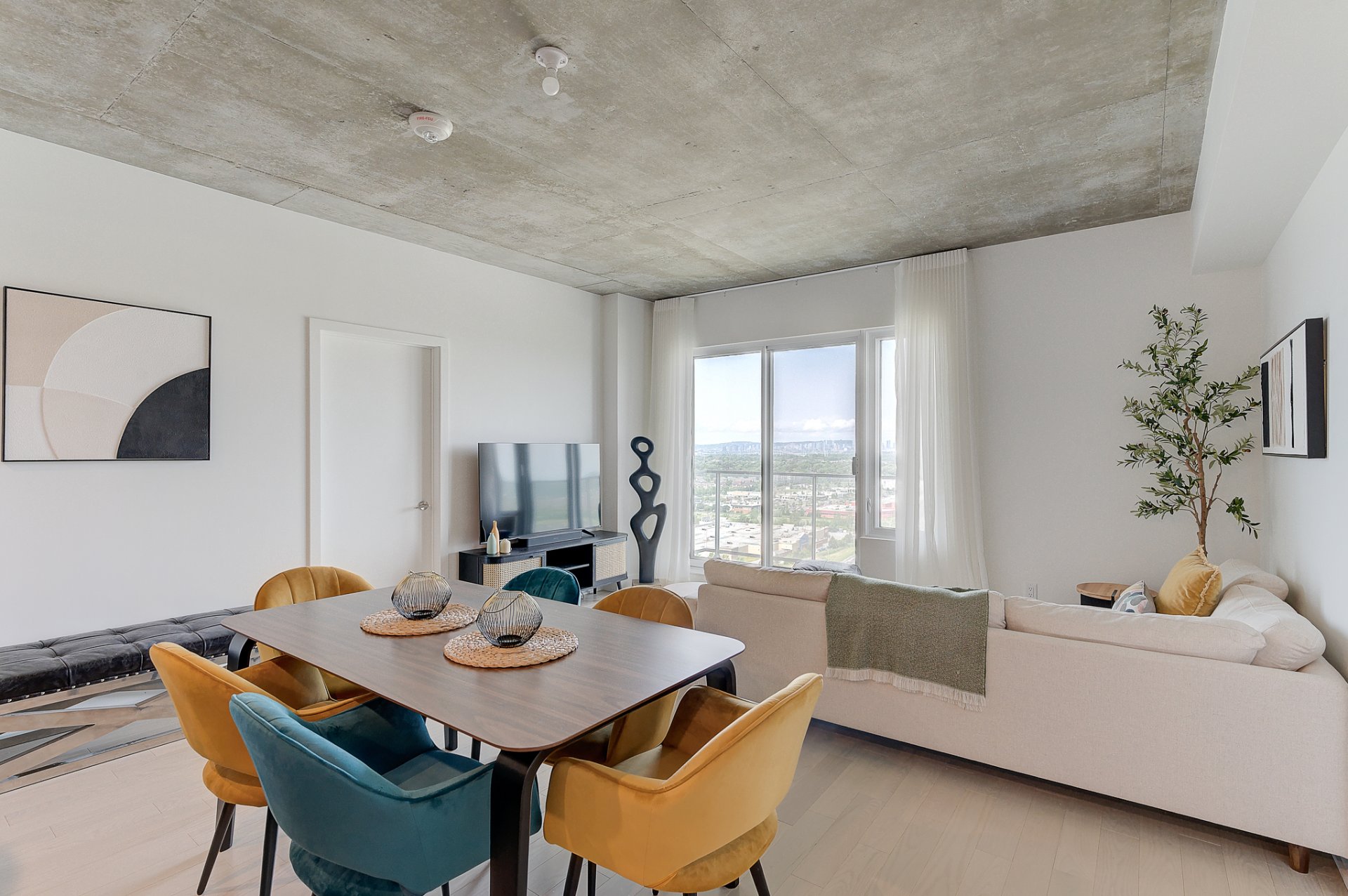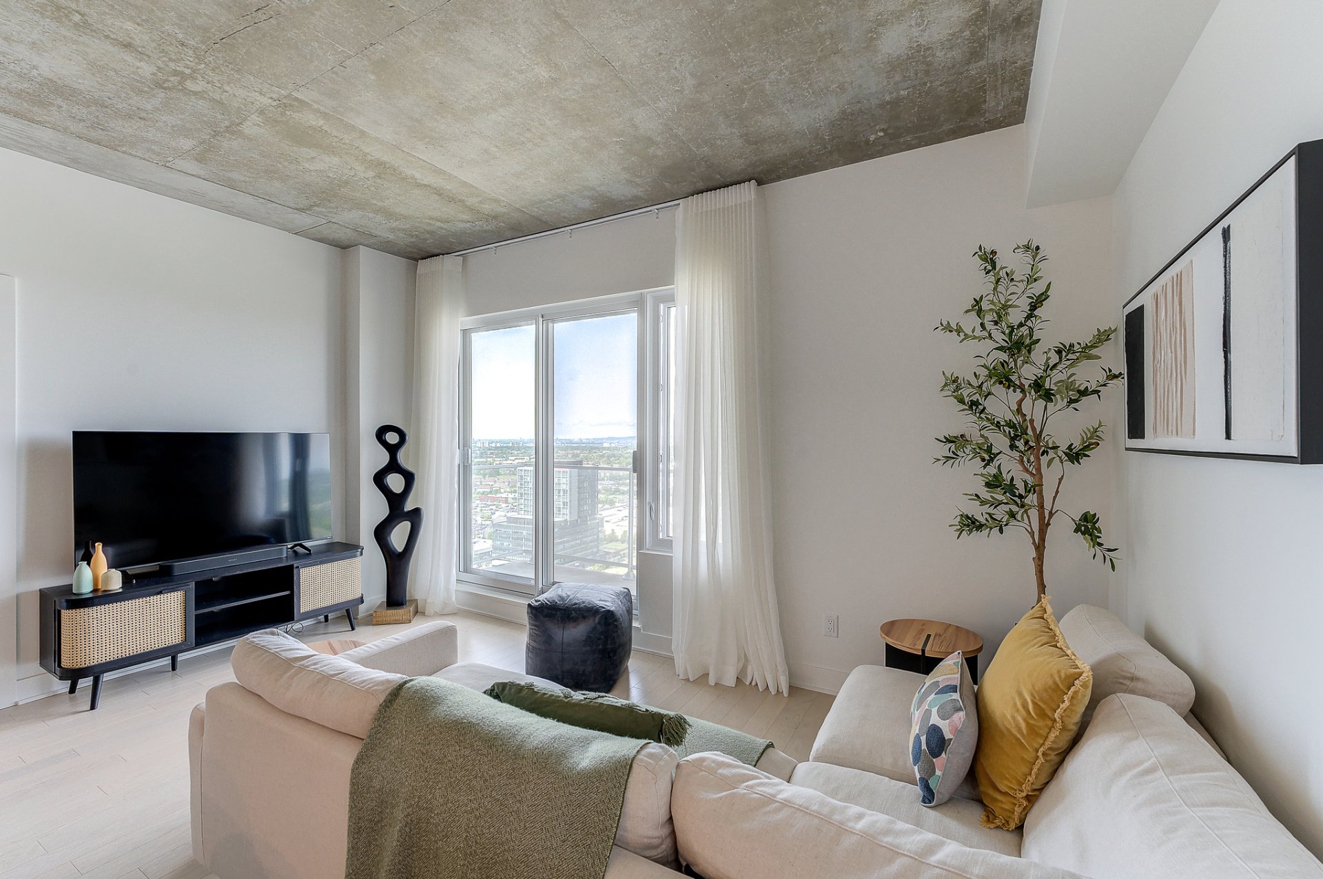 A stunning condo located on the 24th floor of the prestigious Nobel Tower, in the heart of the Quartier Dix30. This bright unit offers spectacular panoramic views of downtown. It features 2 bedrooms with large walk-in closets and 2 full bathrooms. Fully furnished and equipped, the apartment is move-in ready. The rental includes an indoor parking space and a storage unit. The building is directly connected to the REM and within walking distance of the restaurants, shops, and amenities of Dix30.