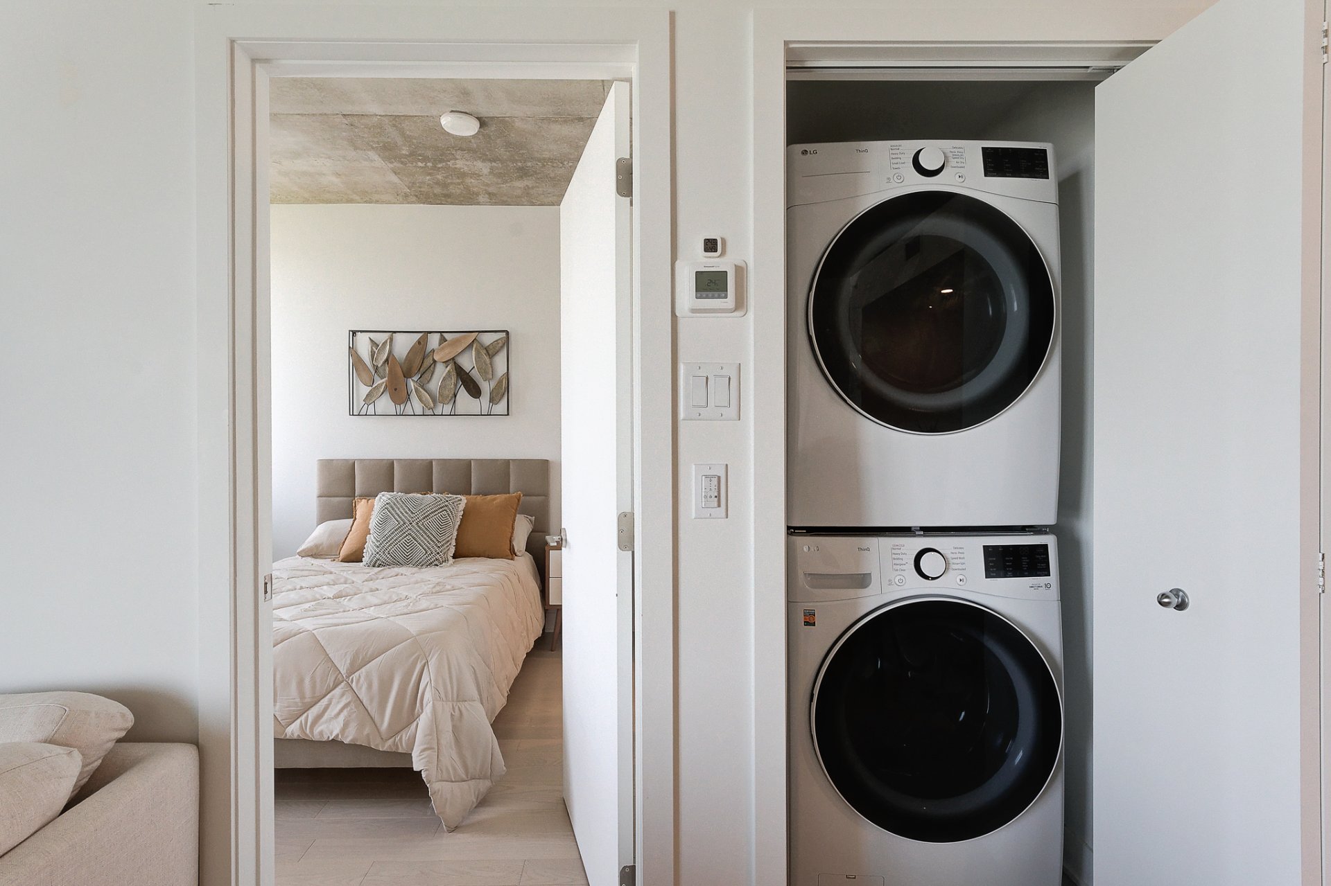 - Fully furnished: furniture, bedding, cookware, kitchen utensils/appliances, stovetop, oven, refrigerator, microwave, dishwasher, washer, dryer, 1 indoor parking space, 1 storage locker