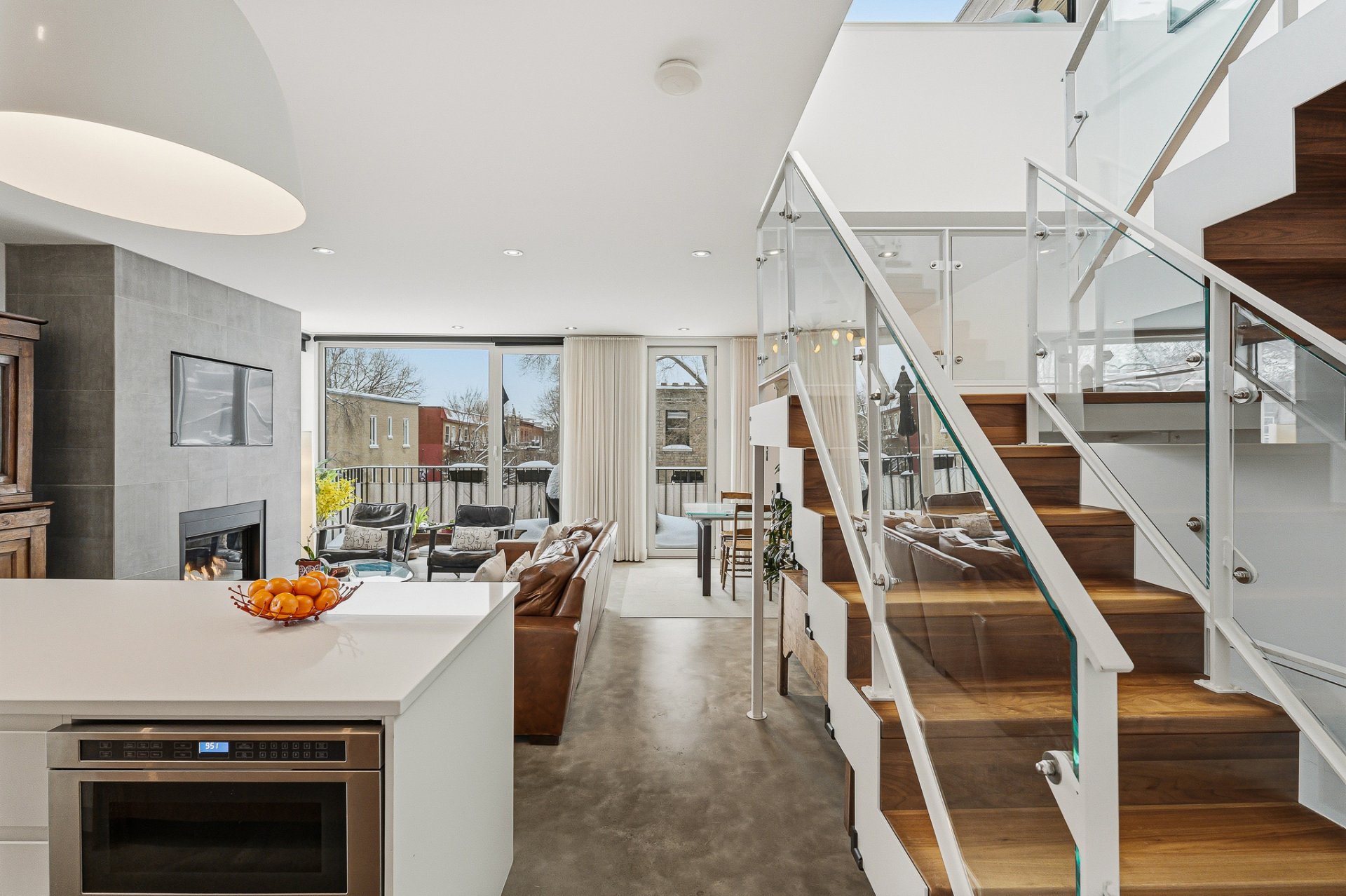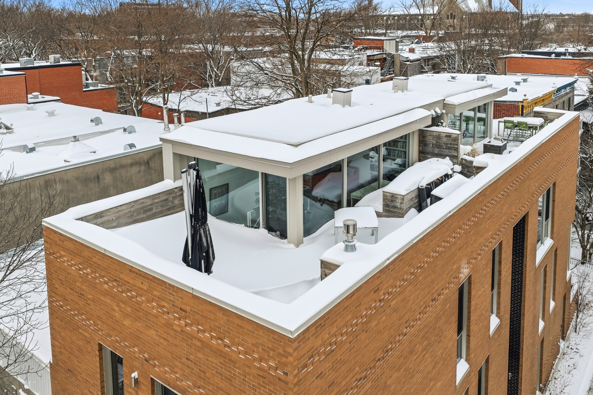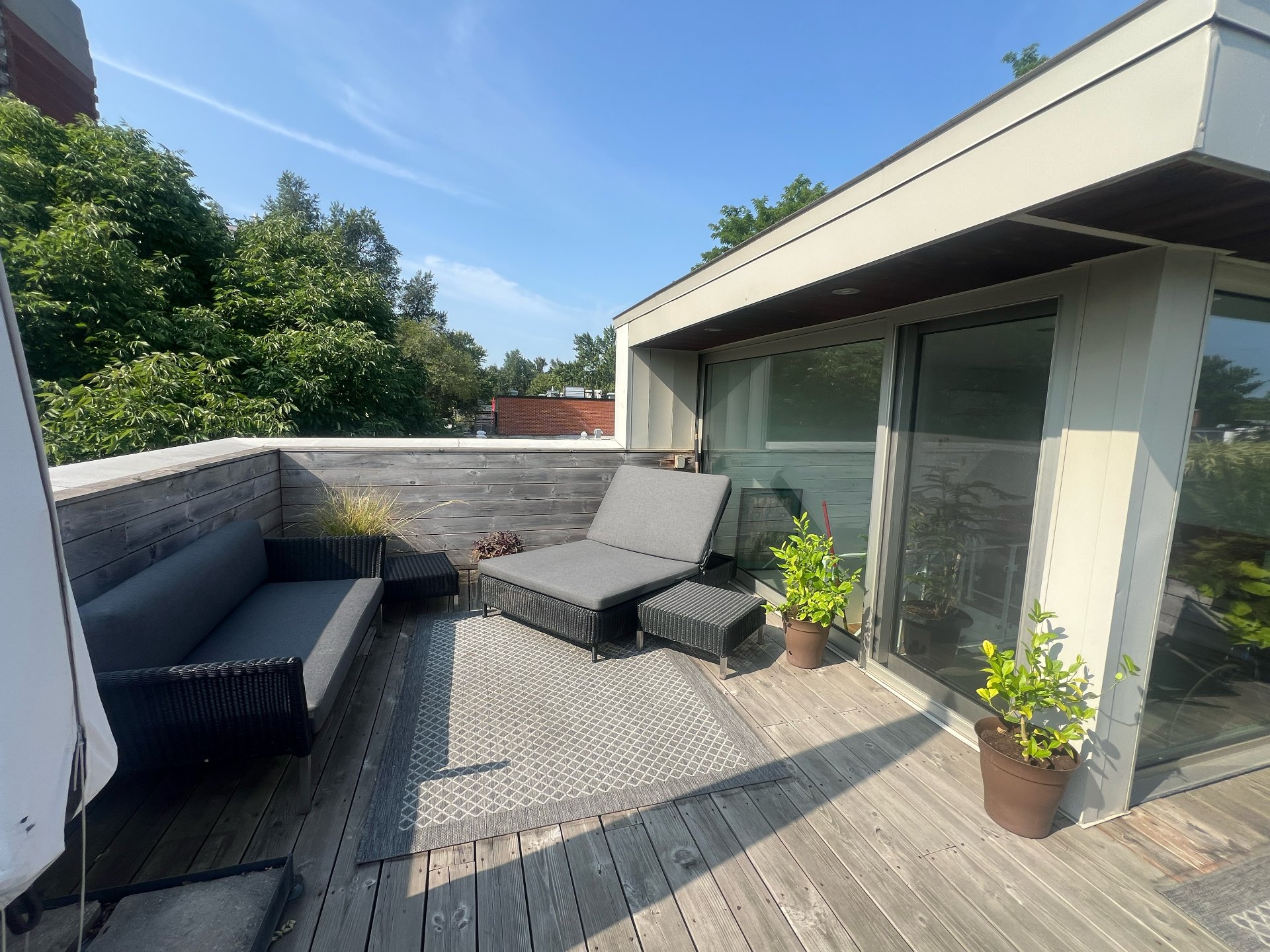 Splendid corner apartment on three levels, reminiscent of a townhouse, crowned with a spectacular private rooftop terrace of over 350 sq. ft., on a quiet street just steps from La Fontaine Park. LEED-certified eco-construction, guaranteeing exemplary energy efficiency with its radiant concrete floors and oversized windows. Sleek design, high ceilings, superb contemporary staircase, and gas fireplace. Four bedrooms, two bathrooms, and a windowed mezzanine with access to the terrace, its vegetable garden, and summer kitchen layout: a dream come true! Exceptional neighborhood living close to shops, schools, cafés, restaurants and numerous parks.