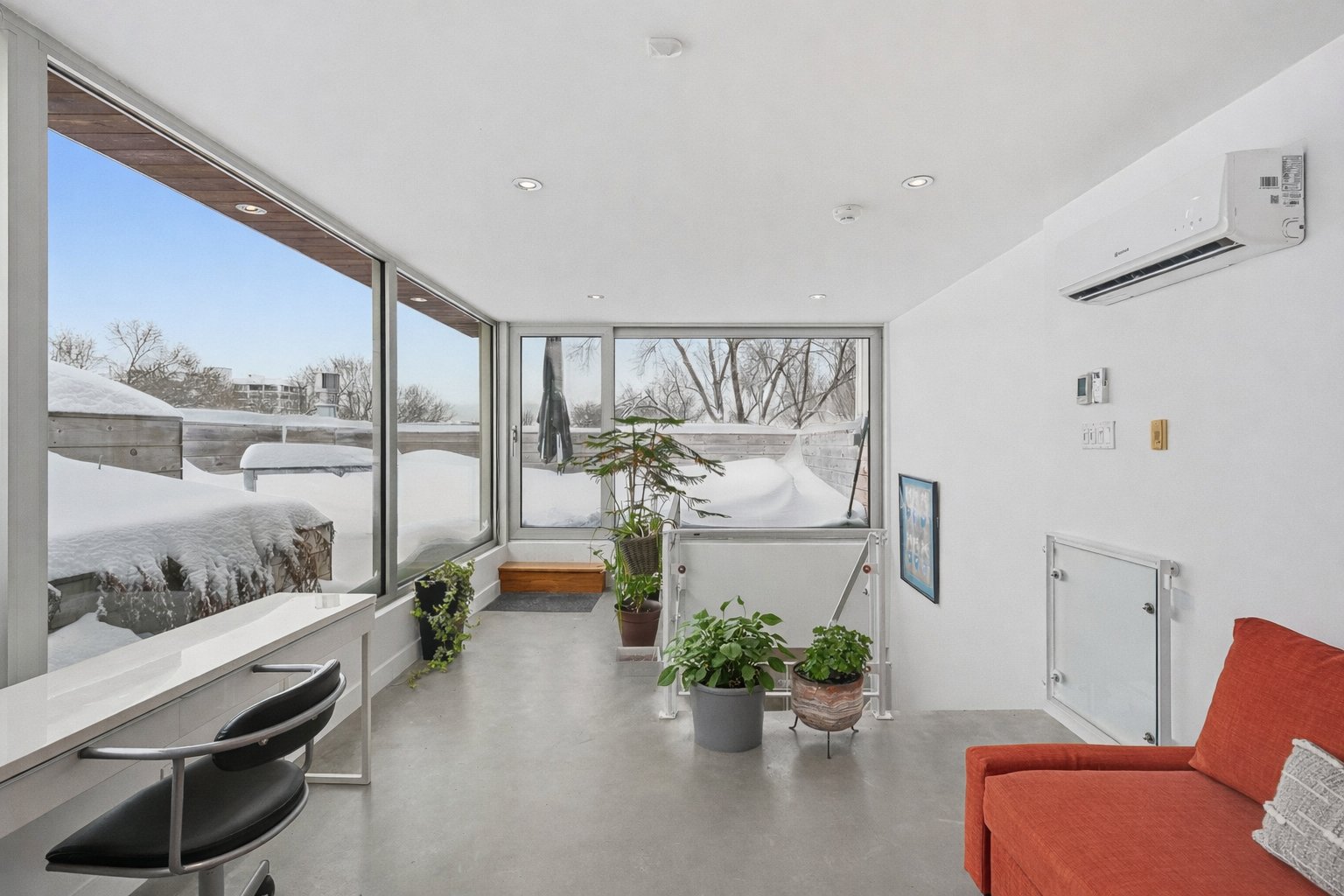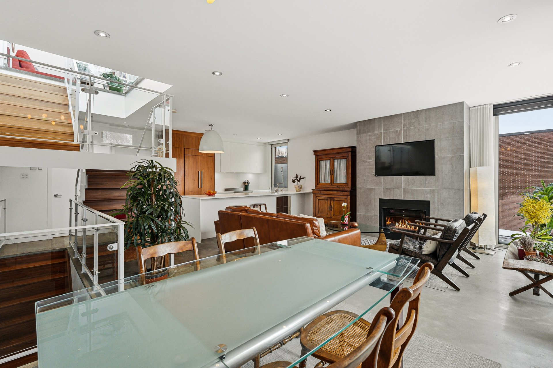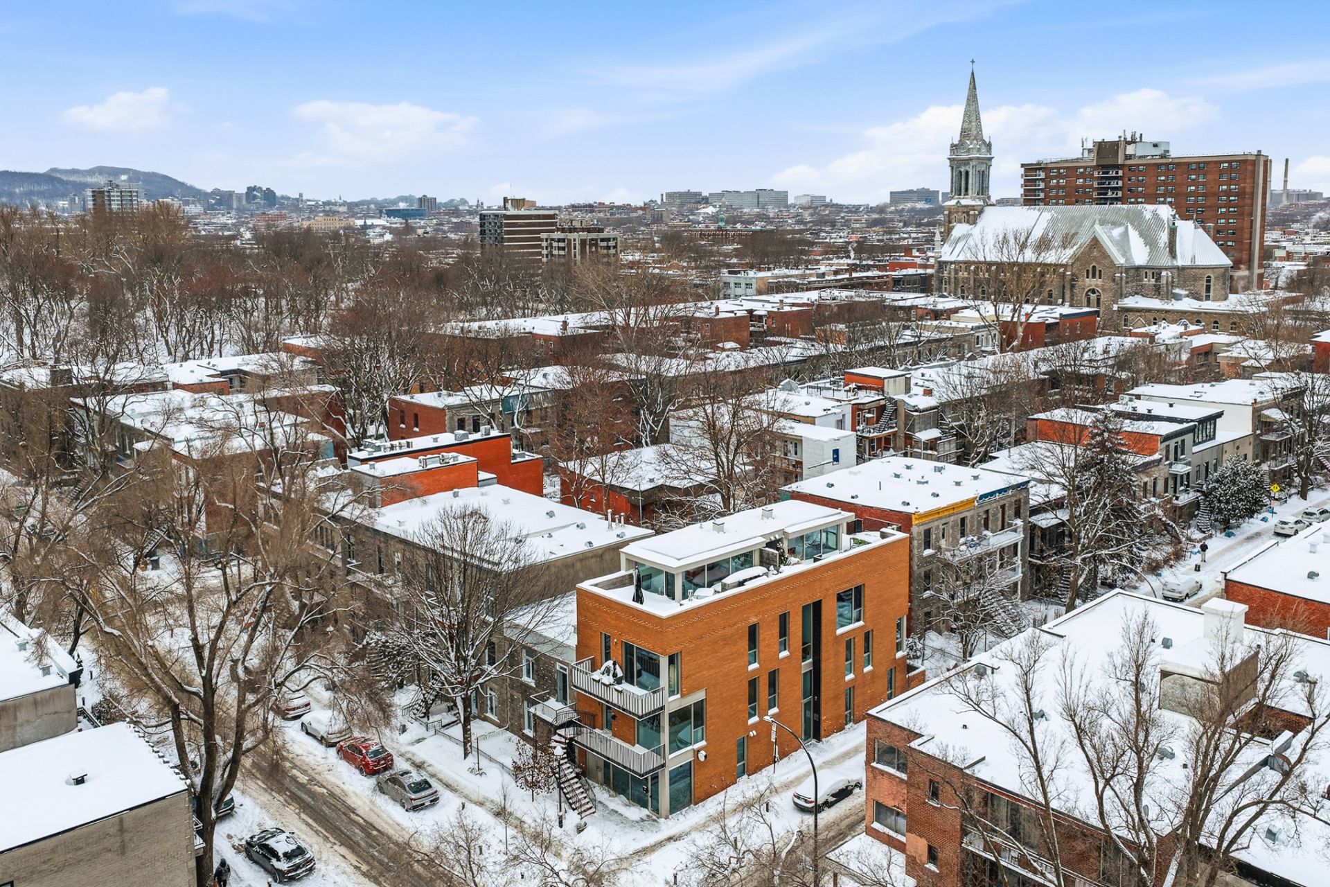 Splendid corner apartment on three levels, reminiscent of a townhouse, crowned with a spectacular private rooftop terrace of over 350 sq. ft., on a quiet street just steps from La Fontaine Park. LEED-certified eco-construction, guaranteeing exemplary energy efficiency with its radiant concrete floors and oversized windows. Sleek design, high ceilings, superb contemporary staircase, and gas fireplace. Four bedrooms, two bathrooms, and a windowed mezzanine with access to the terrace, its vegetable garden, and summer kitchen layout: a dream come true! Exceptional neighborhood living close to shops, schools, cafés, restaurants and numerous parks.